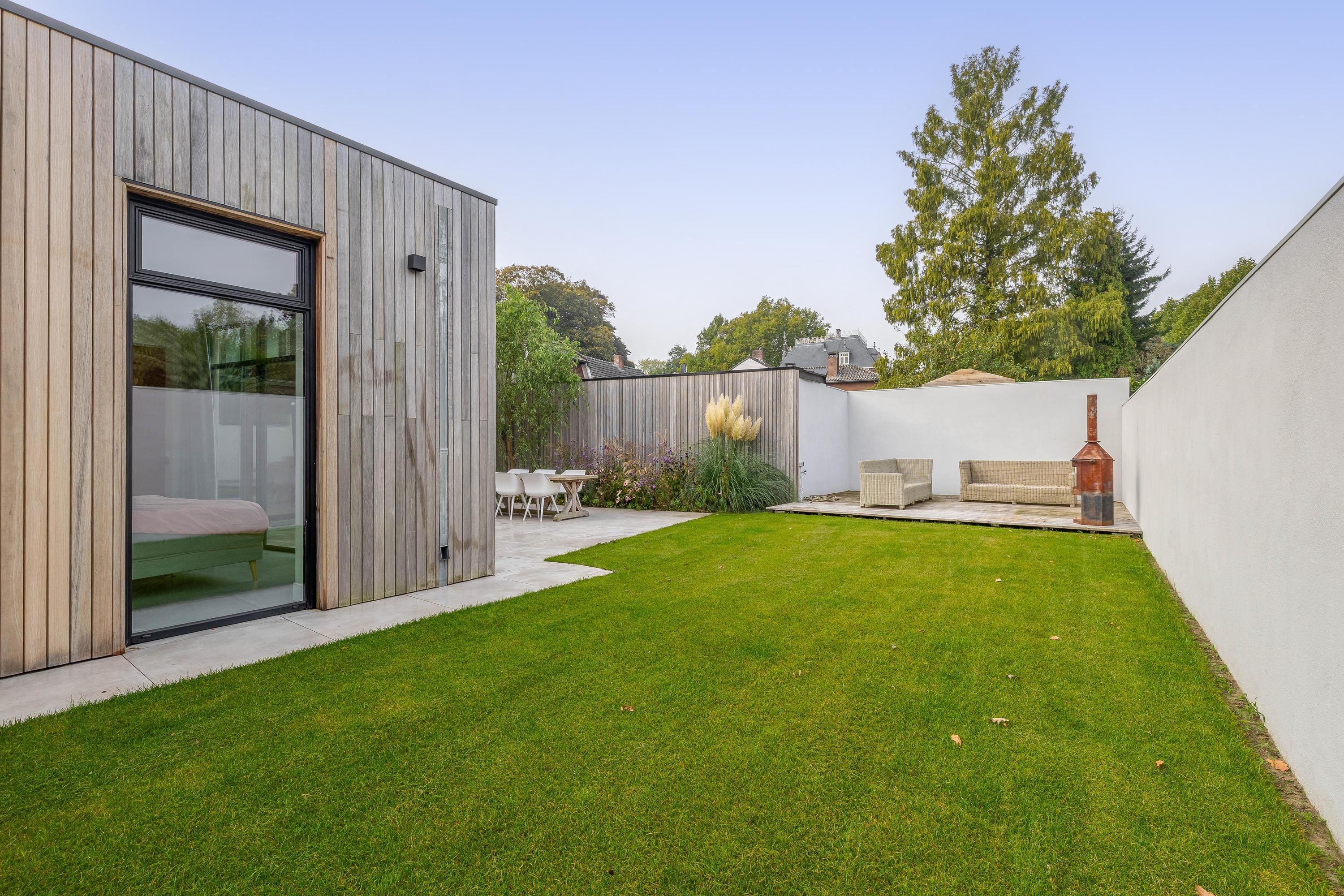Quatre chambres spacieuses, équipées de fenêtres toute hauteur donnant sur le jardin privé paysager, dont une suite avec accès direct à l’extérieur, offrent un confort exceptionnel. Une pièce supplémentaire, attenante au hall, s'adapte à vos besoins de loisirs, bureau ou salle de jeux, soulignant la polyvalence des espaces. La grande salle de bains procure un confort luxueux avec baignoire, double douche à l’italienne et double vasque. Le chauffage au sol s’étend à l’ensemble de la propriété, complété par des châssis aluminium équipés de vitrages HR+++, une isolation de haute performance et des panneaux solaires.