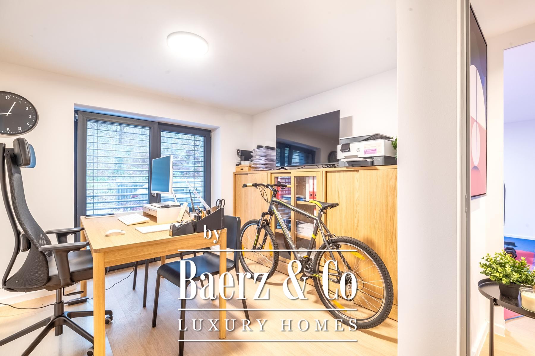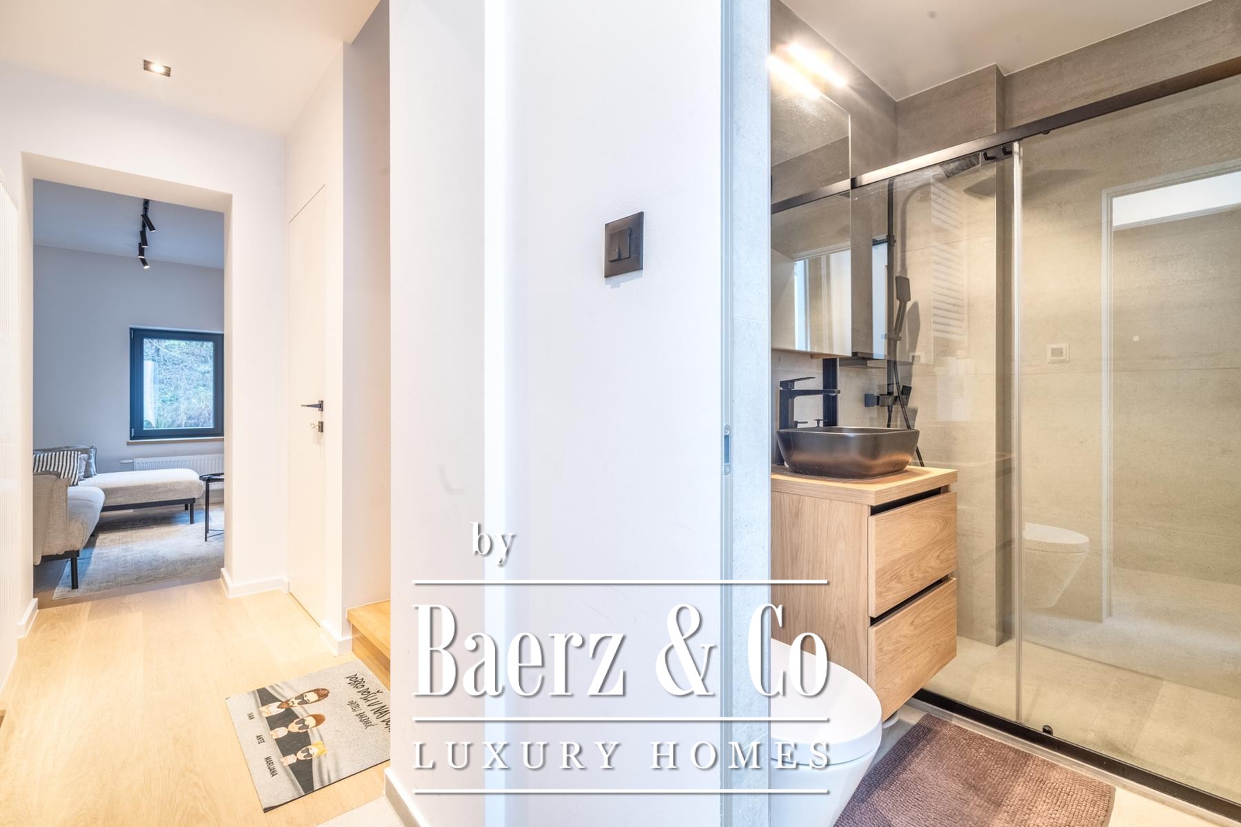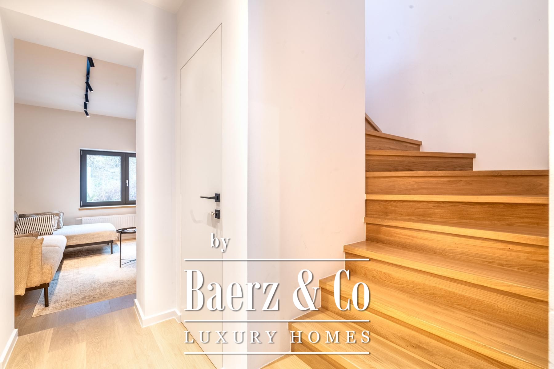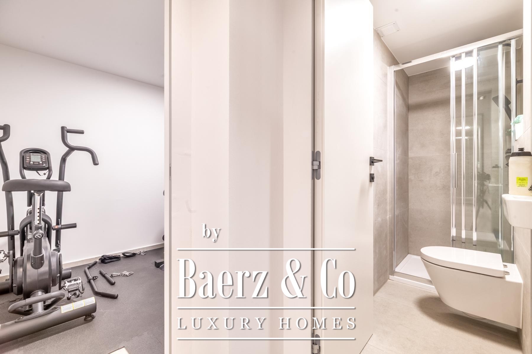 De begane grond straalt balans uit tussen professioneel en privé, met een kantoor, fitnessruimte, oefenruimte met tatami, badkamer en slimme opbergmogelijkheden. Op de eerste verdieping ontvouwt zich een open leefruimte met op maat gemaakte keuken, eetgedeelte en lounge. Een royaal terras met open haard, barbecue en buitenkeuken vormt het gastvrije middelpunt voor ingetogen samenzijn. De zolderverdieping herbergt drie rustige slaapkamers, een badkamer, hal en terras — een intiem toevluchtsoord te midden van het urbane tempo.