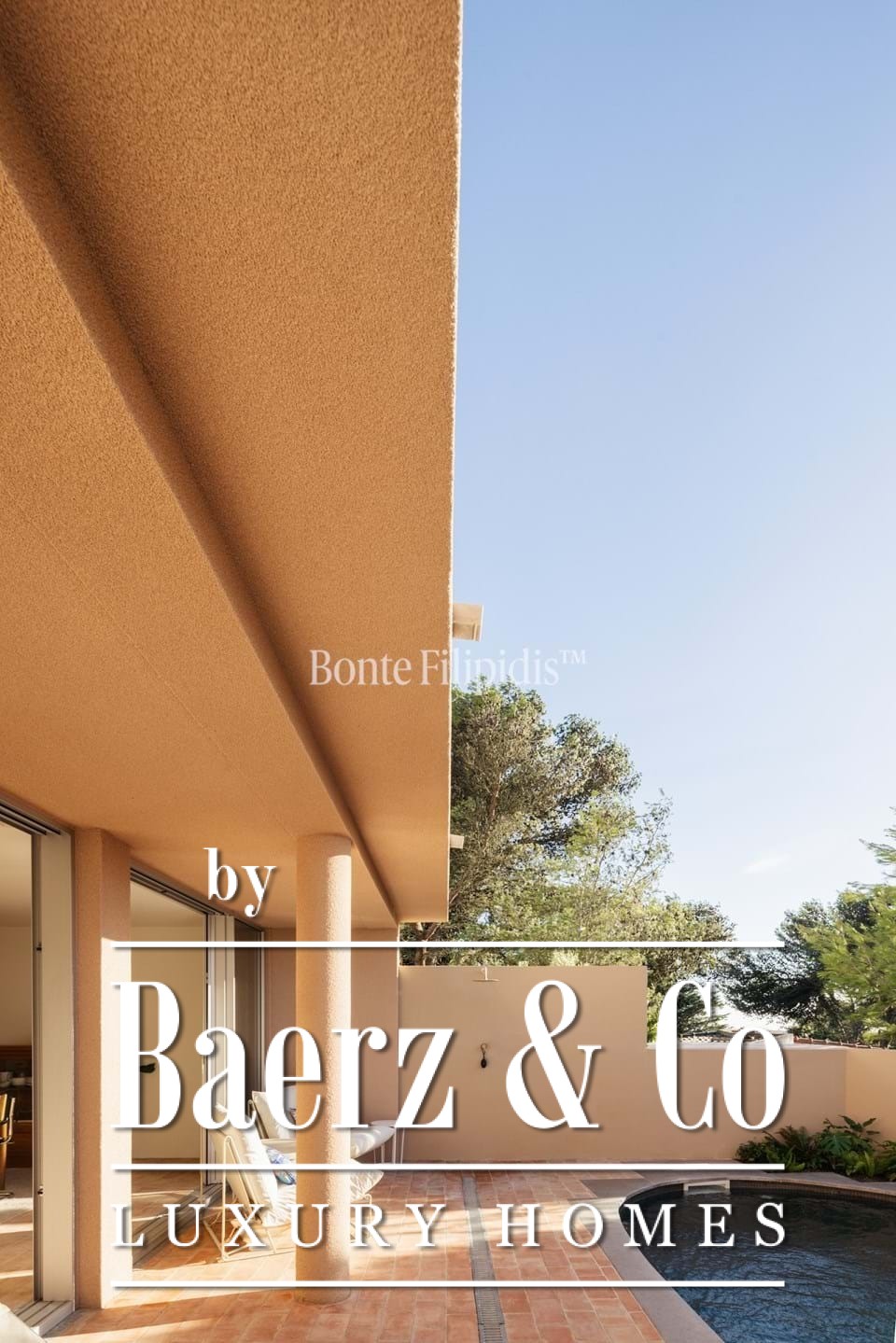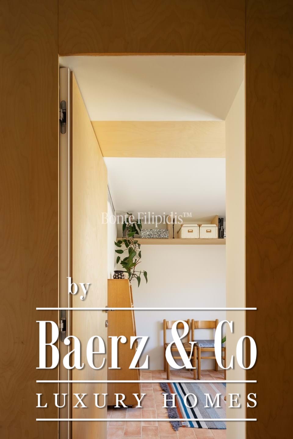De woning beschikt over drie slaapkamers en drie badkamers, aangevuld met een veelzijdig kantoor met eigen badkamer, dat eenvoudig dienst kan doen als vierde slaapkamer. De omgebouwde garage biedt nog meer flexibiliteit, ideaal als werkplaats, atelier of gastenverblijf. Elke slaapkamer beschikt over een eigen balkon; diverse balkons bieden vergezichten op zee en bergen, wat openheid combineert met privacy.