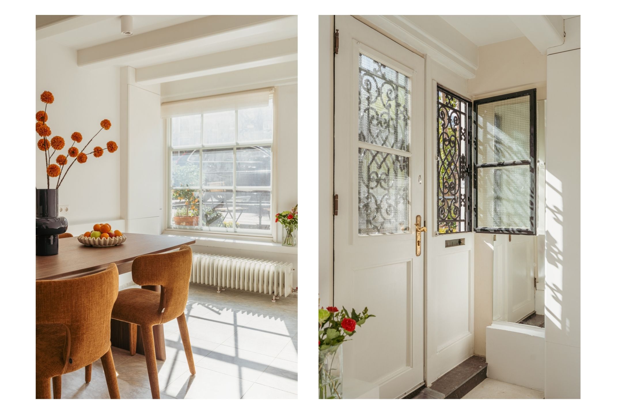 Via de eigen voordeur betreed je de gezellige woonkeuken op de begane grond. Deze verdieping is praktisch én sfeervol ingedeeld, met aan de voorzijde een royale zithoek en aan de achterzijde de keuken. De keuken is voorzien van diverse inbouwapparatuur en biedt opvallend veel kastruimte aan beide zijden. Achterin bevindt zich een gastentoilet. Voor het huis is een charmant zitje gecreëerd, waar je de hele dag kunt genieten van de zon en het levendige uitzicht op de gracht.