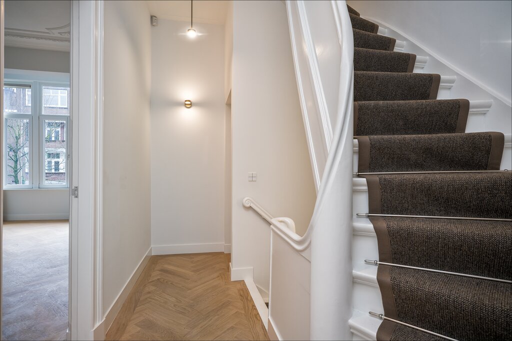 Prachtig herenhuis van ca. 385m². high-end gerenoveerd met behoud van originele details, verdeeld over 5 woonlagen, 6 openhaarden, heeft zowel een tuin als royaal dakterras met buitenkeuken. Een wellness met sauna, stoomdouche, fitnessruimte en een lift waarmee u tot en met het dakterras gebruik van kunt maken. Ook is de woning volledig voorzien van vloerverwarming en Climate Controll. Ongekende luxe in het hartje van Amsterdam Zuid.