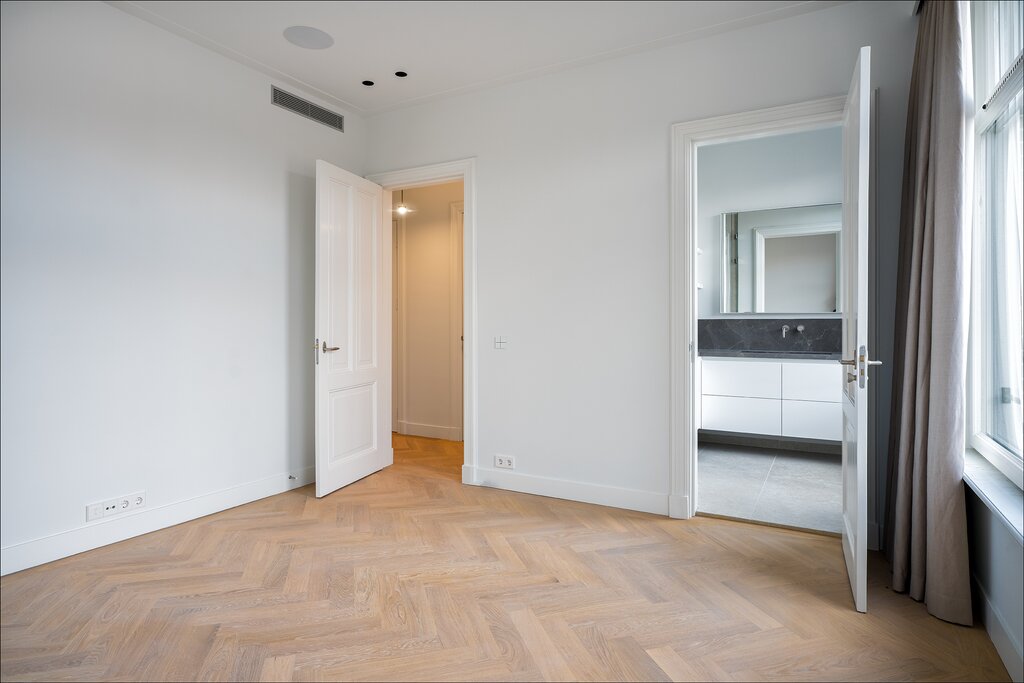 Deze ruime en lichte verdieping heeft ook hier een origineel royaal gedecoreerd plafond. Deze verdieping beschikt over 2 slaapkamers met beide een eigen badkamer