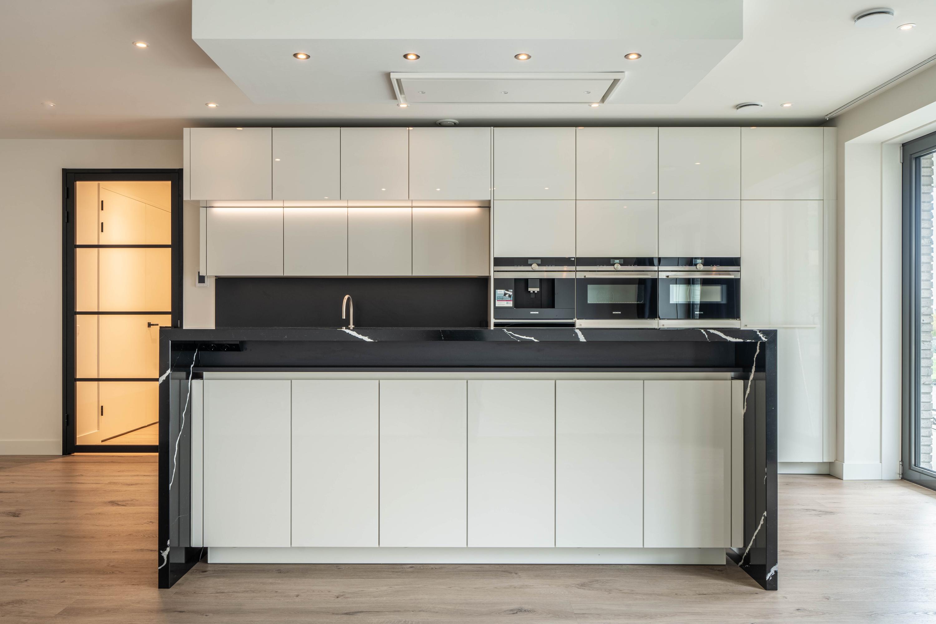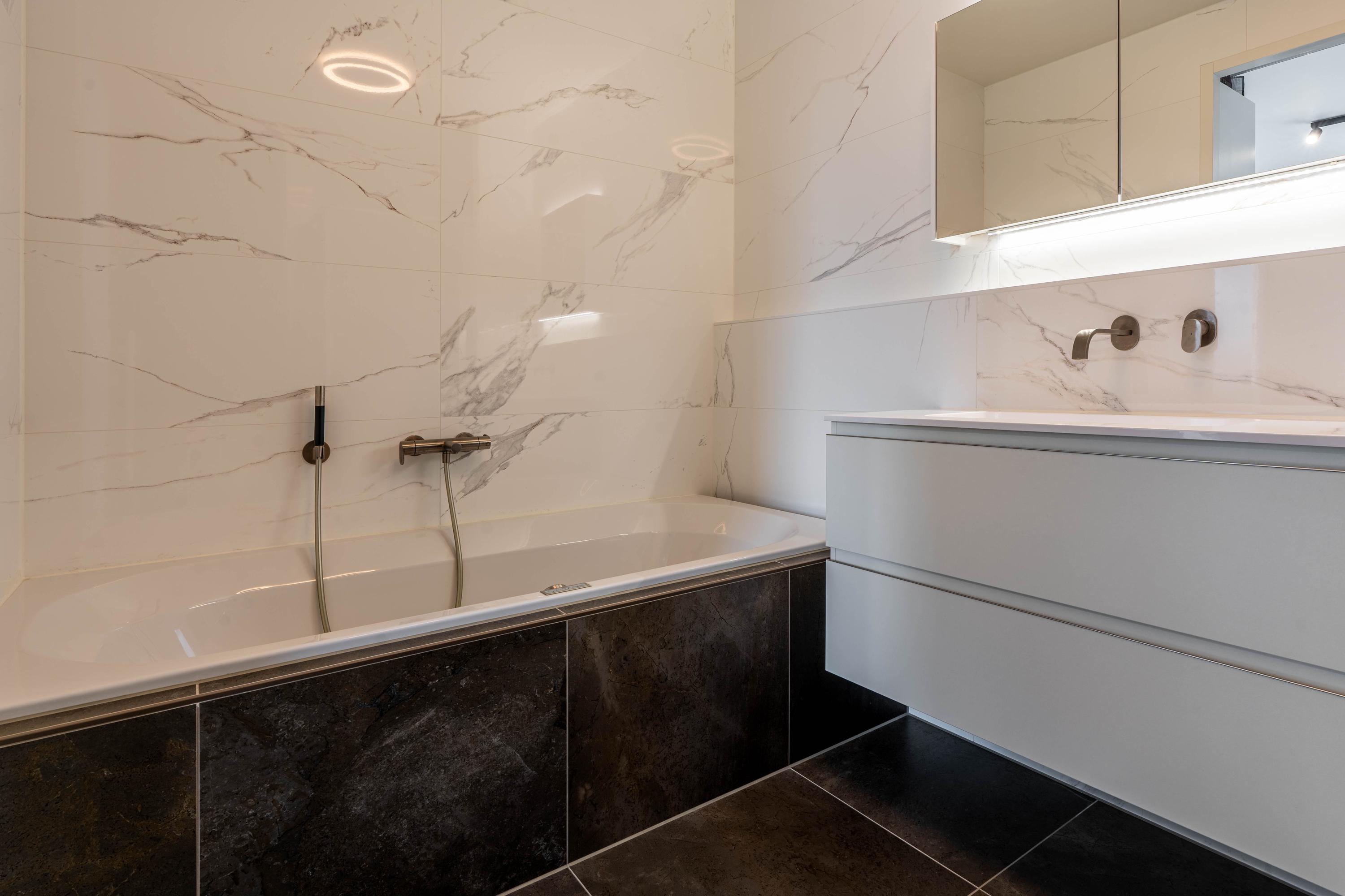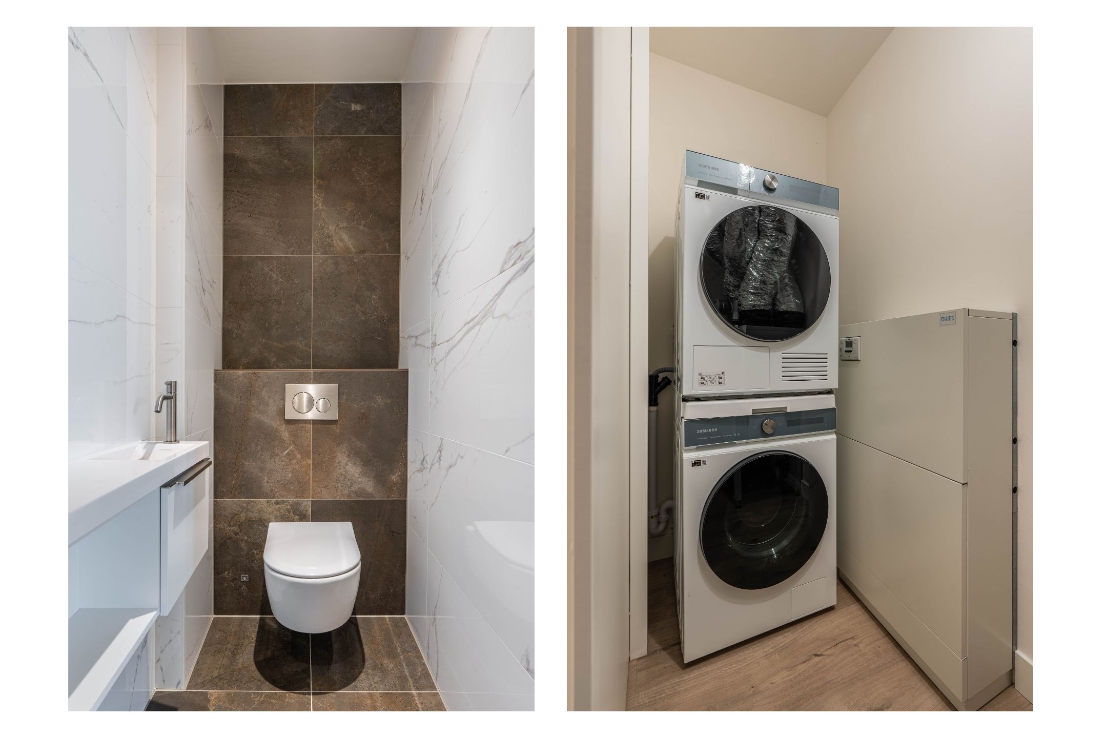 Eigen entree met royale hal, toilet, technische ruimte met ruimte voor garderobe en gastentoilet met fontein bereikbaar. De ruime woonkamer is vanuit de hal bereikbaar en beschikt over een luxe keuken voorzien van kookeiland met bargedeelte. De keuken is voorzien van een inductieplaat met downdraft afzuigsysteem, combi-oven, stoom-oven, koffiemachine, vaatwasser, koelvriescombinatie en een Quooker. De woonkamer heeft toegang tot het ruime balkon. Vanaf de hal zijn alle drie de slaapkamers bereikbaar. Een daarvan heeft ook toegang tot het balkon. De grote slaapkamer heeft tevens toegang tot een eigen badkamer voorzien van ligbad, inloopdouche, wastafel en toilet. Vanaf de hal is een tweede badkamer voorzien van inloopdouche en wastafel. Het gehele appartement is voorzien van WTW-installatie, WKO-systeem vloerverwarming en vloerkoeling.