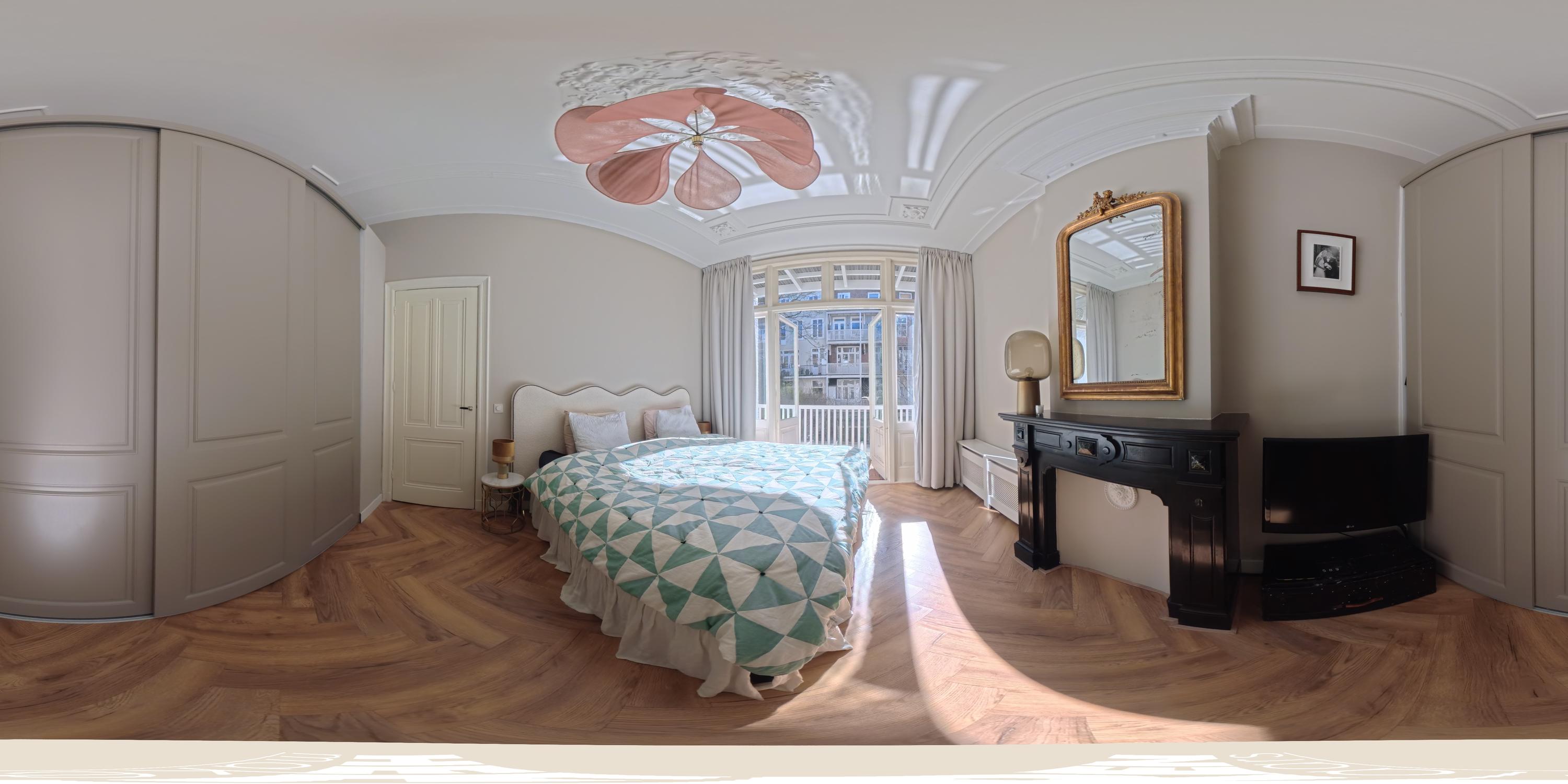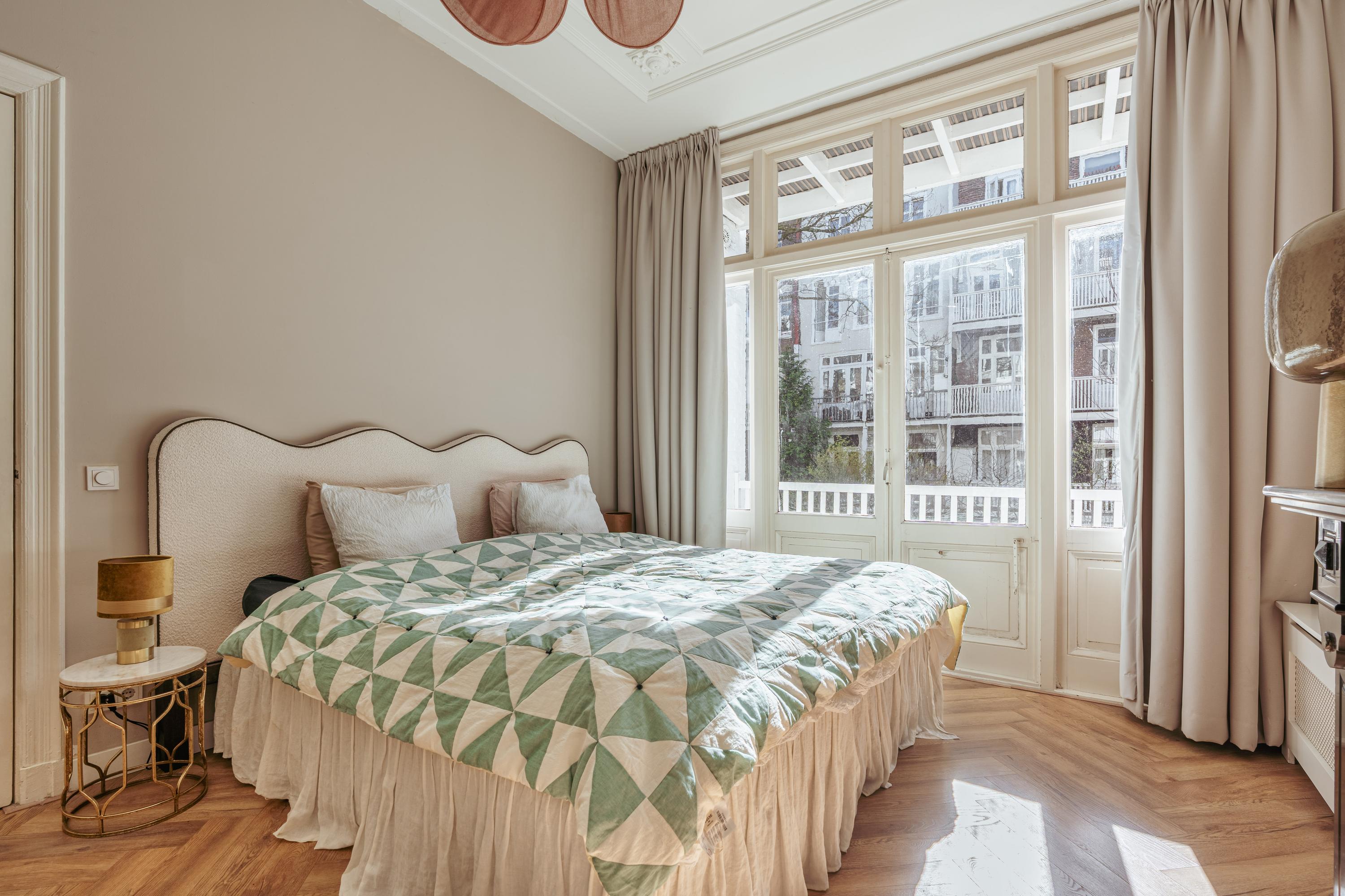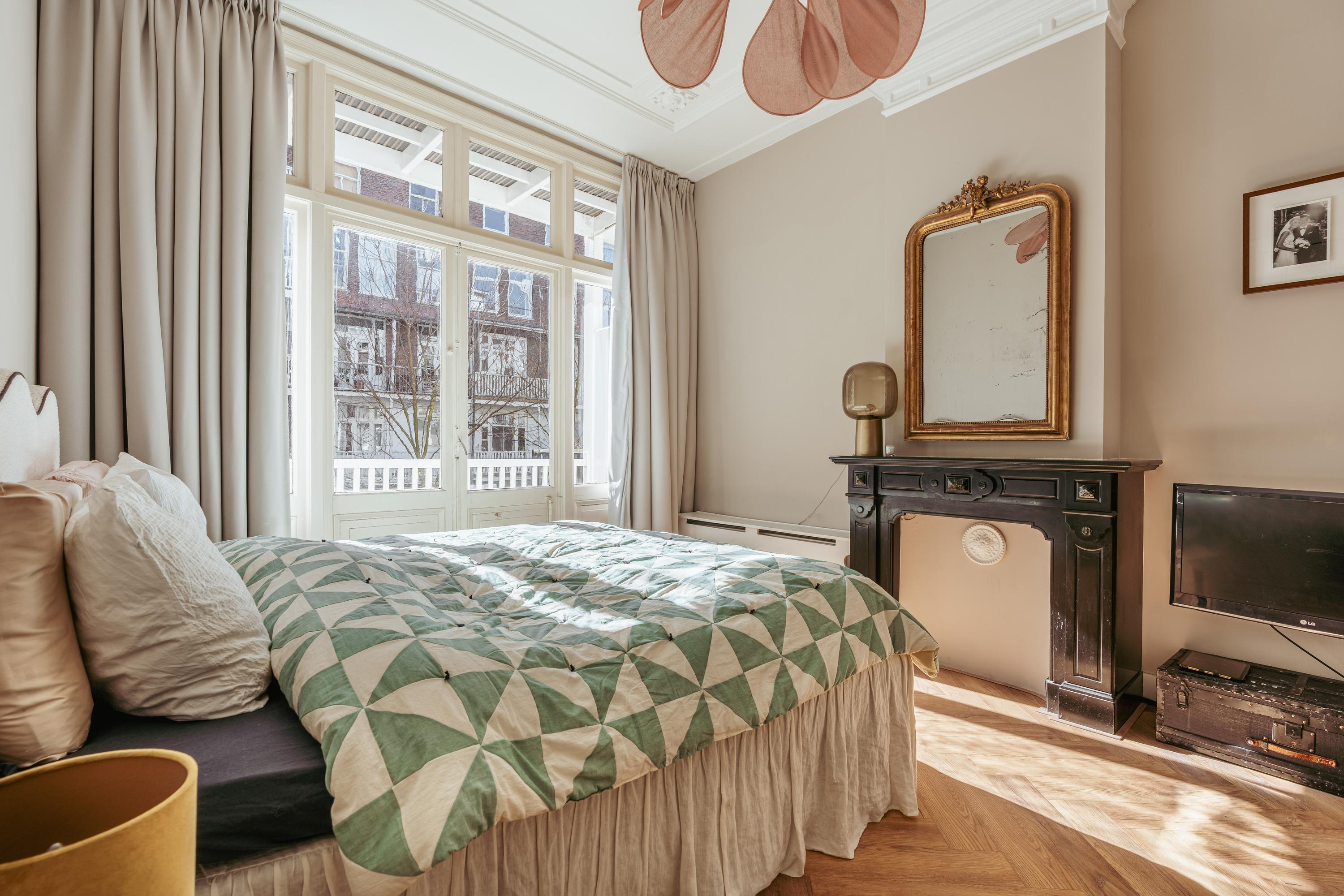 Aan de voorzijde liggen twee slaapkamers. De eerste is royaal en beschikt over een Frans balkon. De tweede kamer is uitstekend geschikt als kinder-, werk- of studeerkamer. Aan de achterzijde bevinden zich nog twee slaapkamers, waaronder een ruime derde slaapkamer met openslaande deuren naar een balkon. Deze kamer heeft een prachtige lichtinval, een authentieke schouw en praktische inbouwkasten. De vierde kamer is eveneens ideaal als kinder-, werk- of logeerkamer.