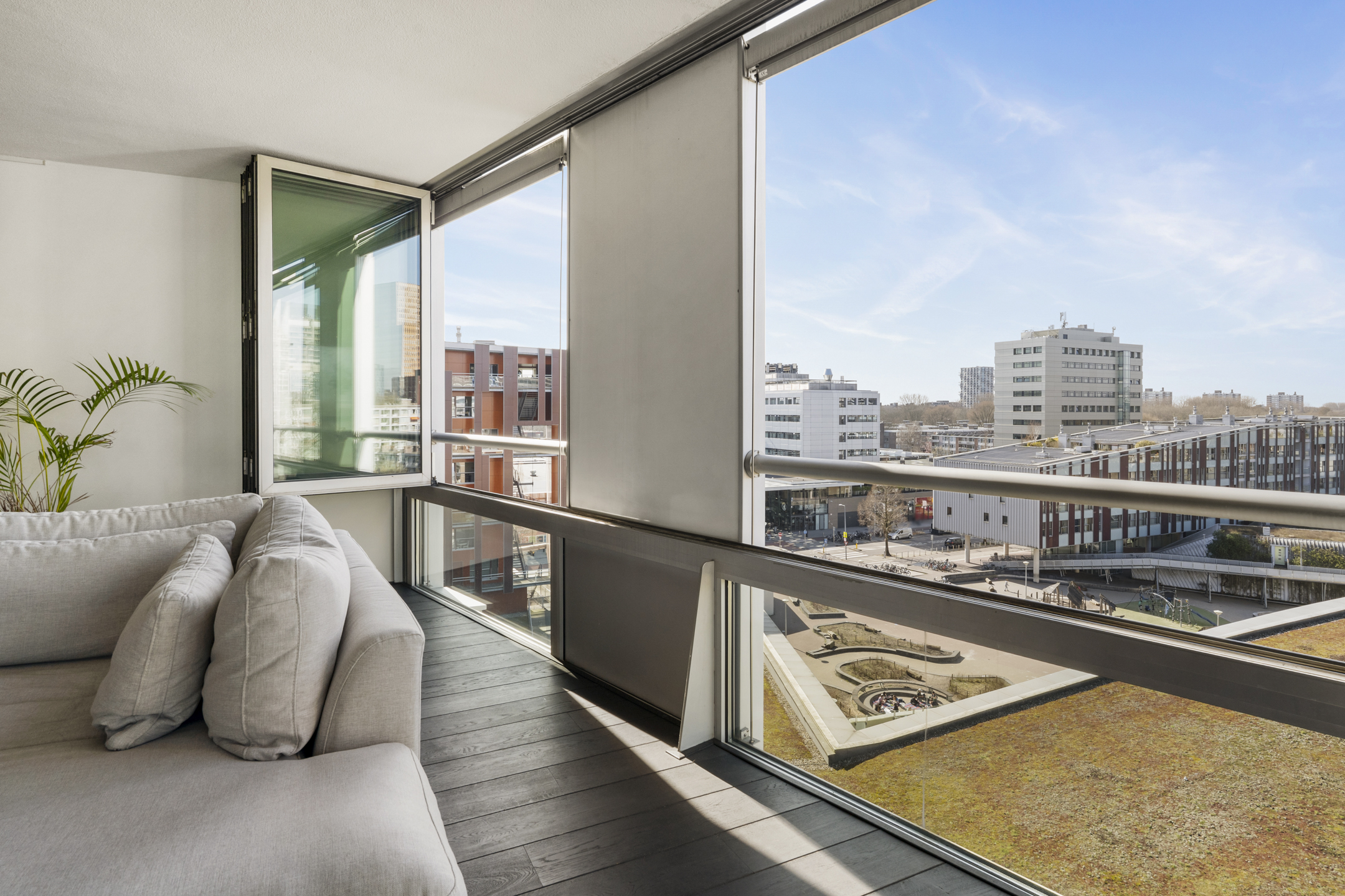 Door de ligging en de vele ramen aan zowel de zuidwest als aan de noordkant in combinatie met een ligging op de zevende (!) verdieping heeft het appartement een spectaculair uitzicht over het water en de skyline van de Amsterdamse Zuidas.