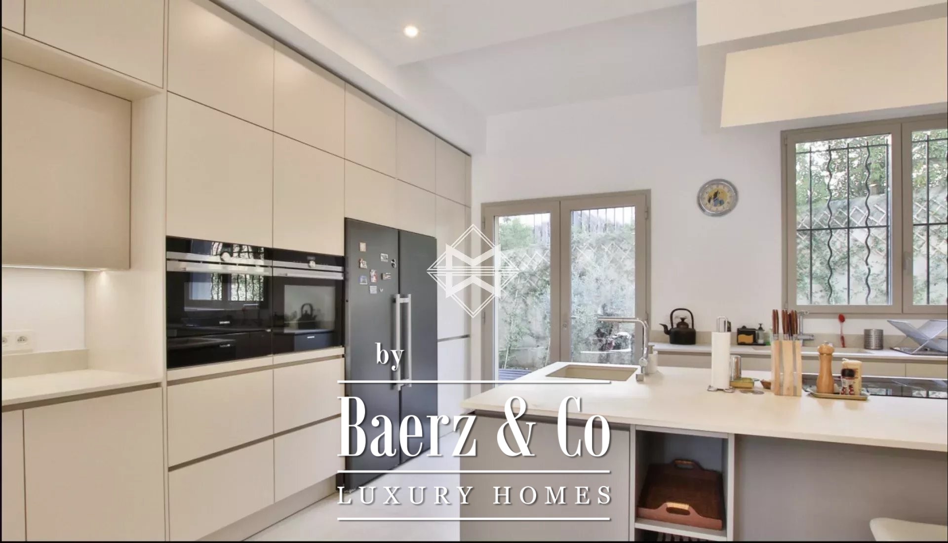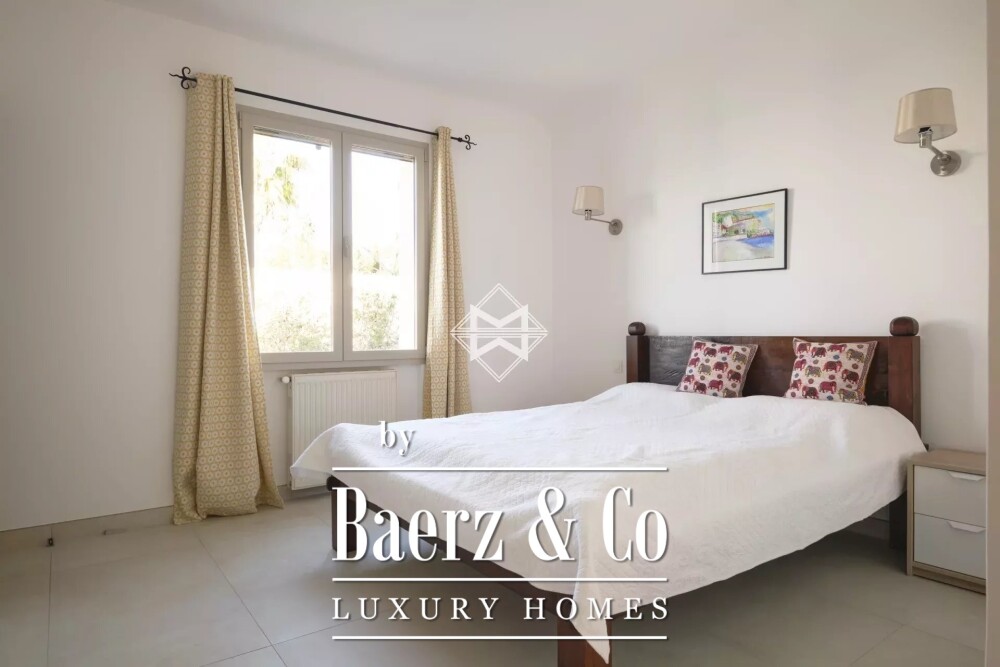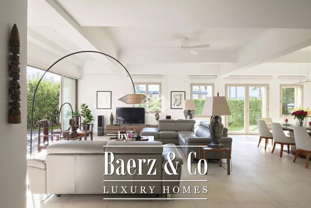 Tot de voorzieningen behoren airconditioning, dubbele beglazing, elektrische zonwering en rolluiken, glasvezel, beveiligingssysteem en parkeergelegenheid met garage. Gelegen op 1.100 m² vlakke grond verenigt dit eigendom architectonische helderheid met ontspanning en creëert zo een sfeer van ingetogen comfort.