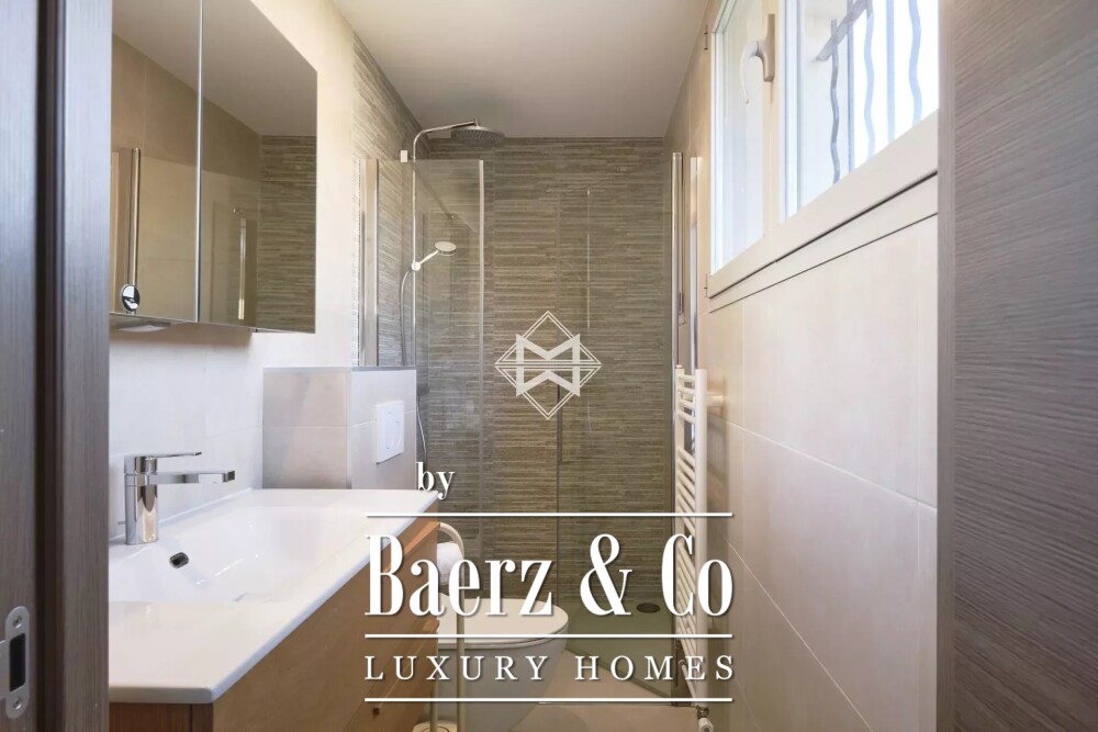 Op de eerste verdieping bevinden zich twee slaapkamers met eigen badkamer voor optimale privacy, naast twee extra slaapkamers die een badkamer delen. Nog een keuken en een gezamenlijke woon- en eetruimte openen zich naar een ruim terras met wijds zeezicht, wat het dagelijks leven en samenzijn verrijkt. De bovenste verdieping biedt een master suite met ononderbroken zeezicht, een verfijnde badkamer met aparte douche, een royale dressing en een privé bioscoopruimte.