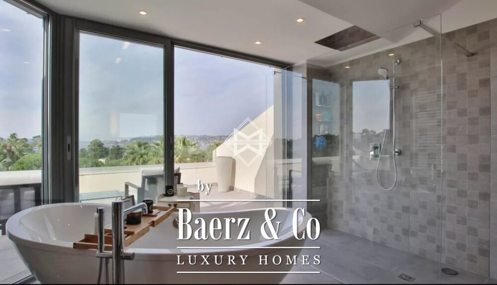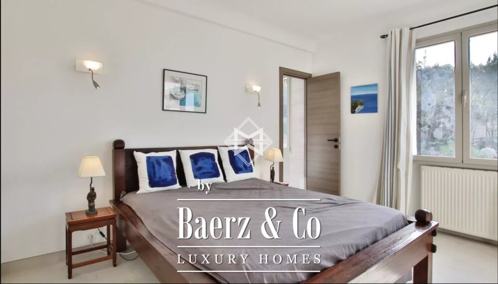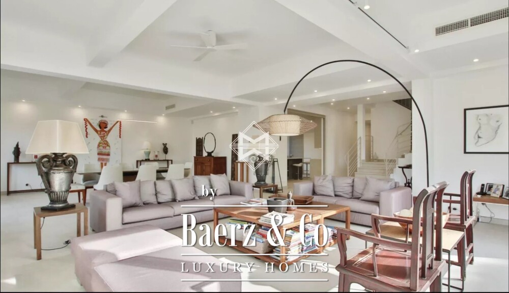 Villa Antibes biedt een zeldzame combinatie van gerenoveerde luxe en panoramisch zeezicht. Deze villa in Antibes beslaat 400 m² verdeeld over meerdere niveaus, discreet gelegen binnen een privé domein op korte loopafstand van de stranden. De entree vloeit over in ruime woon- en eetkamers die naadloos overgaan in de tuin, een schaduwrijk terras en een zwembad. Op de begane grond bevindt zich een royale, volledig uitgeruste keuken en een speciaal petanqueterrein, waardoor een subtiele balans ontstaat tussen binnen- en buitenleven. Een slaapkamer met en-suite badkamer completeert dit niveau.