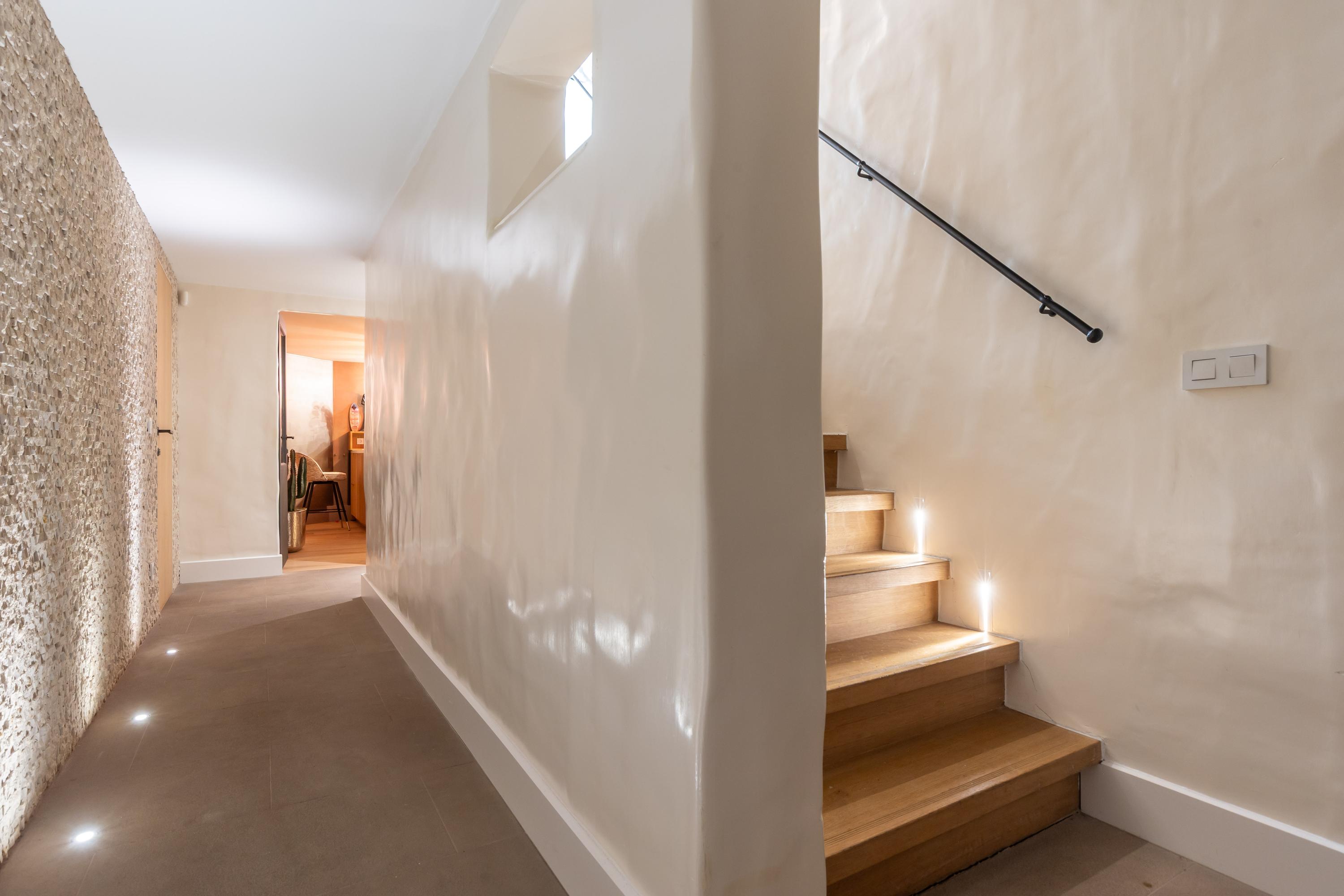 Alle wanden zijn uitgevoerd met exclusief puddingstuc in moderne Ibiza-stijl. Puddingstuc is een hoogwaardige en ambachtelijke afwerkingstechniek voor wanden en plafonds. Het staat bekend om zijn zachte, bijna fluweelachtige uitstraling en subtiele glans. De naam komt voort uit de romige, gladde textuur die doet denken aan pudding.Dit stucwerk wordt met de hand in meerdere lagen aangebracht en zorgvuldig gepolijst, waardoor een naadloos en luxe oppervlak ontstaat. Het oogt warmer dan strak pleisterwerk en rijker dan standaard stucwerk. Puddingstuc wordt vaak toegepast in exclusieve villa’s en boutique hotels vanwege de authentieke, Mediterrane sfeer en de combinatie van strak design met een natuurlijke, elegante uitstraling.