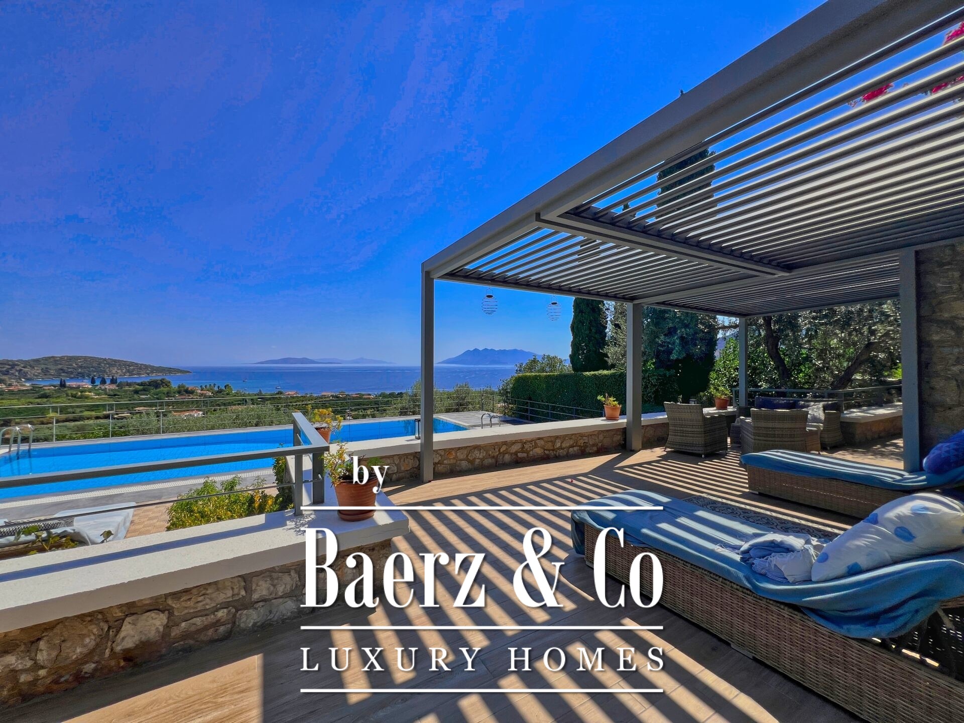 Vrijstaande woning Archaia Epidavros biedt een verfijnde balans tussen tijdloze materialen en hedendaags design, gelegen in een privé tuin van 1.500 m² met uitzicht op zee. Deze residentie van 198 m² is vanaf 2018 volledig gerenoveerd, met oog voor materiaalkeuze, bioklimatische pergola’s en slimme woonoplossingen die geschikt zijn voor zowel permanent als recreatief gebruik.