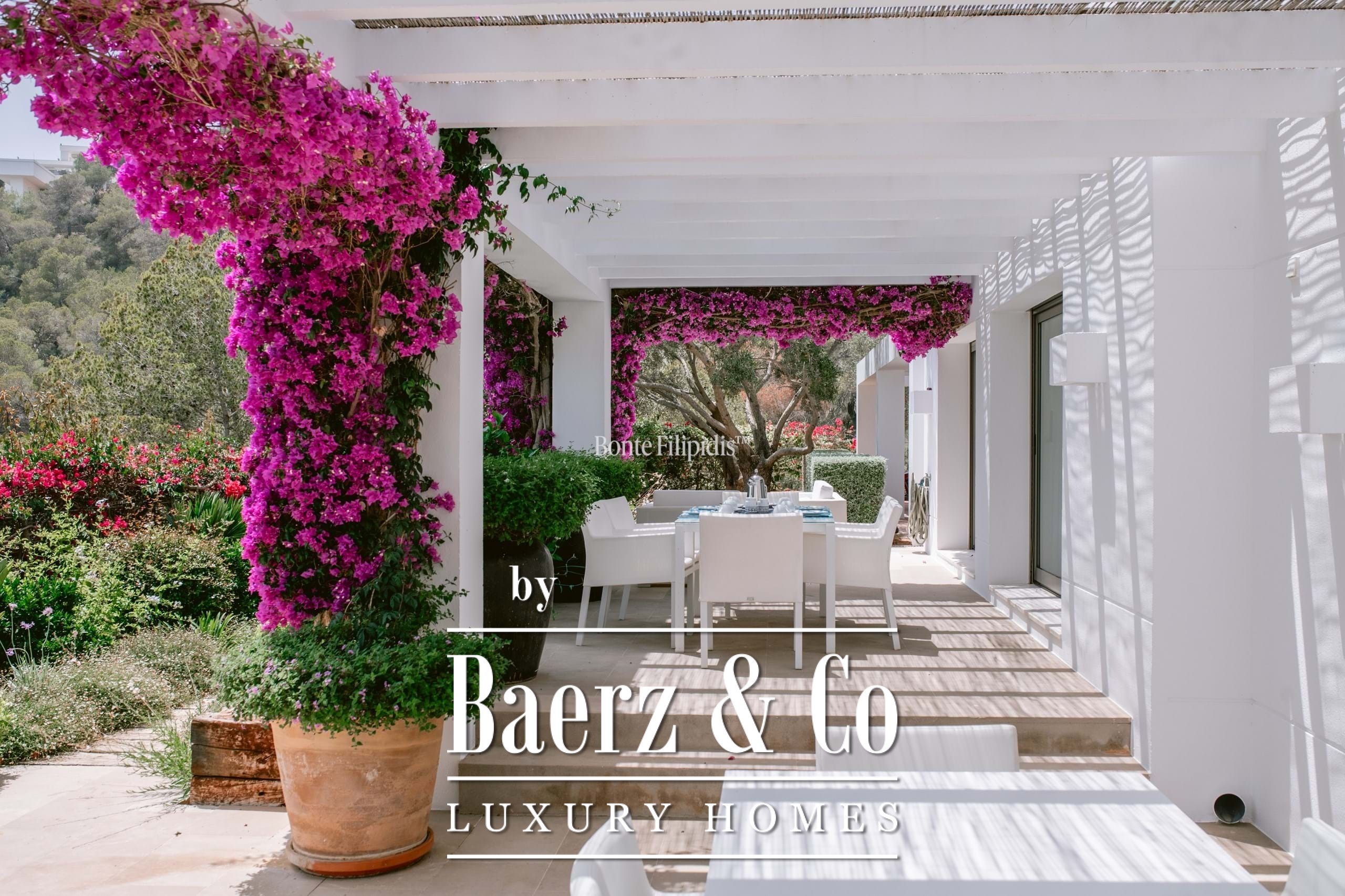 Set within one of Ibizas most peaceful and prestigious enclaves, this expansive Mediterranean villa offers a rare combination of privacy, panoramic sea views, and timeless island charm. Positioned on a private plot of over 15,600 sqm, the property is surrounded by mature gardens and wide terraces, blending traditional architecture with modern comfort.