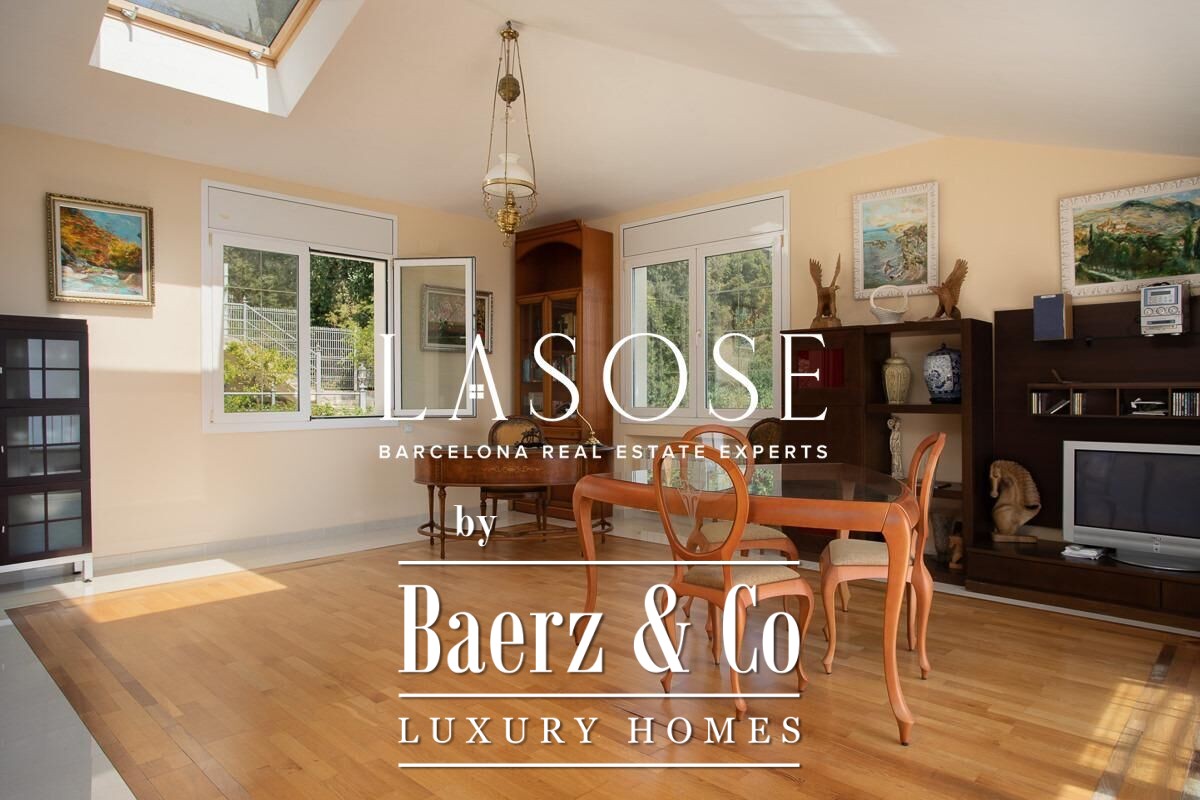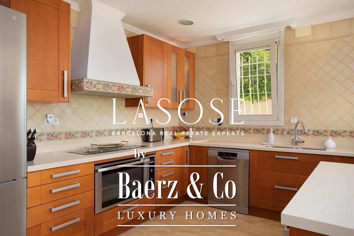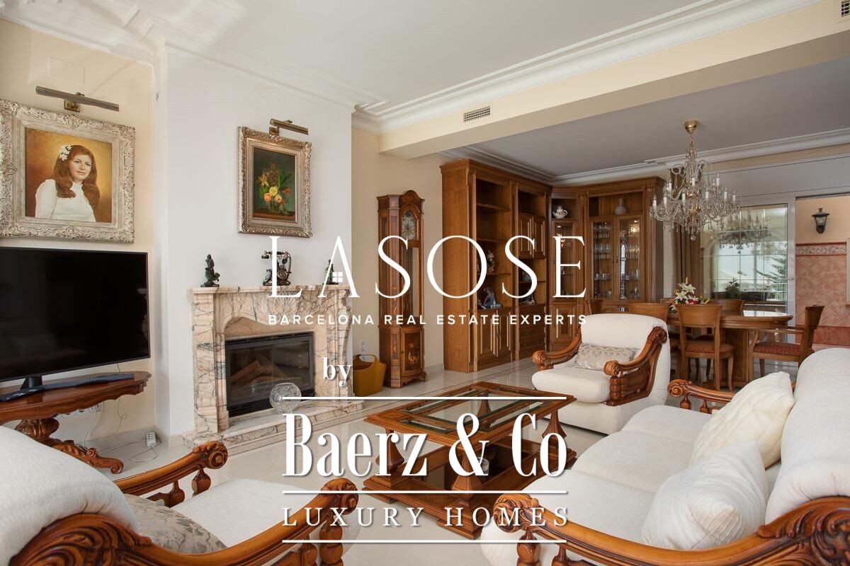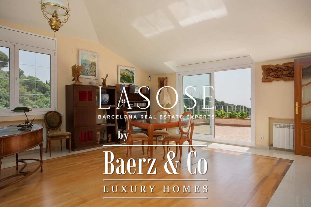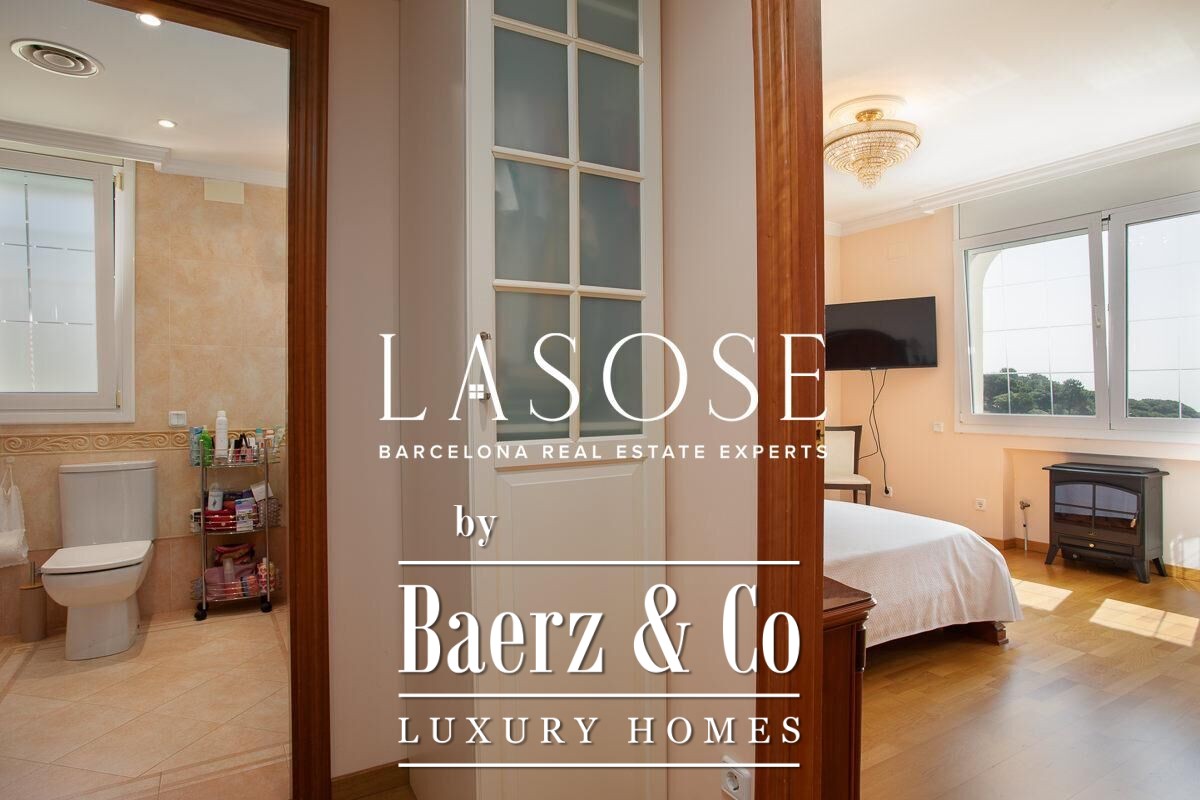 Verspreid over vier met lift verbonden verdiepingen is de architectuur van de villa doordacht, licht en ontworpen voor een moeiteloze overgang tussen binnen en buiten. De leefruimtes zijn voorzien van elegante marmeren vloeren en een haard, en openen naar riante terrassen en een vlakke tuin, omlijst door uitzonderlijke vergezichten tot aan de skyline van Barcelona op heldere dagen. Vijf slaapkamers en vijf badkamers bieden privacy, terwijl twee volledig ingerichte keukens flexibiliteit toevoegen. De privébibliotheek, royale bijkeuken en specifieke opbergruimtes verhogen het gebruiksgemak zonder concessie te doen aan stijl.