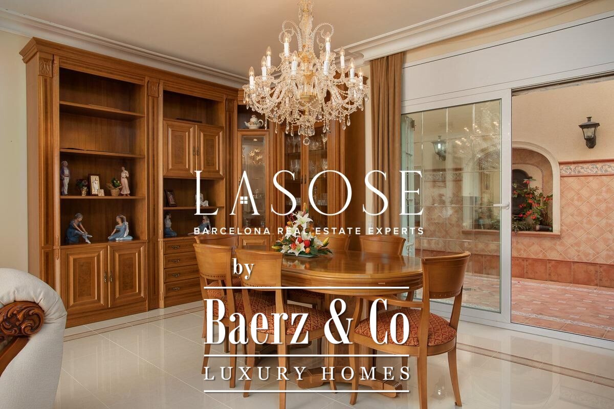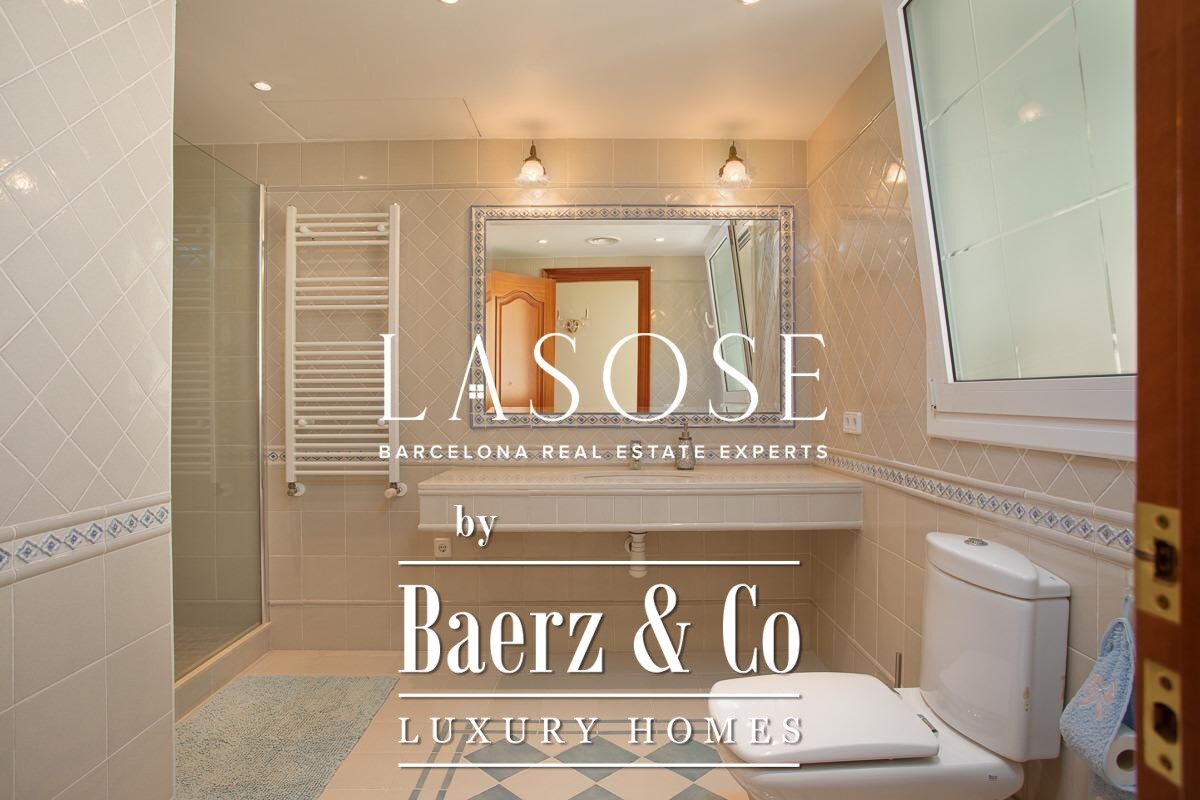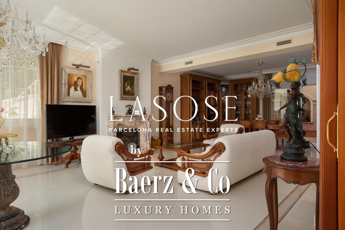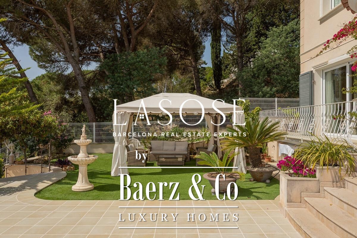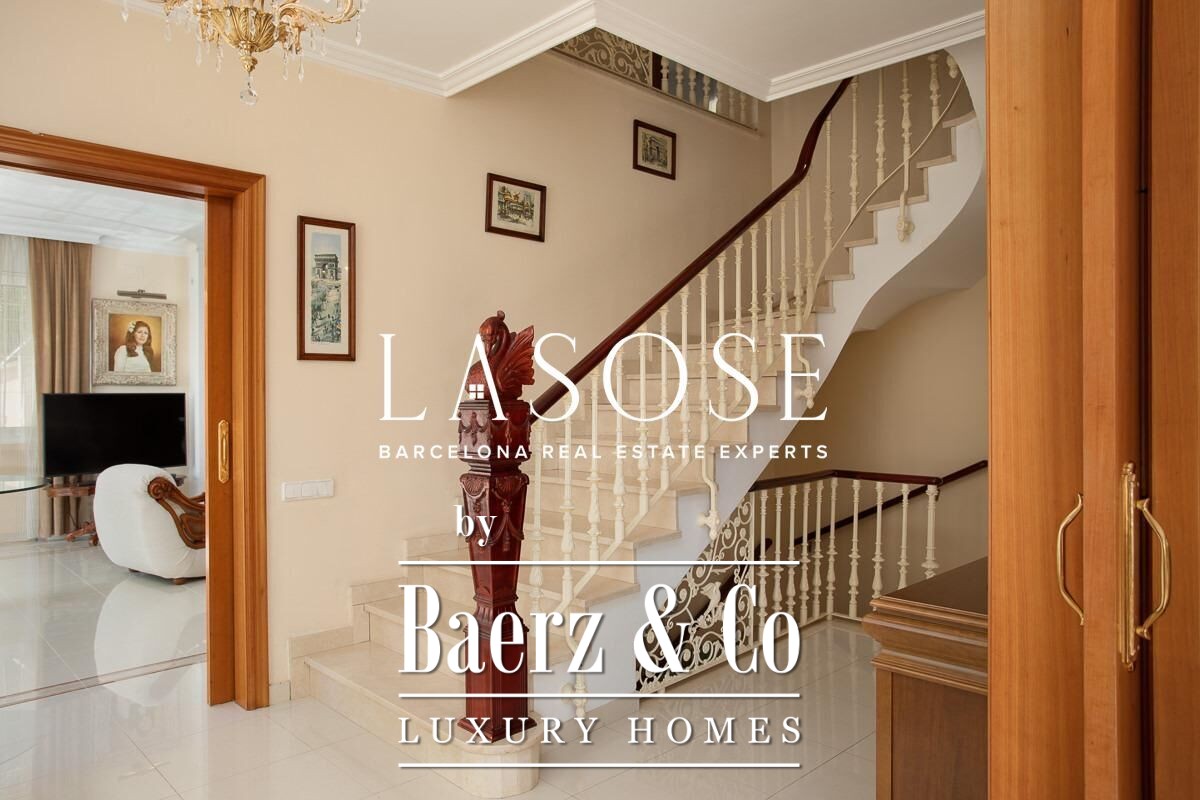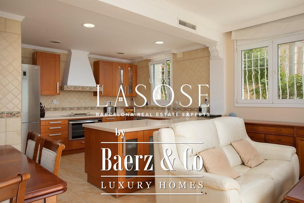Verspreid over vier met lift verbonden verdiepingen is de architectuur van de villa doordacht, licht en ontworpen voor een moeiteloze overgang tussen binnen en buiten. De leefruimtes zijn voorzien van elegante marmeren vloeren en een haard, en openen naar riante terrassen en een vlakke tuin, omlijst door uitzonderlijke vergezichten tot aan de skyline van Barcelona op heldere dagen. Vijf slaapkamers en vijf badkamers bieden privacy, terwijl twee volledig ingerichte keukens flexibiliteit toevoegen. De privébibliotheek, royale bijkeuken en specifieke opbergruimtes verhogen het gebruiksgemak zonder concessie te doen aan stijl.