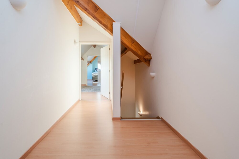 Middels de afgesloten trapopgang op de overloop heeft u toegang tot de slaapkamers en opbergruimte op de tweede verdieping.