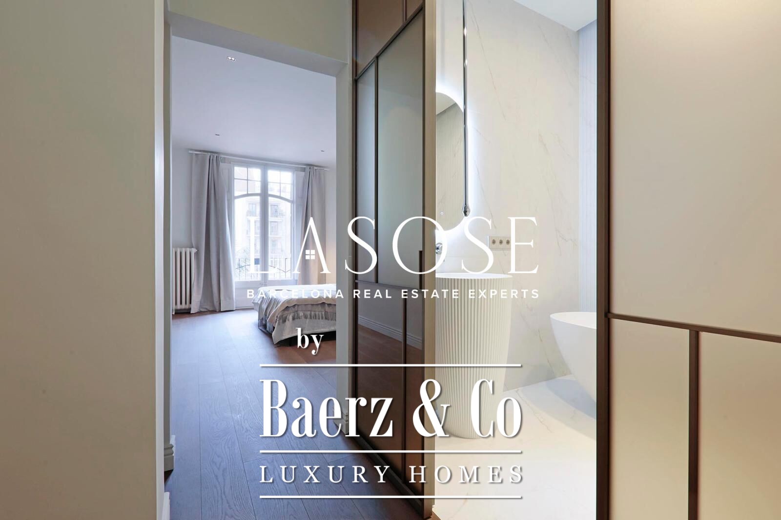 LASOSE is pleased to present this exceptional apartment, very bright, in a privileged location in Barcelona.. . We welcome you to this unique property that offers a perfect blend of luxury and functionality. This property will satisfy both your needs for space and privacy. . . It consists of 4 bedrooms, 3 doubles, two of them en suite, and a single room. Upon entering the master bedrooms you will be greeted by the epitome of comfort and elegance. Both suites offer exclusive access to a private balcony, providing a serene retreat with panoramic views. Imagine waking up to gentle breezes and natural light streaming in, creating an atmosphere of tranquility. In addition to the private enclaves, the property features a guest bathroom for added convenience. The spacious, modern kitchen is a culinary enthusiast's dream. It connects to the bright and open living and dining area, creating a harmonious space for entertaining and relaxation.