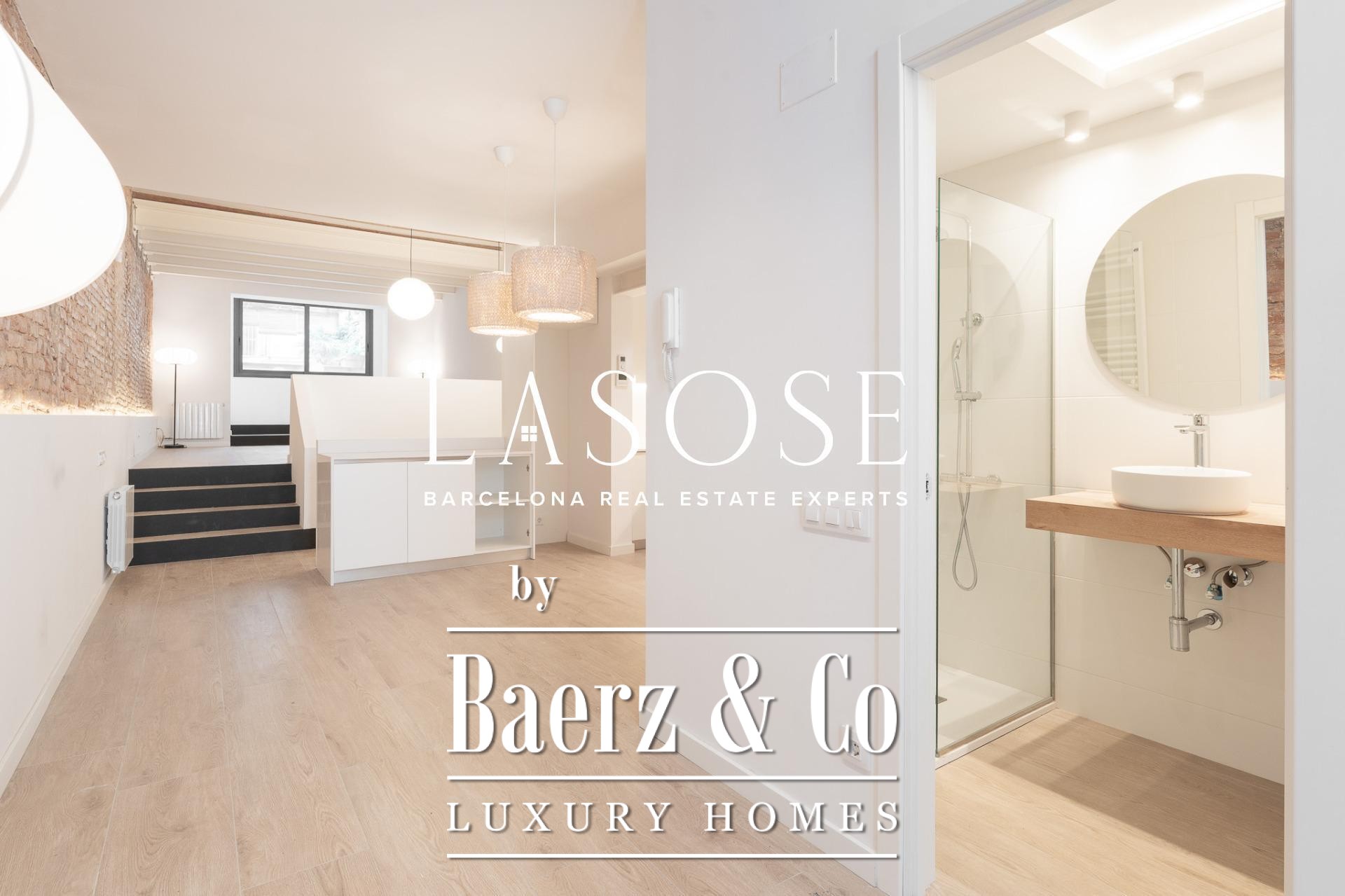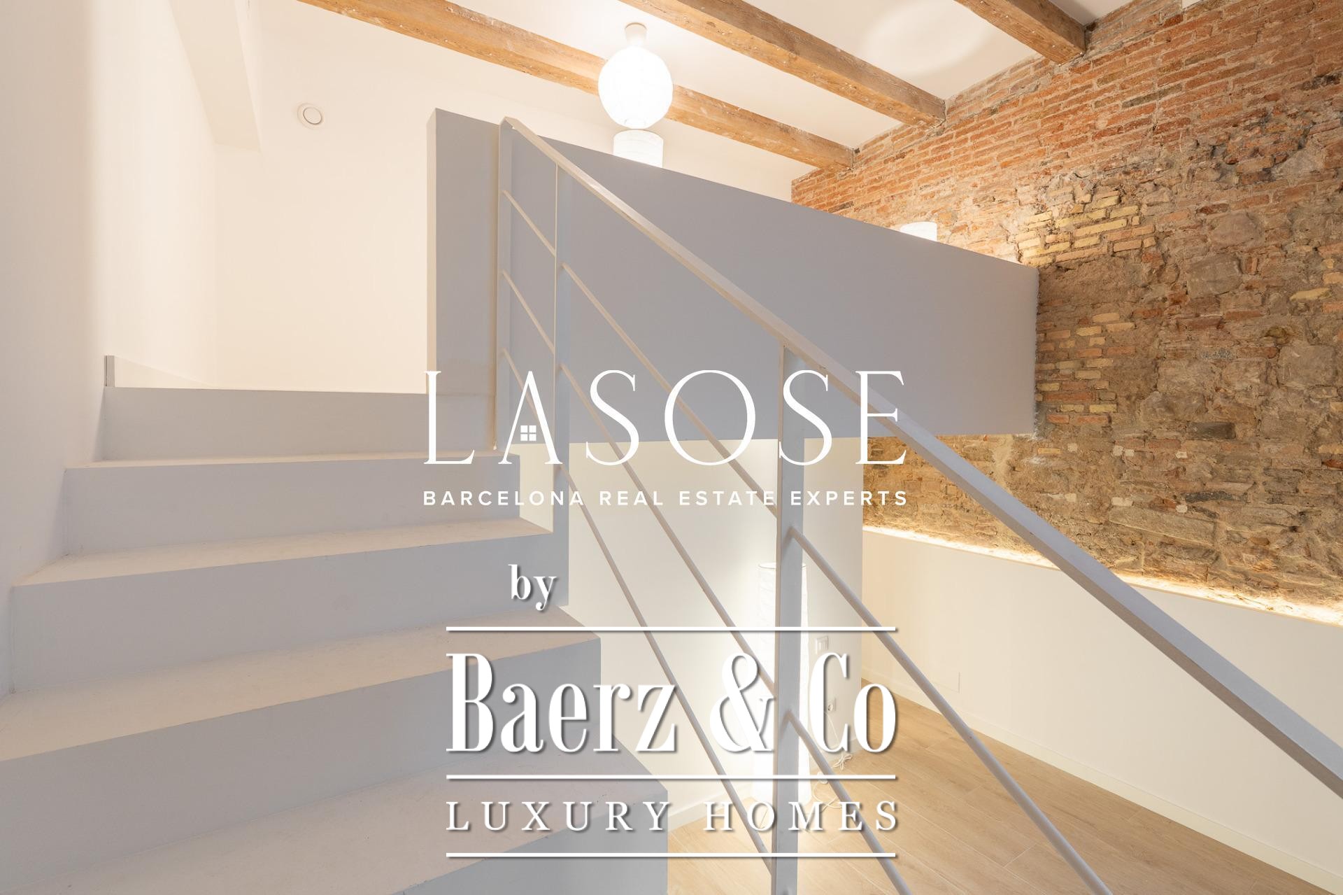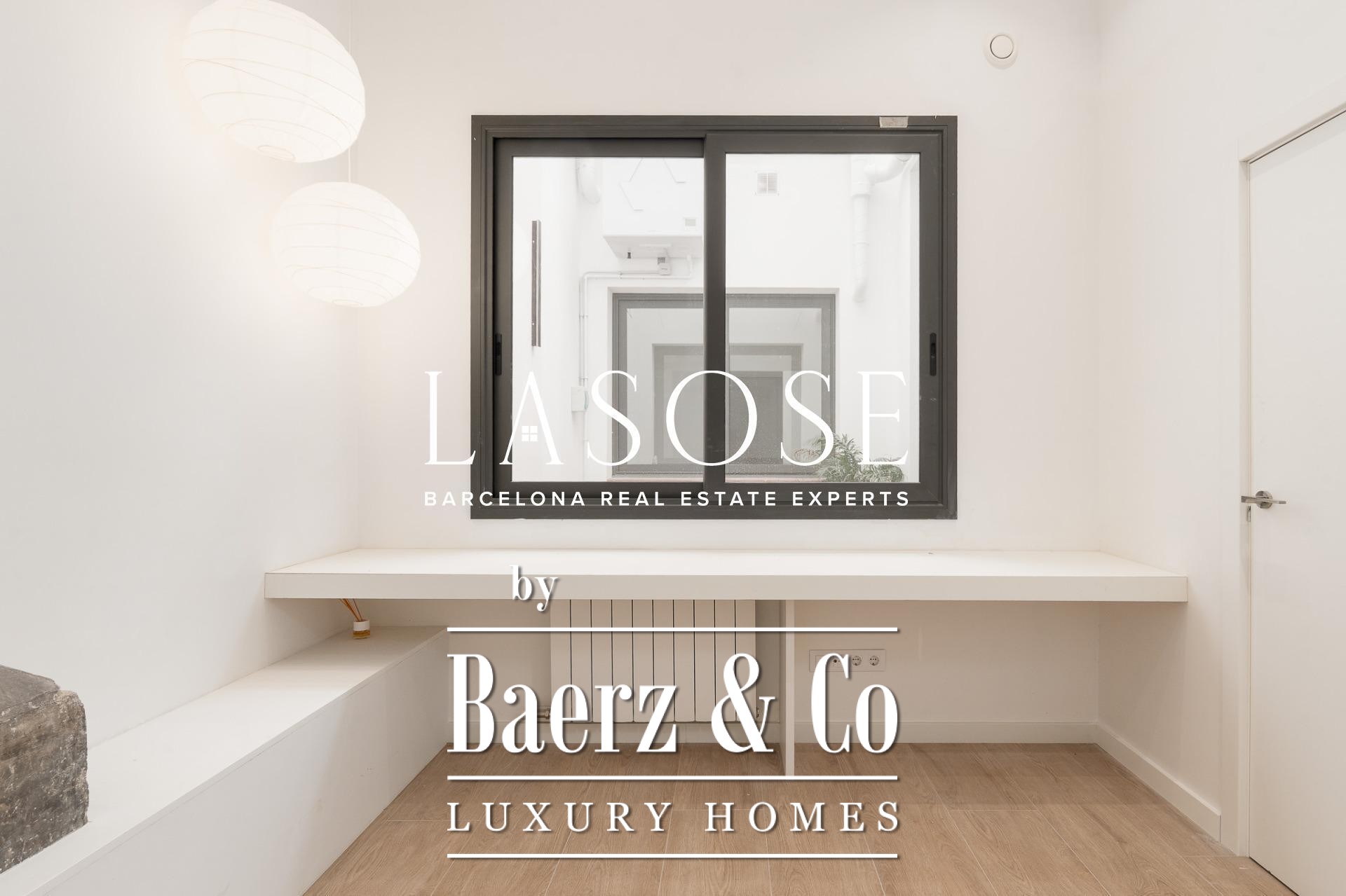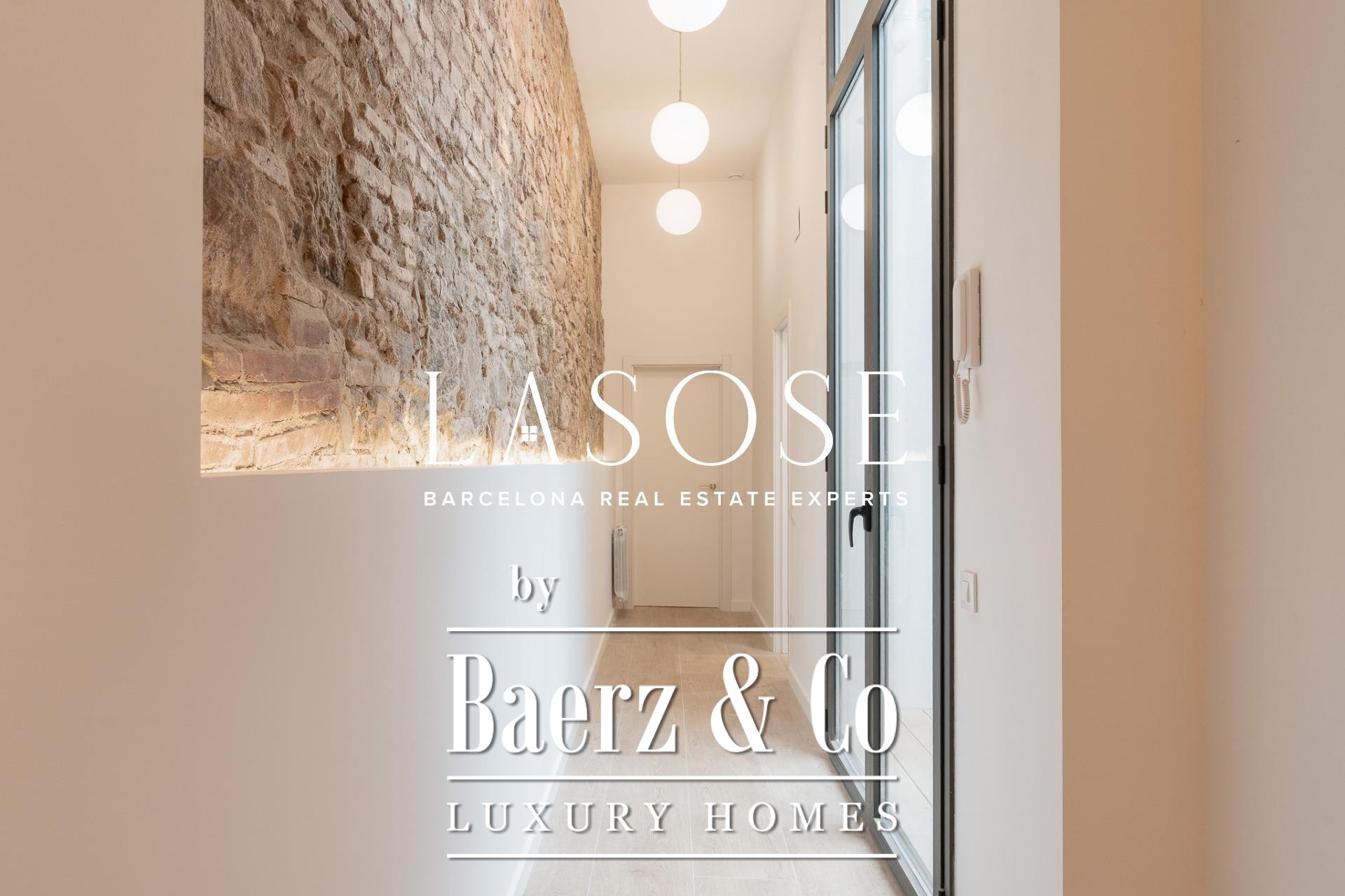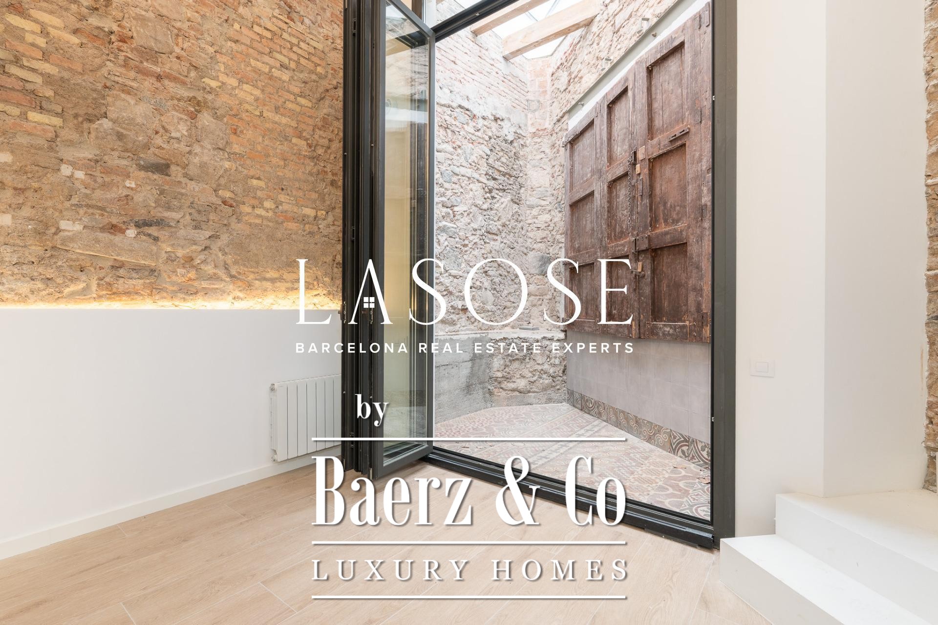 LASOSE presents an exclusive apartment in the charming neighborhood of Gràcia, located in a quiet passage, between Paseo de Sant Joan and Travessera de Gràcia. It is an inverted duplex, renovated brand new, with an area of 151 m² built and direct and independent access from the street, which gives it exceptional privacy.. . On the main floor, of 79 m², there is an open space with different levels that organize the day area. This ambience has a spacious living room, a fully equipped designer kitchen with dining space and a guest toilet.. . From the living room there is access to a charming private terrace of 45 m2, ideal for enjoying quiet moments outdoors.. . The lower floor, of 90 m², houses the sleeping area with three bedrooms, two bathrooms and a practical laundry area. The master suite stands out for its spaciousness and for having its own patio, creating an oasis of calm within the house. In addition, a versatile loft can be used as a study, dressing room or additional sleeping area. A bright central courtyard with skylights bathes this floor with natural light, providing a warm and welcoming atmosphere.. . This property has been refurbished with top quality materials, respecting and enhancing