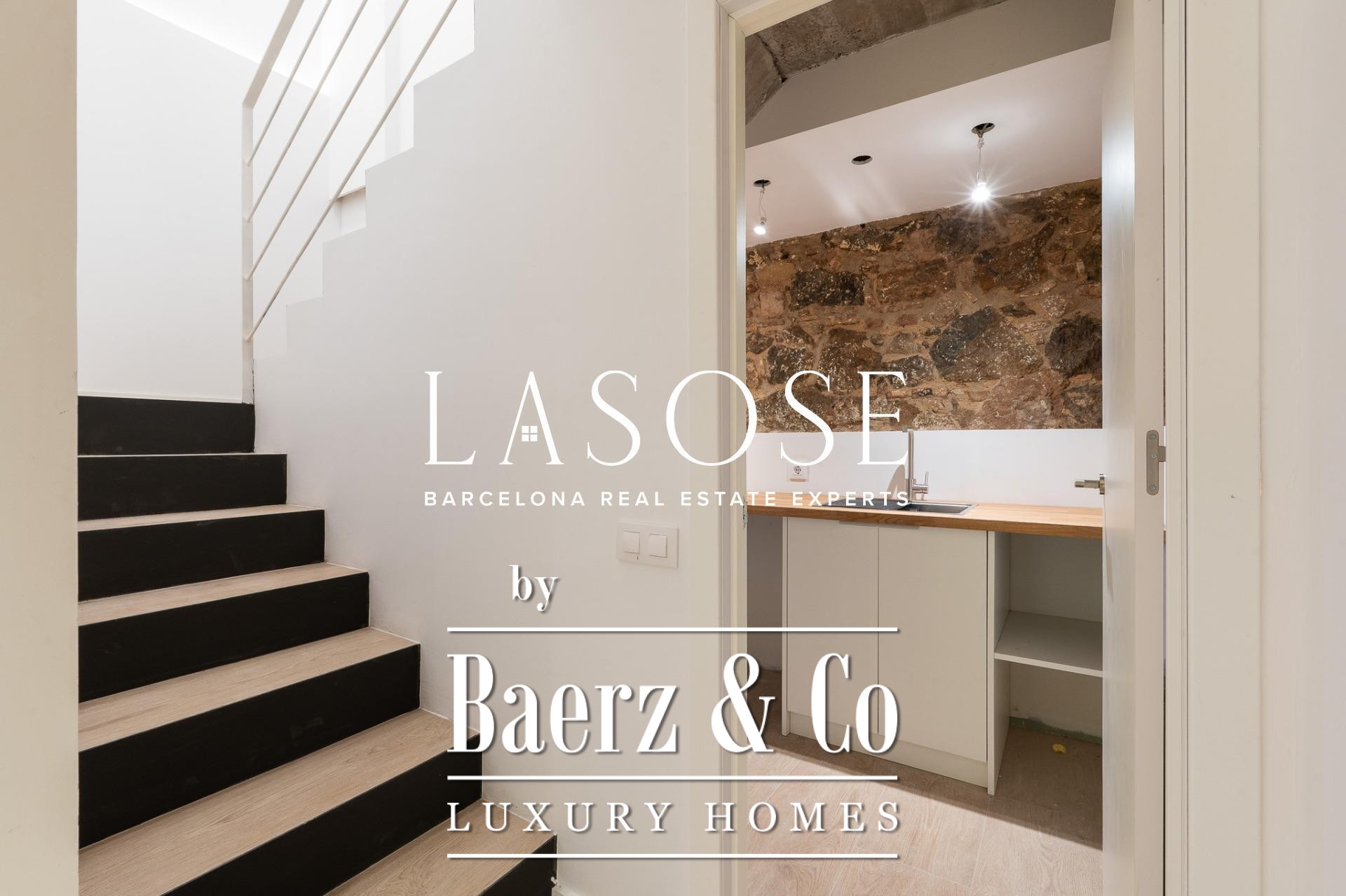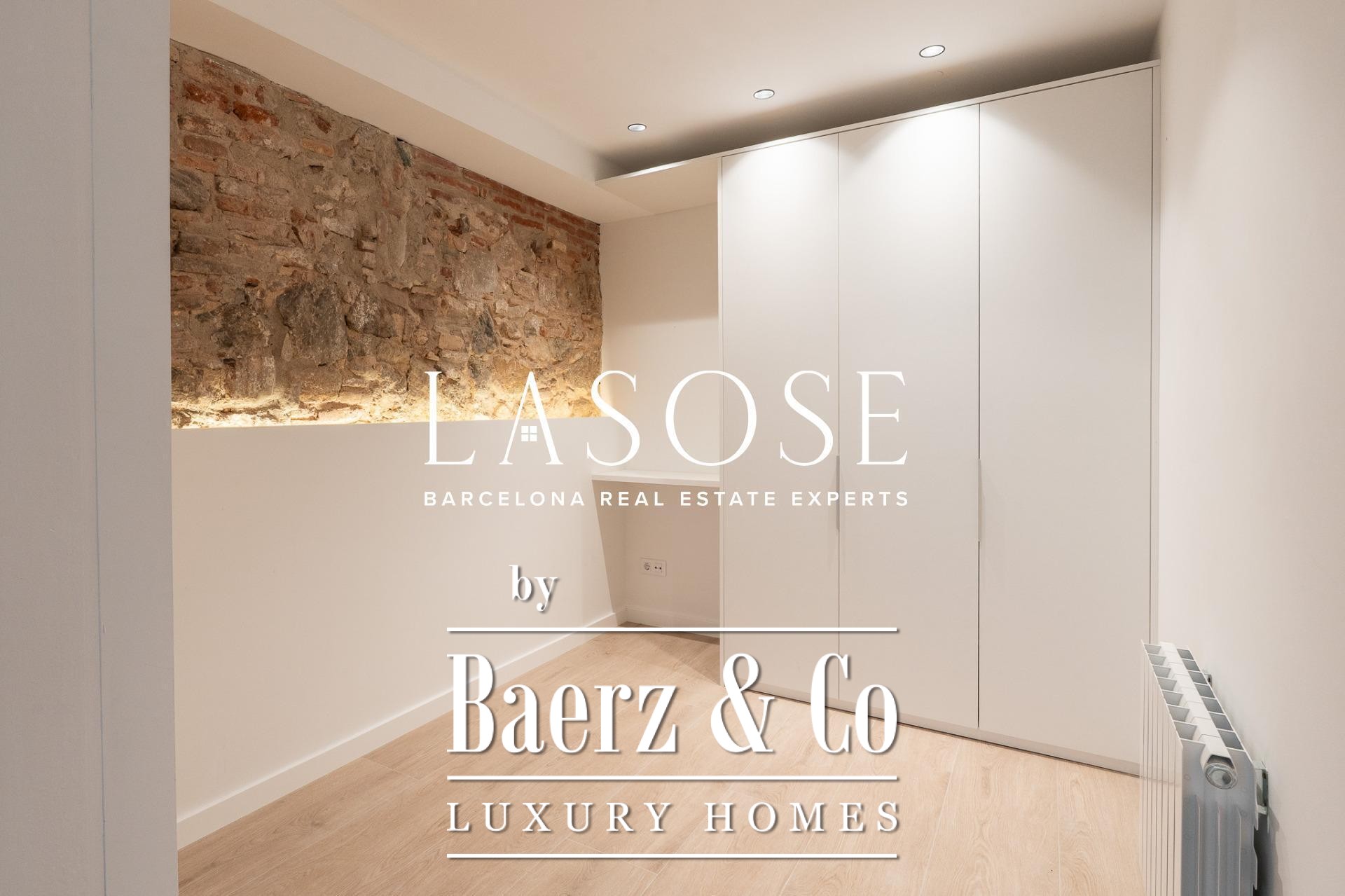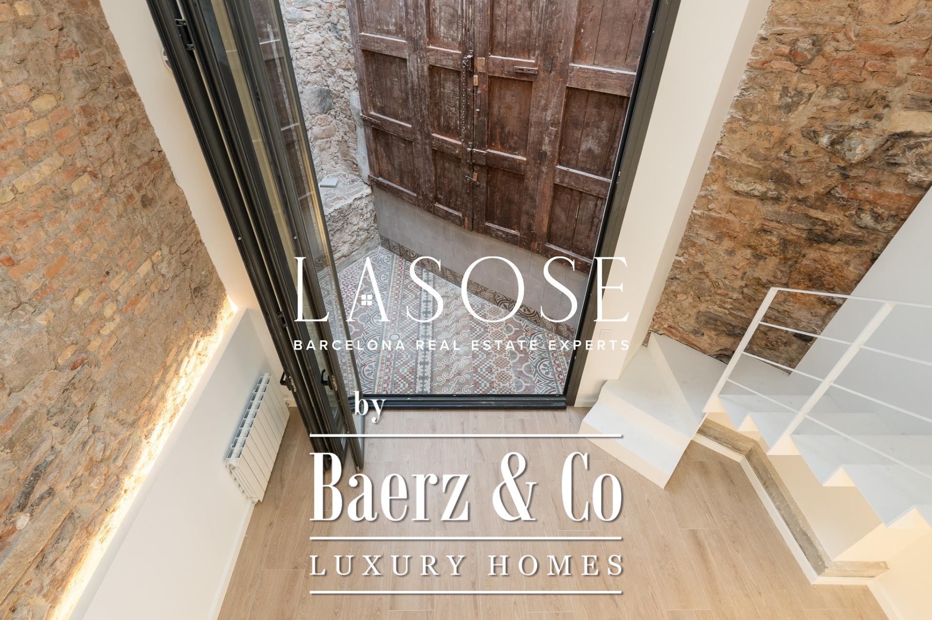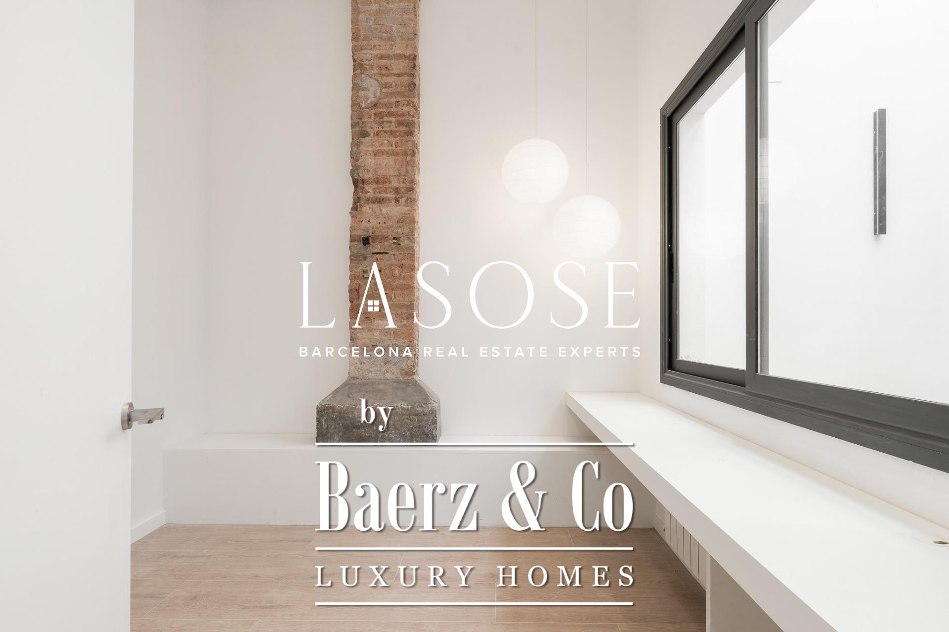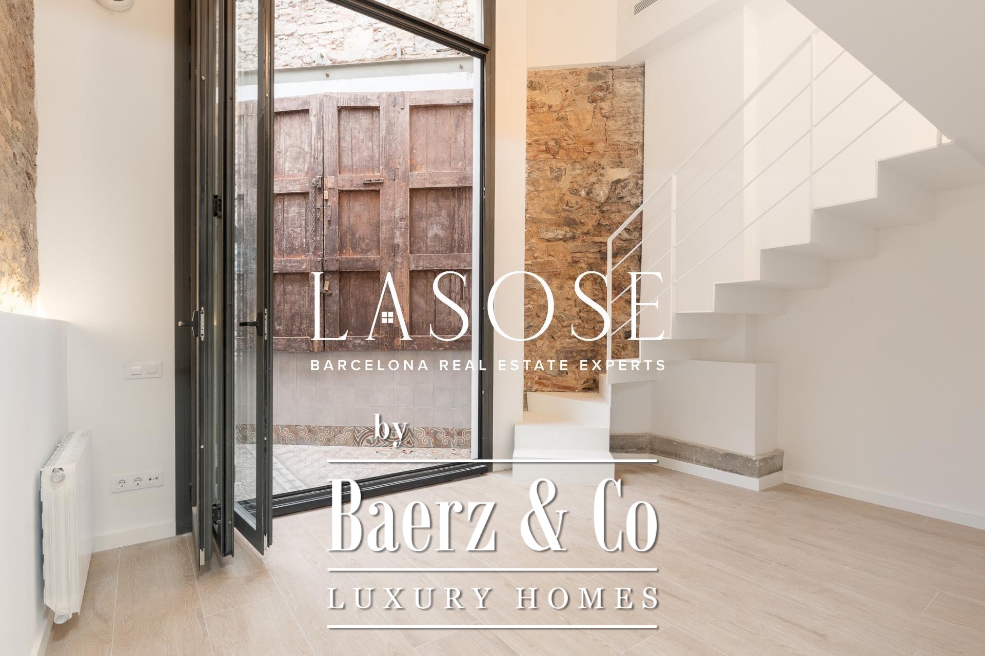 LASOSE presents an exclusive apartment in the charming neighborhood of Gràcia, located in a quiet passage, between Paseo de Sant Joan and Travessera de Gràcia. It is an inverted duplex, renovated brand new, with an area of 151 m² built and direct and independent access from the street, which gives it exceptional privacy.. . On the main floor, of 79 m², there is an open space with different levels that organize the day area. This ambience has a spacious living room, a fully equipped designer kitchen with dining space and a guest toilet.. . From the living room there is access to a charming private terrace of 45 m2, ideal for enjoying quiet moments outdoors.. . The lower floor, of 90 m², houses the sleeping area with three bedrooms, two bathrooms and a practical laundry area. The master suite stands out for its spaciousness and for having its own patio, creating an oasis of calm within the house. In addition, a versatile loft can be used as a study, dressing room or additional sleeping area. A bright central courtyard with skylights bathes this floor with natural light, providing a warm and welcoming atmosphere.. . This property has been refurbished with top quality materials, respecting and enhancing
