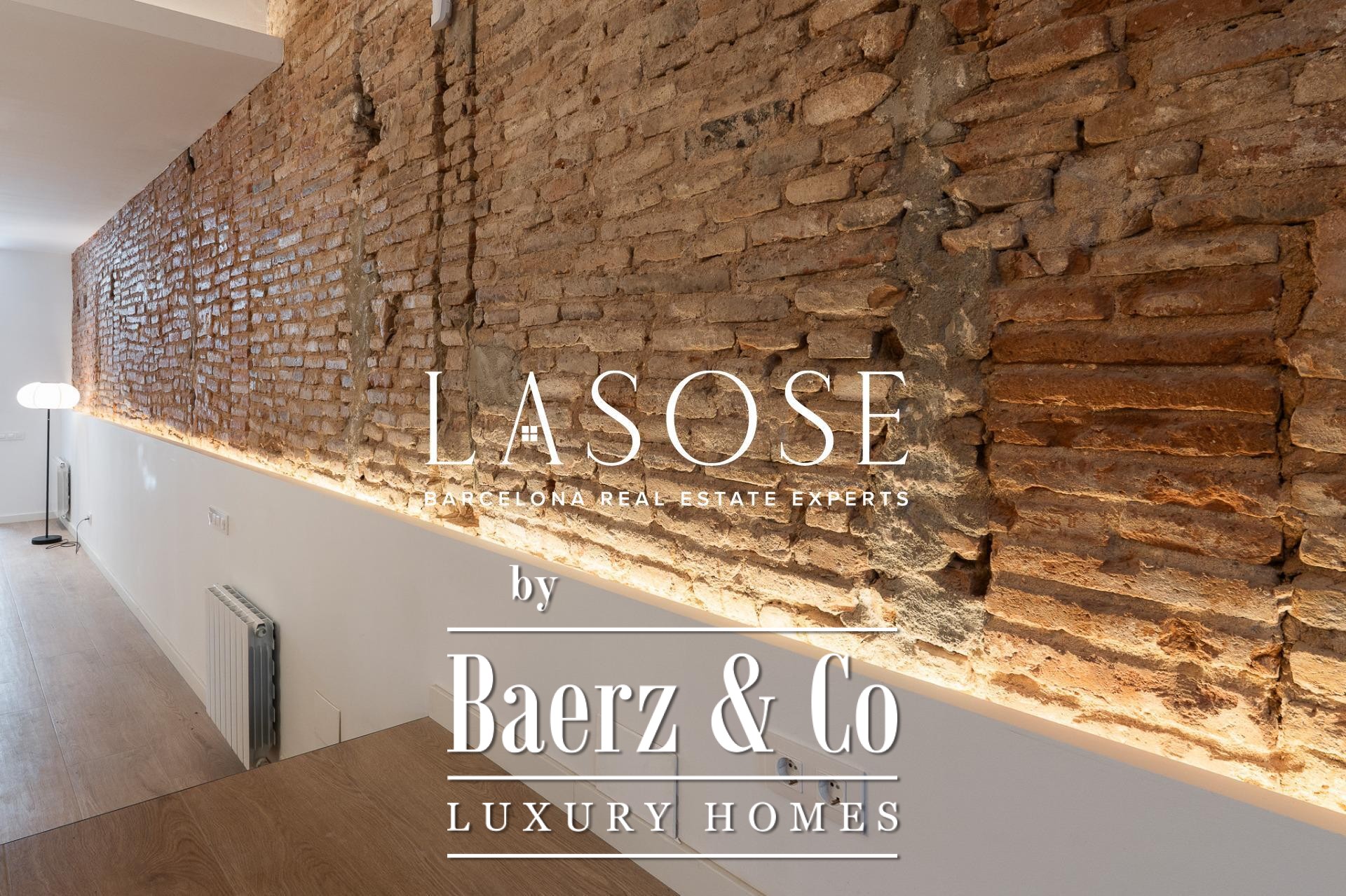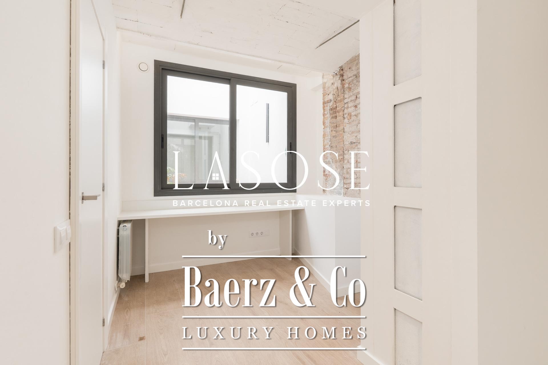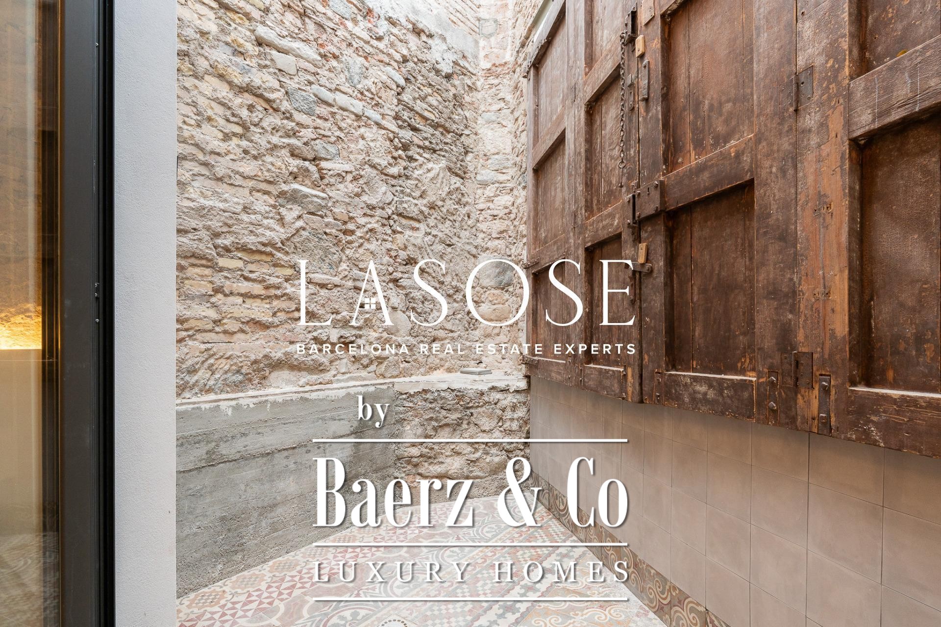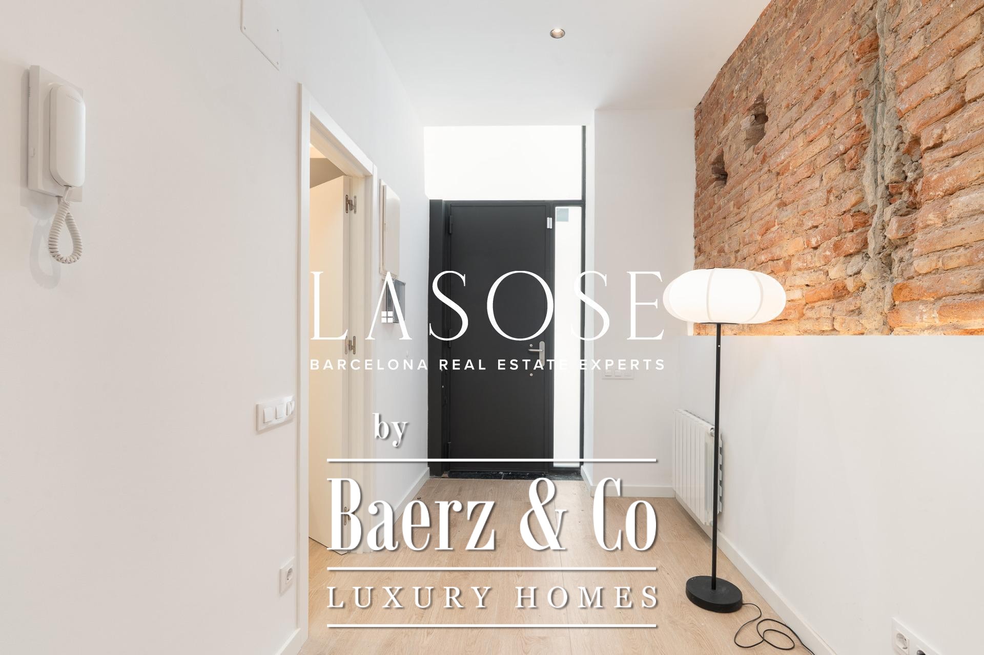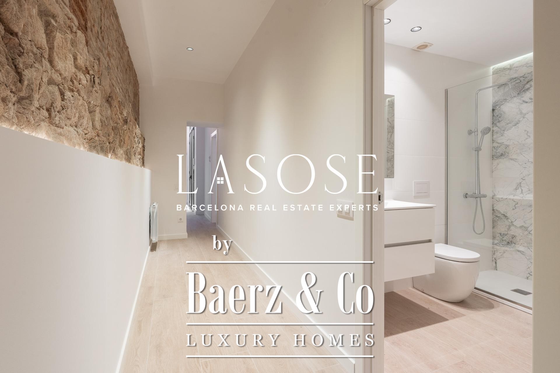 LASOSE presents an exclusive apartment in the charming neighborhood of Gràcia, located in a quiet passage, between Paseo de Sant Joan and Travessera de Gràcia. It is an inverted duplex, renovated brand new, with an area of 151 m² built and direct and independent access from the street, which gives it exceptional privacy.. . On the main floor, of 79 m², there is an open space with different levels that organize the day area. This ambience has a spacious living room, a fully equipped designer kitchen with dining space and a guest toilet.. . From the living room there is access to a charming private terrace of 45 m2, ideal for enjoying quiet moments outdoors.. . The lower floor, of 90 m², houses the sleeping area with three bedrooms, two bathrooms and a practical laundry area. The master suite stands out for its spaciousness and for having its own patio, creating an oasis of calm within the house. In addition, a versatile loft can be used as a study, dressing room or additional sleeping area. A bright central courtyard with skylights bathes this floor with natural light, providing a warm and welcoming atmosphere.. . This property has been refurbished with top quality materials, respecting and enhancing