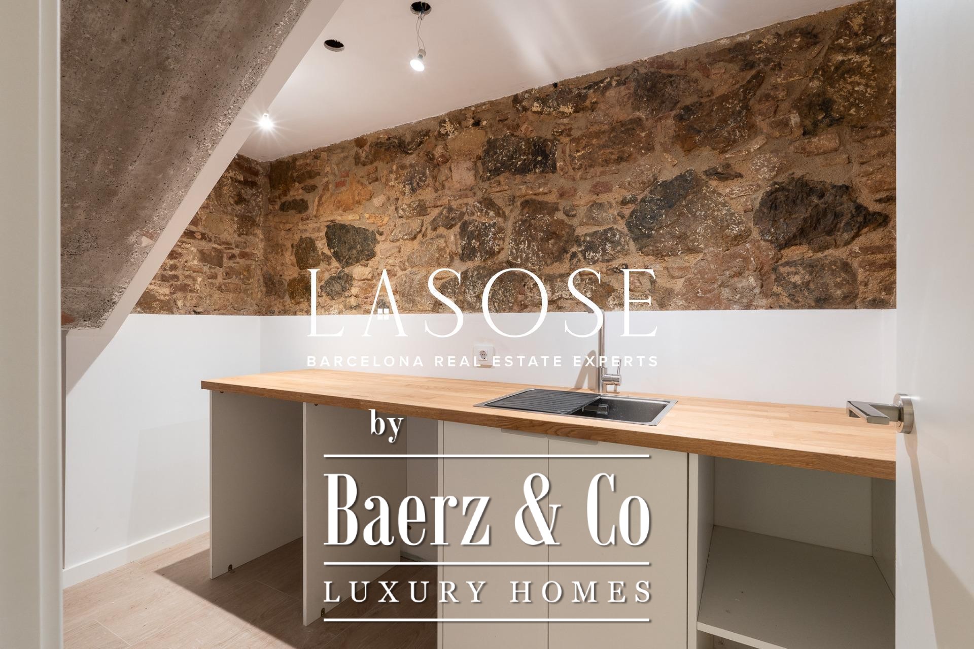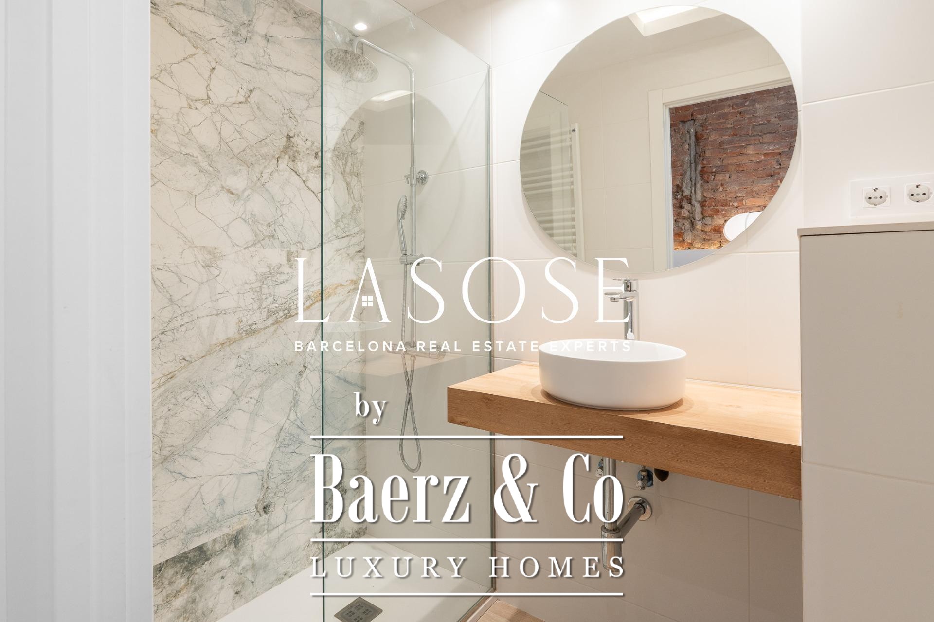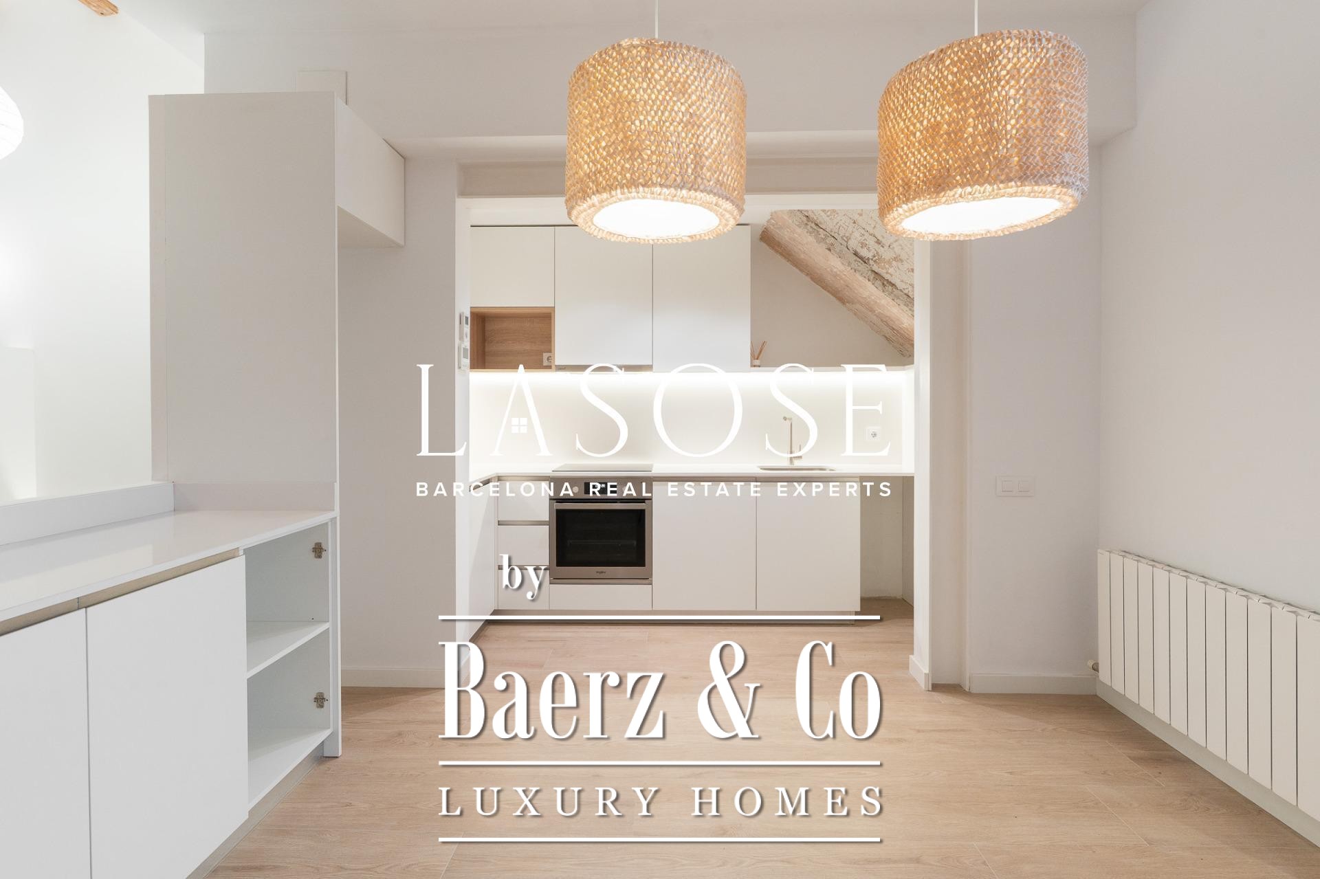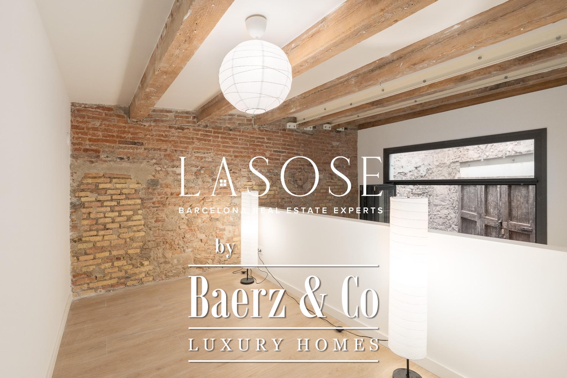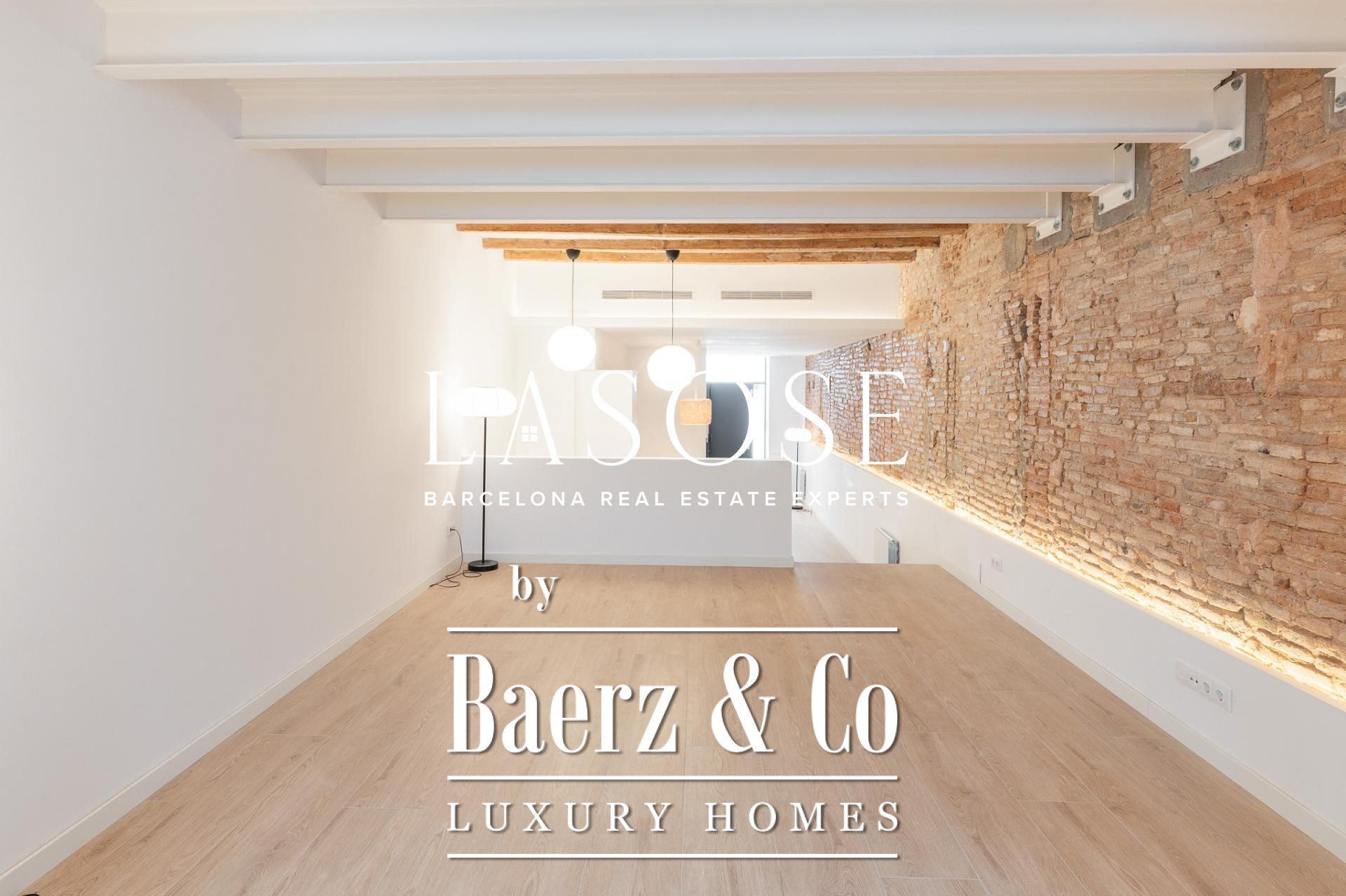 LASOSE presents an exclusive apartment in the charming neighborhood of Gràcia, located in a quiet passage, between Paseo de Sant Joan and Travessera de Gràcia. It is an inverted duplex, renovated brand new, with an area of 151 m² built and direct and independent access from the street, which gives it exceptional privacy.. . On the main floor, of 79 m², there is an open space with different levels that organize the day area. This ambience has a spacious living room, a fully equipped designer kitchen with dining space and a guest toilet.. . From the living room there is access to a charming private terrace of 45 m2, ideal for enjoying quiet moments outdoors.. . The lower floor, of 90 m², houses the sleeping area with three bedrooms, two bathrooms and a practical laundry area. The master suite stands out for its spaciousness and for having its own patio, creating an oasis of calm within the house. In addition, a versatile loft can be used as a study, dressing room or additional sleeping area. A bright central courtyard with skylights bathes this floor with natural light, providing a warm and welcoming atmosphere.. . This property has been refurbished with top quality materials, respecting and enhancing