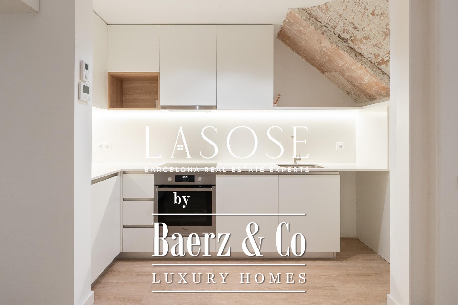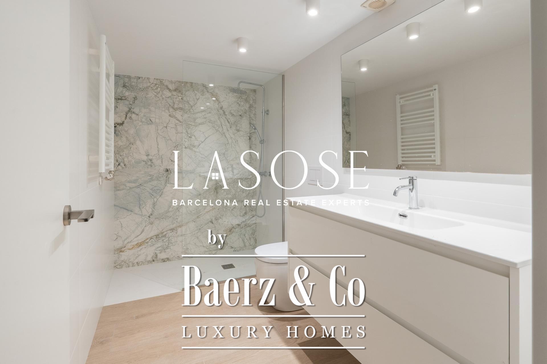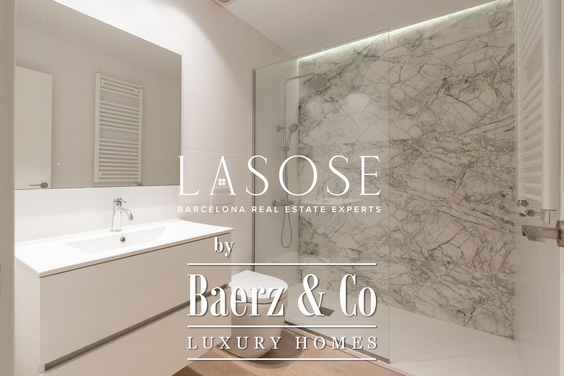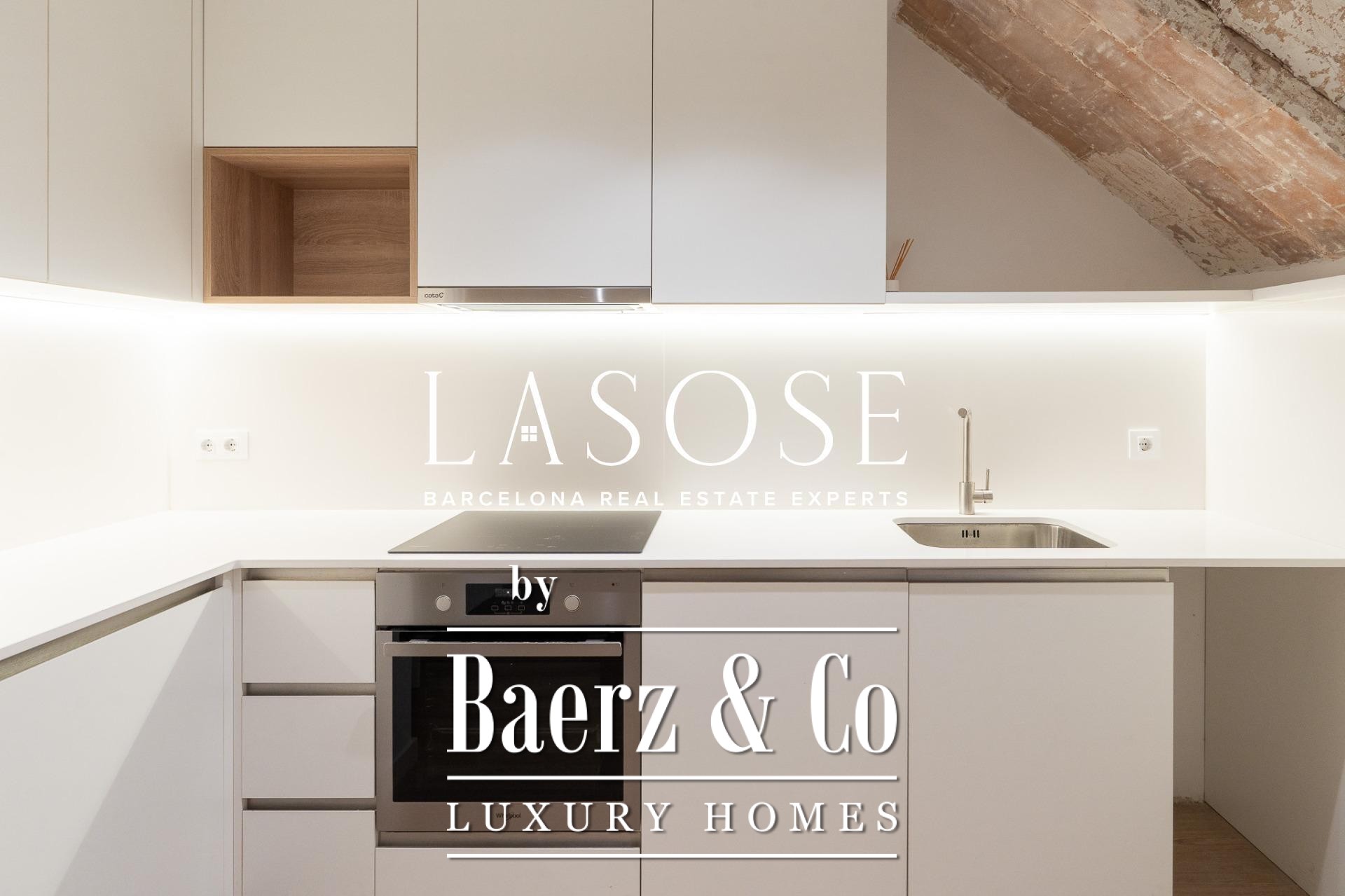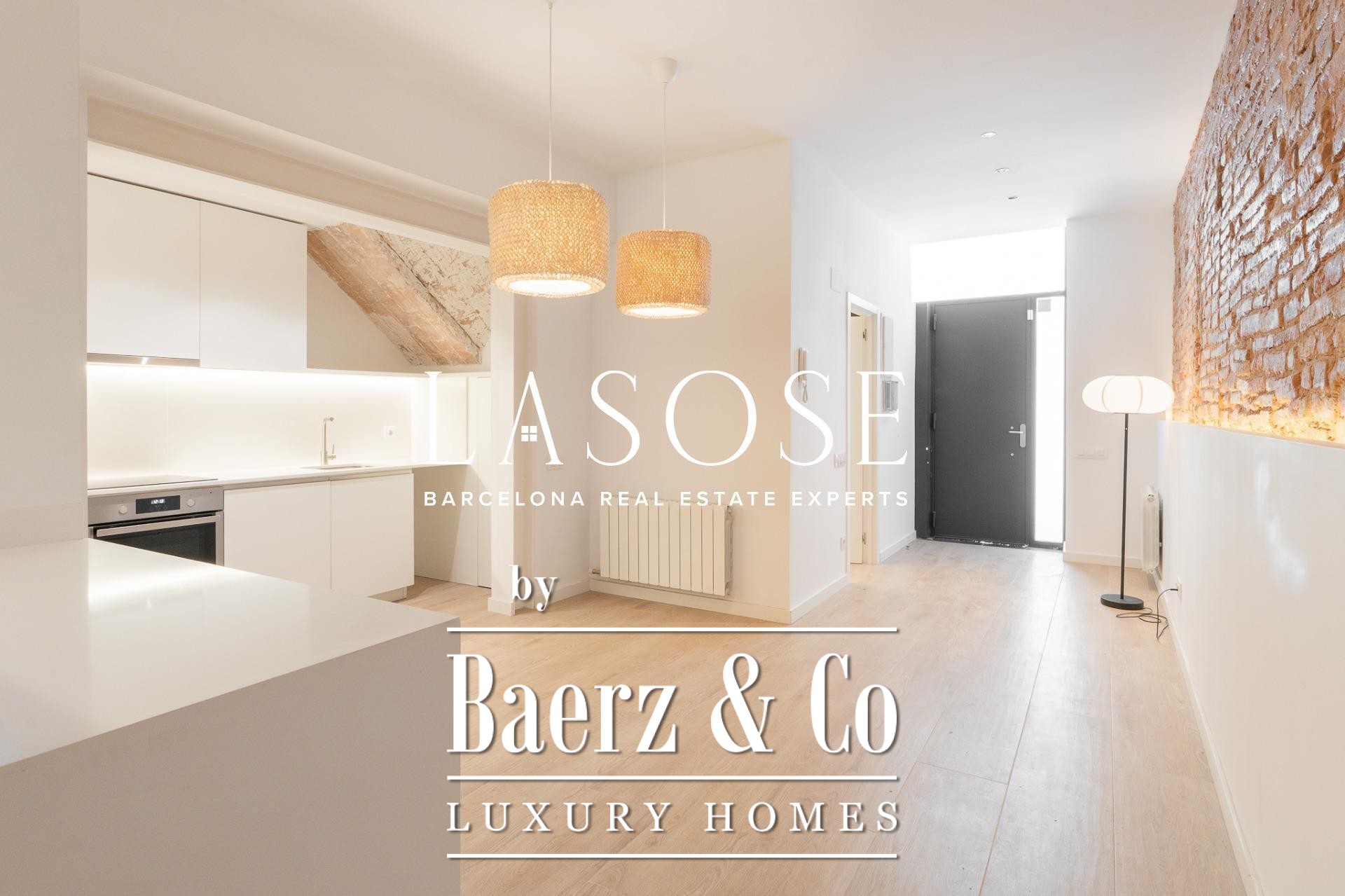 LASOSE presents an exclusive apartment in the charming neighborhood of Gràcia, located in a quiet passage, between Paseo de Sant Joan and Travessera de Gràcia. It is an inverted duplex, renovated brand new, with an area of 151 m² built and direct and independent access from the street, which gives it exceptional privacy.. . On the main floor, of 79 m², there is an open space with different levels that organize the day area. This ambience has a spacious living room, a fully equipped designer kitchen with dining space and a guest toilet.. . From the living room there is access to a charming private terrace of 45 m2, ideal for enjoying quiet moments outdoors.. . The lower floor, of 90 m², houses the sleeping area with three bedrooms, two bathrooms and a practical laundry area. The master suite stands out for its spaciousness and for having its own patio, creating an oasis of calm within the house. In addition, a versatile loft can be used as a study, dressing room or additional sleeping area. A bright central courtyard with skylights bathes this floor with natural light, providing a warm and welcoming atmosphere.. . This property has been refurbished with top quality materials, respecting and enhancing