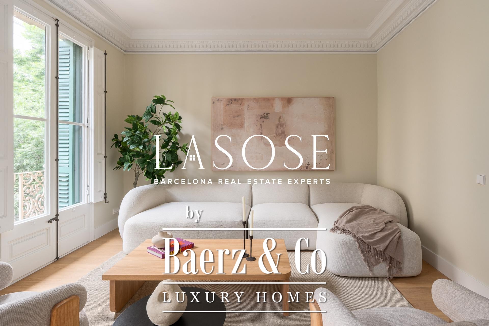 Appartement Barcelona Eixample biedt moeiteloos modern comfort binnen de tijdloze allure van historische architectuur. Op de tweede verdieping van een stijlvol monumentaal pand uit 1900 vormt deze woning van 185 m² een samensmelting van Barcelona’s architecturale erfgoed en eigentijds design. De ruimtes zijn royaal en licht, met een doorzonindeling waardoor elke leefruimte de hele dag door profiteert van natuurlijk daglicht.