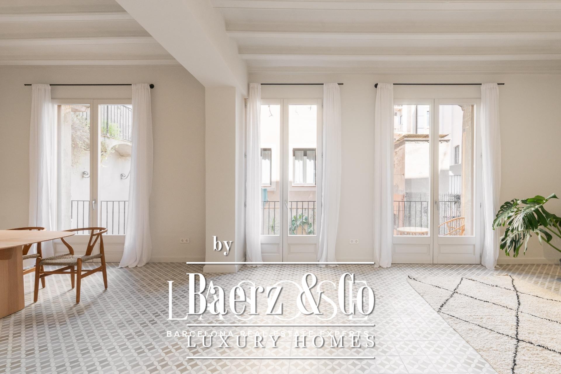 modern finishes. . - Exceptional tranquility, faces a spacious interior courtyard, away from city noise. . - Central ducted air conditioning, heating and cooling for year-round comfort. . - 7 m² balcony and a lovely communal rooftop terrace, perfect spots to relax and enjoy the views. . - Brand-new exterior joinery, premium thermal and acoustic insulation. . . And there’s more! The building has an approved project for elevator installation, a future upgrade that will further enhance the property’s value. . . Living in El Born means enjoying gourmet dining, exclusive boutiques, and a vibrant cultural scene, all just steps from your doorstep. Ready to fall in love with this architectural gem? . Contact us today to schedule a viewing!