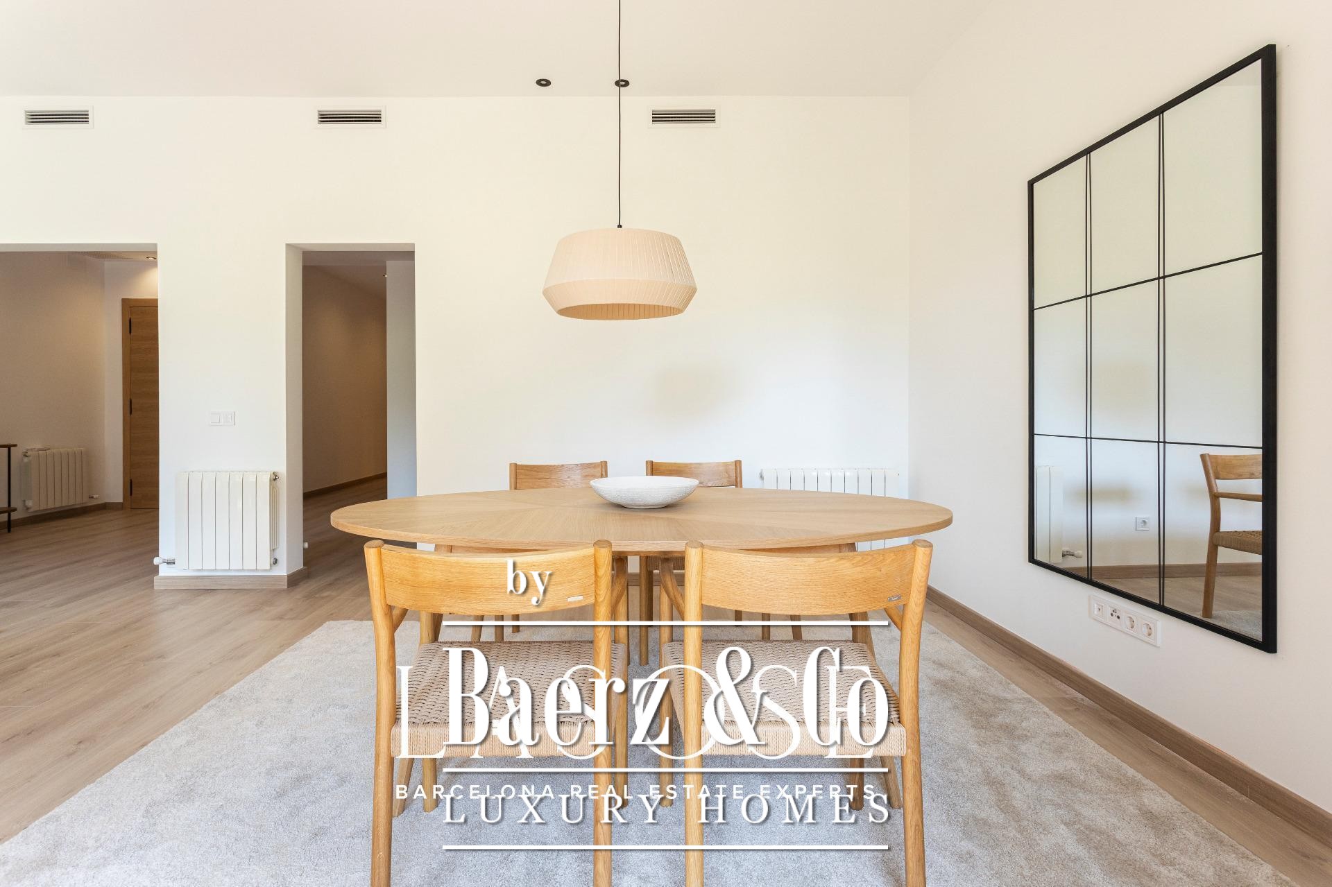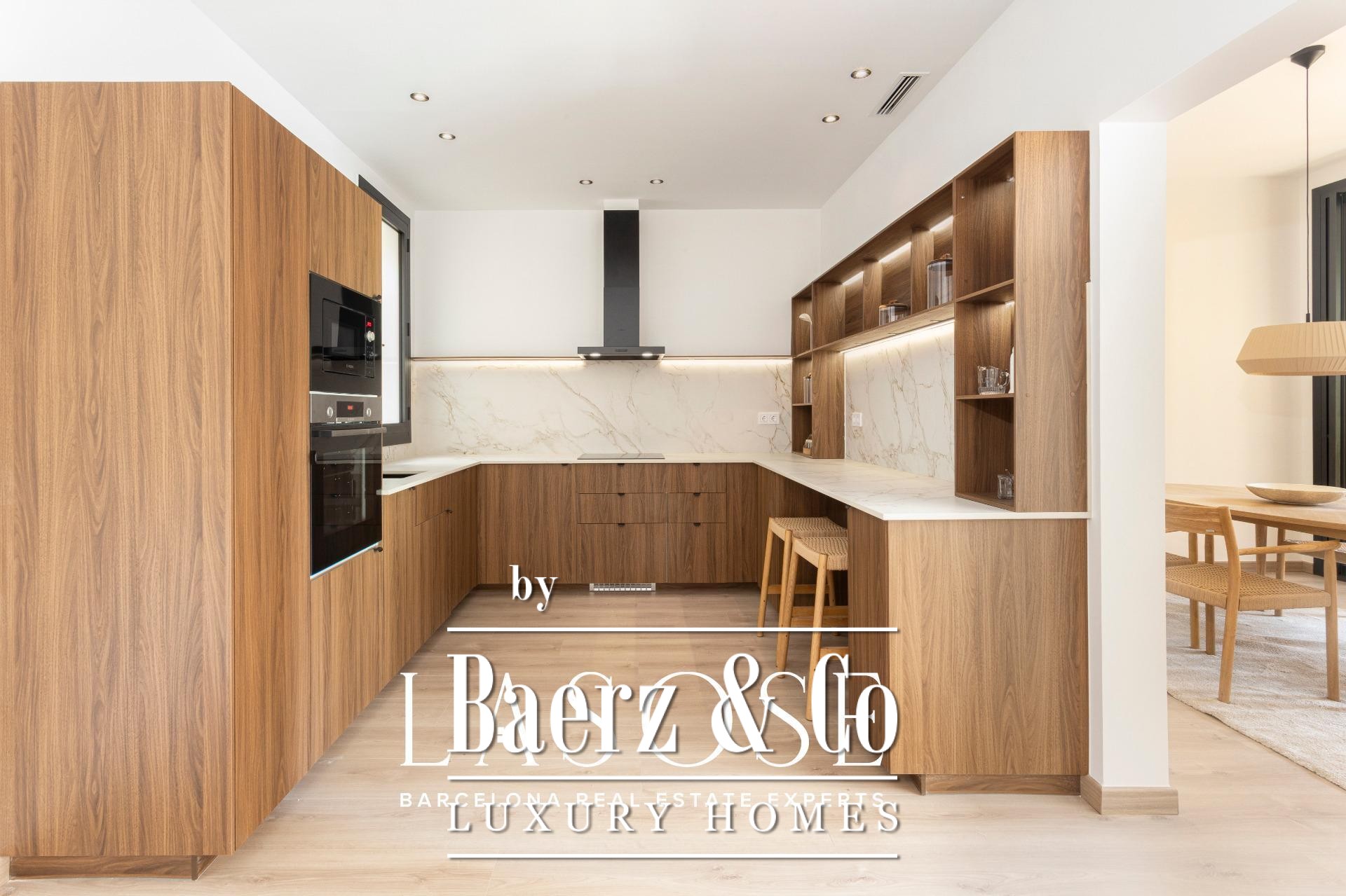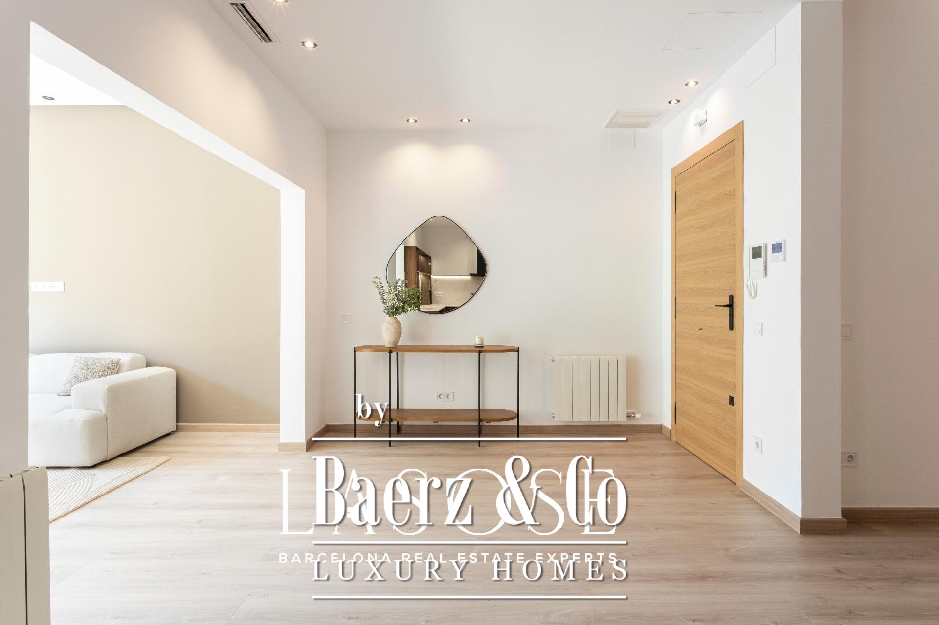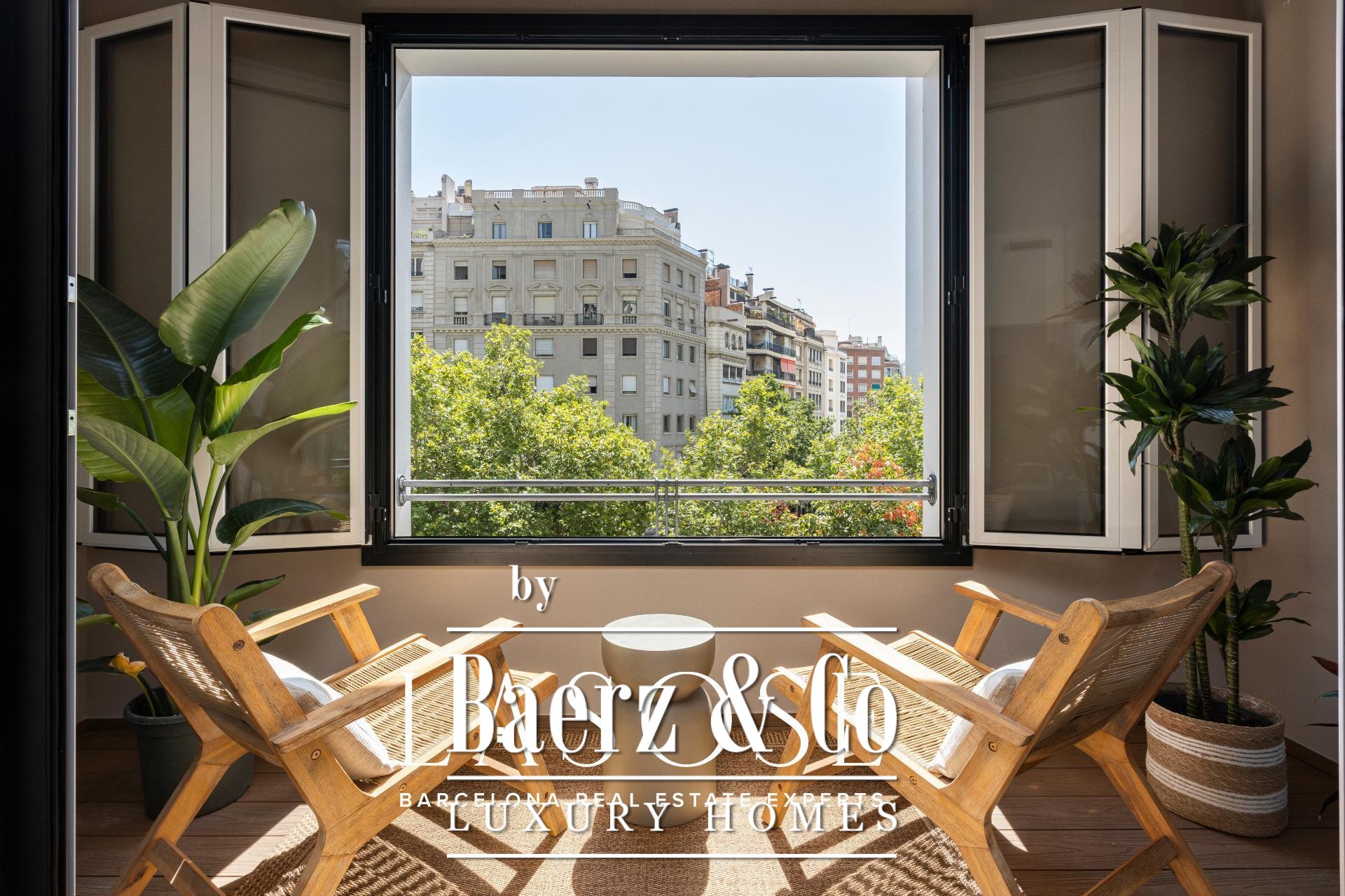 LASOSE presents this exclusive property located on the second floor (third real floor) of a stately estate on the prestigious Josep Tarradellas Avenue, this elegant residence has been completely refurbished with high quality finishes.. . It stands out for its great luminosity, thanks to its double orientation, as well as for its large interior spaces, with high ceilings.. . Upon entering, we find a large hall that leads to the day area, consisting of open kitchen, living room and dining room, with large windows through which you access a cozy gallery-balcony that allows unobstructed views to the outside.. . The open kitchen, of modern design, is equipped with integrated Bosch appliances, including oven, induction hob, dishwasher and extractor hood. The countertop is from Dekton by Cosentino in a sophisticated matte finish.. . The night area consists of three double bedrooms, all of them of large dimensions, and three full bathrooms (one of them en suite), as well as a laundry room.. . The master suite, very spacious, has access to a bright gallery, dressing room and en suite bathroom