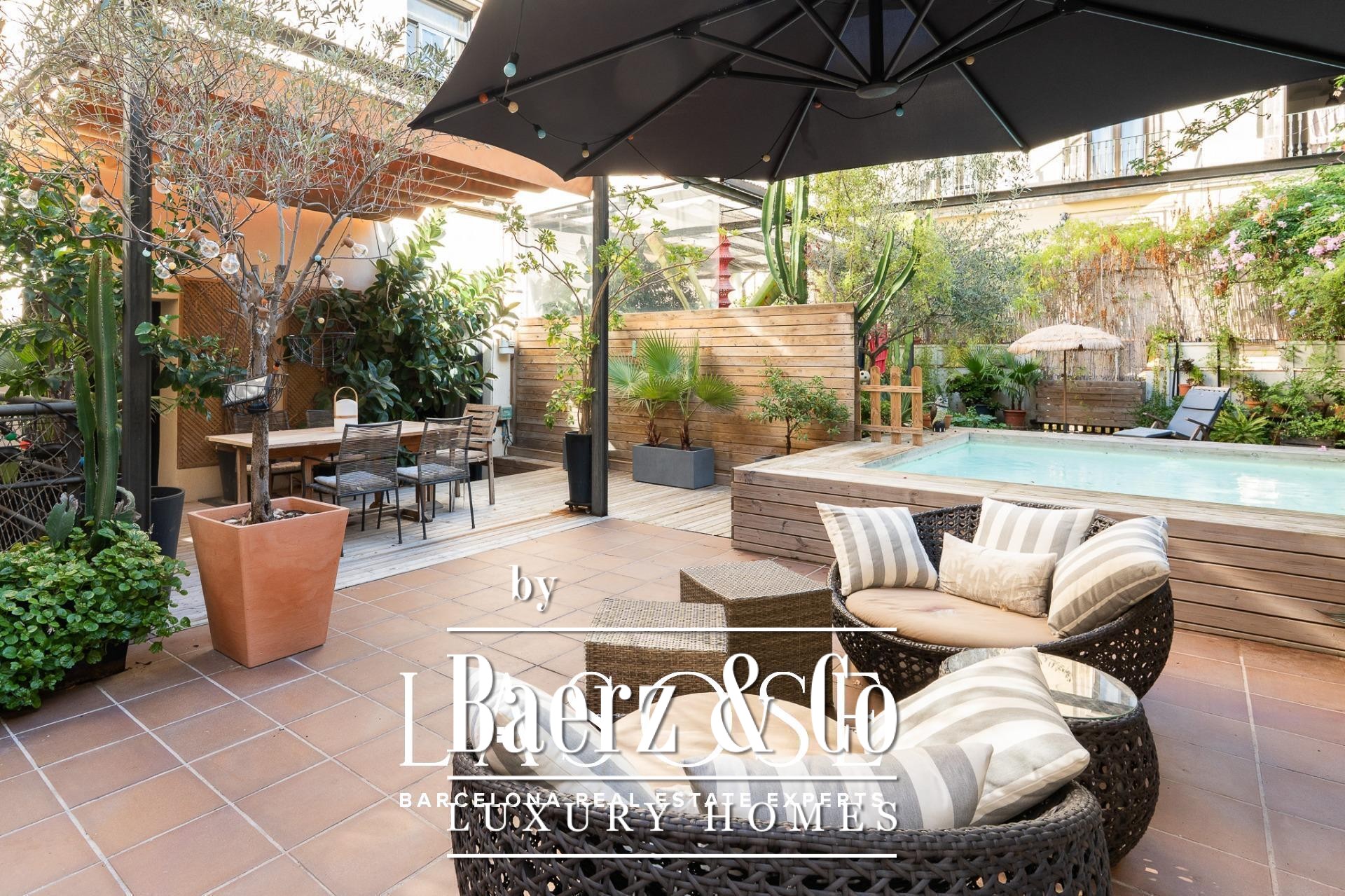 Het terras, recentelijk voorzien van een discrete nieuwe overkapping, versterkt het gevoel van privacy voor leven in de open lucht. Elke hoek getuigt van een zorgvuldige renovatie met respect voor authentieke architectonische details. Voorzieningen omvatten lift, inbouwkasten, moderne apparatuur, verwarming, airconditioning en een privézwembad. Gelegen op een steenworp van Paseo Colón, Port Vell en op korte afstand van de stranden en culturele hotspots van Barcelona, nodigt dit appartement uit tot een leven in balans tussen de dynamiek van Barri Gotic en het comfort van een eigen thuis. Luxe appartement te koop in Barcelona.