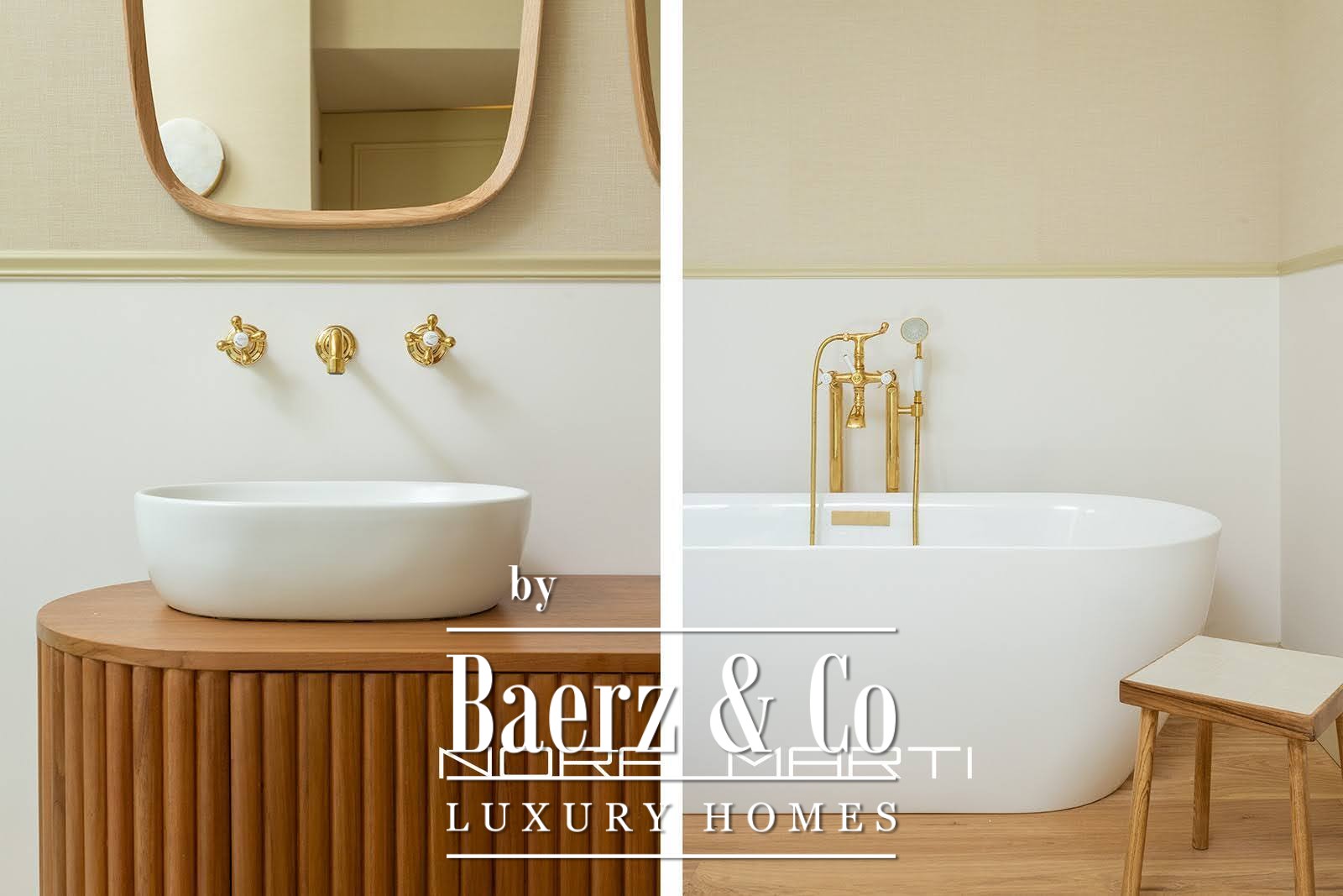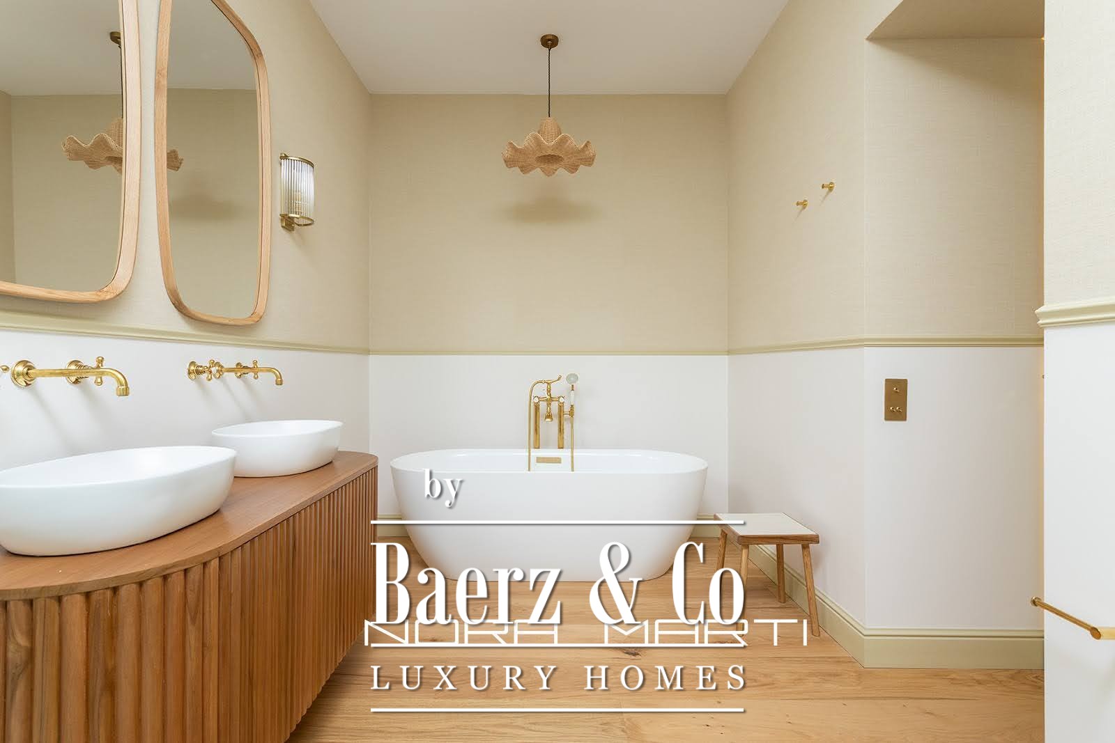 Alle drie de slaapkamers aan de buitenzijde zijn uitgerust met tweepersoonsbedden, maatwerk kledingkasten en en-suite badkamers voorzien van messing armaturen van een vooraanstaande Catalaanse fabrikant. Decoratieve verlichting uit Catalonië en Engeland, waaronder vintage- en antieke stukken, verrijken de ambiance. Het groene, uitnodigende terras biedt een zeldzame oase van rust aan de Passeig de Sant Joan en creëert mogelijkheden om te ontspannen, te entertainen en een bijzonder gevoel van ruimte te ervaren in centraal Barcelona. Dit luxe appartement te koop aan de Passeig de Sant Joan combineert tijdloze materialen met hedendaags comfort op een buitengewoon stedelijk adres.