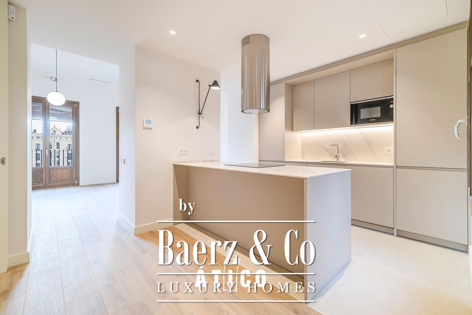 Penthouse Barcelona Golden Square nodigt uit om het leven in het kloppend hart van de stad te ervaren, omringd door stijlvolle lanen, culturele instellingen en een ingetogen, levendige sfeer die uniek is voor deze iconische wijk. Dit penthouse beschikt over een interieur van 93 m², waar natuurlijke lichtinval en strakke lijnen zorgen voor een serene leefruimte. De zorgvuldige renovatie is uitgevoerd met hoogwaardige materialen en gericht op wie een verfijnde combinatie van comfort en designgevoelige functionaliteit waarderen.
