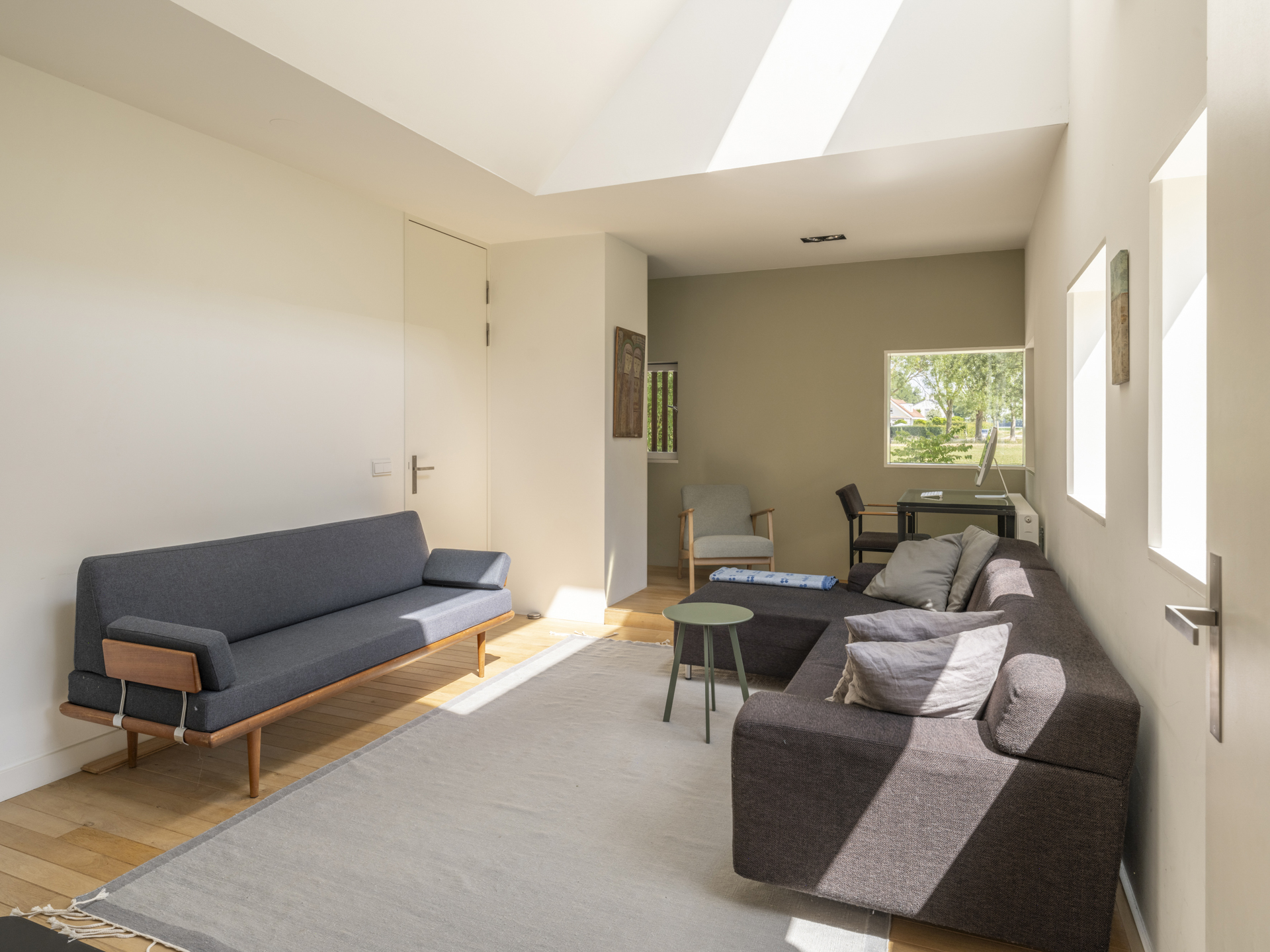 Deze ruimte heeft naast een zelfstandige entree ook een deur die rechtstreeks op de sfeervolle binnentuin uitkomt. Ook in deze kamer is een prachtige daglichttoetreding verwezenlijkt. De ruimte is voorzien van airconditioning.