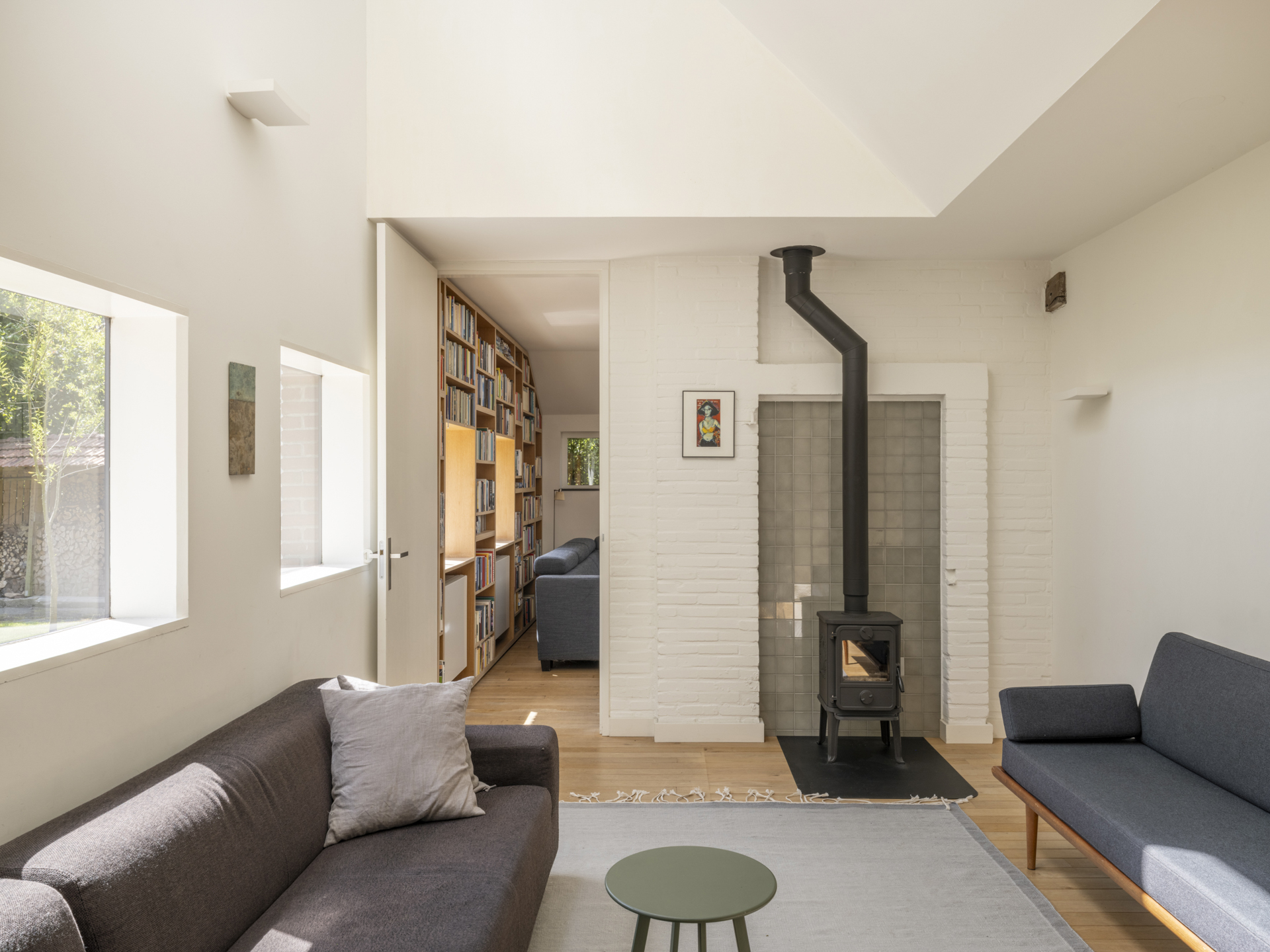 Een hoge deur verbindt de woonkamer met de (tweede) zitkamer.