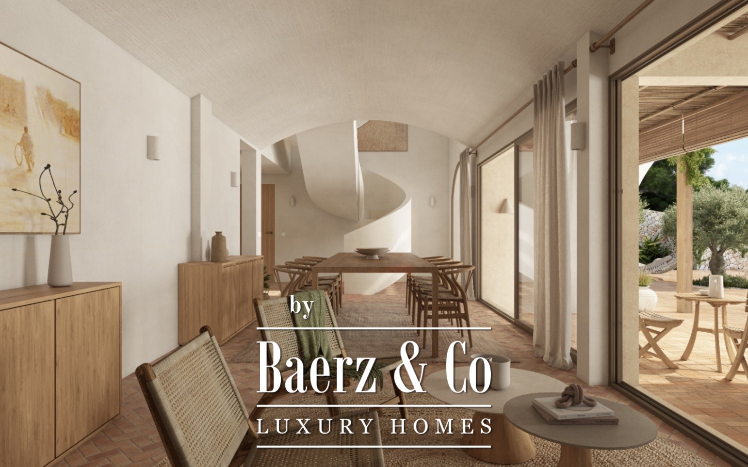 Binnen vloeien de voorheen afgescheiden ruimtes nu vloeiend in elkaar over, visueel verbonden met de buitenruimte en met warme texturen en neutrale tinten die de serene mediterrane sfeer oproepen. Het huis is herboren als een toevluchtsoord waar de essentie van het mediterrane leven tot bloei komt, versterkt door geavanceerde technologie, modern comfort en een doordacht ontwerp.