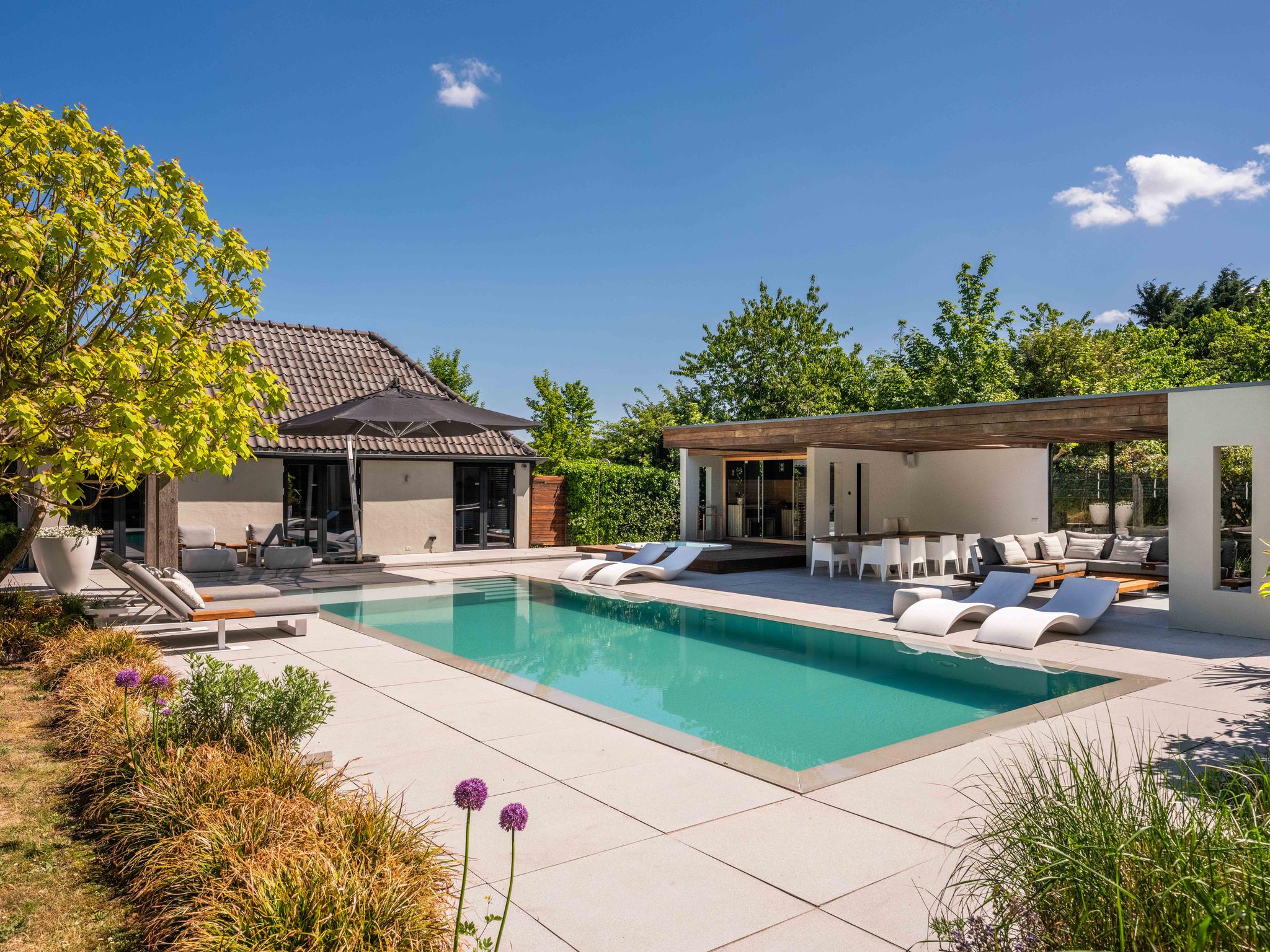 Vanuit de woonkamer heeft u toegang tot de serre, deze is uitgerust met een open haard, een pantry en een grote loungehoek. Vanuit de serre heeft u prachtig uitzicht over de ruim aangelegde tuin.
