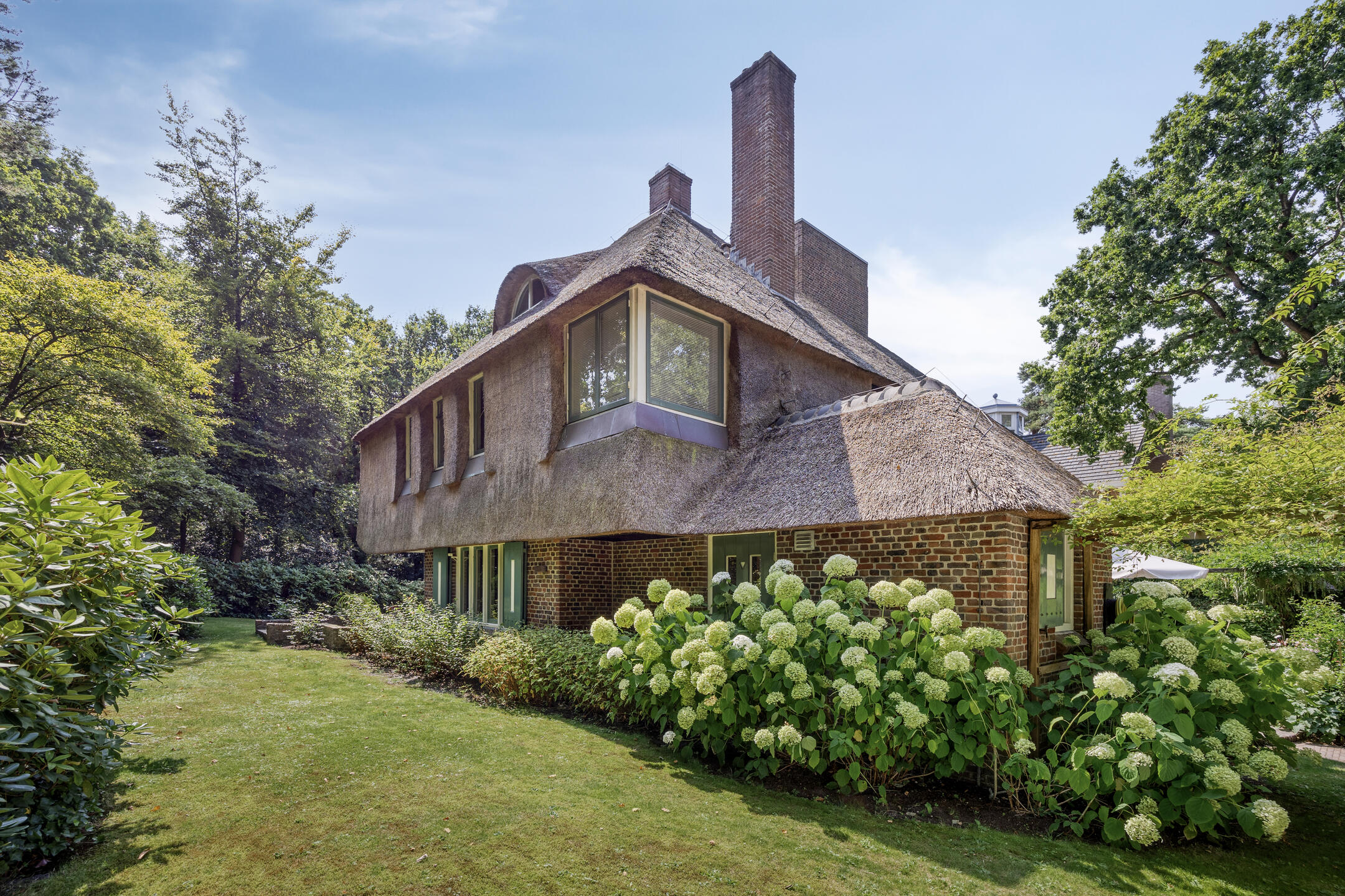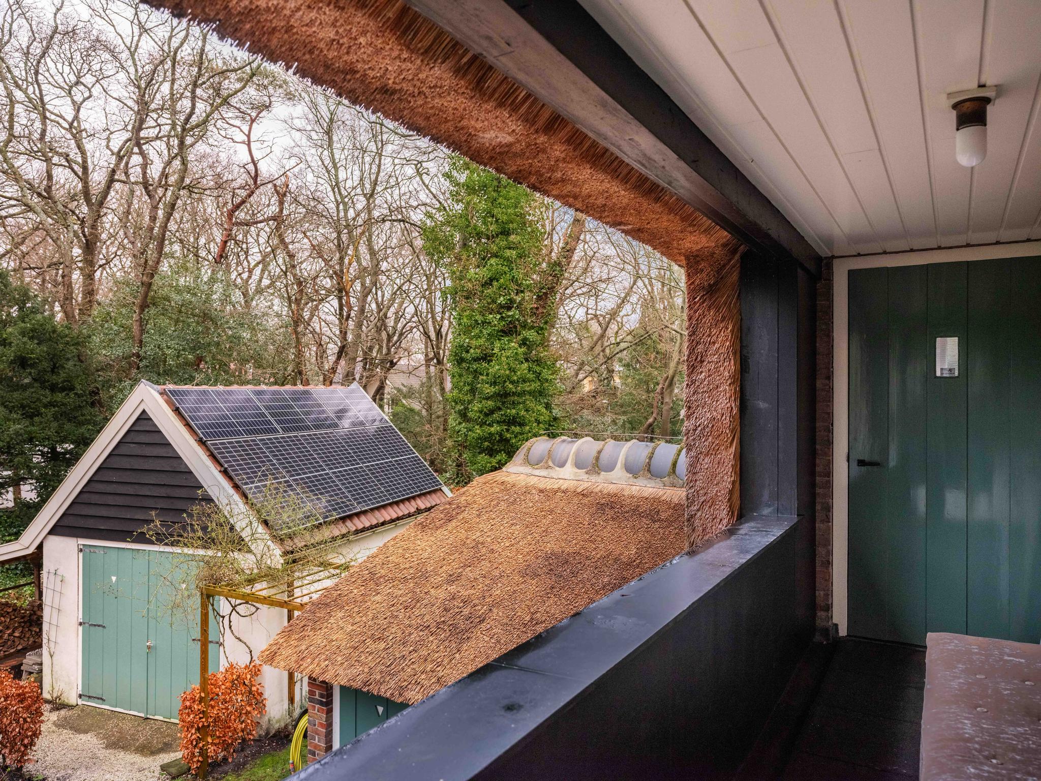 U bereikt de villa via een royale oprit met ruimte voor meerdere auto’s. Aan de voorzijde valt de imposante rieten kap direct op. Vanuit de entree komt u in de hal, die toegang geeft tot zowel de woonkamer als de woonkeuken. De keuken is voorzien van Bosch combimagnetron, AEG-inductiekookplaat, vaatwasser, koel-vriescombinatie, recirculatiekap en heeft vloerverwarming. De keuken heeft openslaande deuren naar een groot terras en de achtertuin. Aangrenzend aan de keuken ligt de bijkeuken met vloerverwarming, wasmachine- en drogeraansluiting en een douche met toilet en fontein.