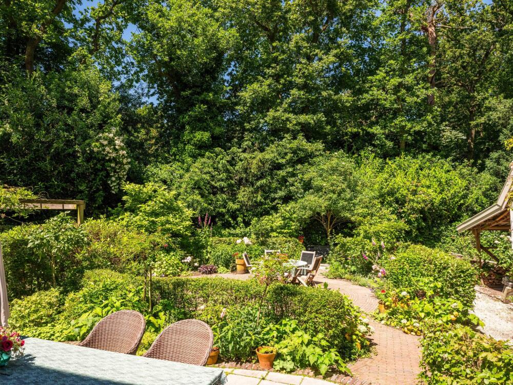 De tuin van de villa is een prachtig groen geheel. Op het ruime perceel van 1.310 m² vindt u prachtige borders, volwassen bomen en meerdere zonnige én beschutte terrassen waar u op elk moment van de dag een fijn plekje vindt. De royale oprit biedt plek voor meerdere auto’s en voor de elektrische rijder is er een laadpaal met eigen tussenmeter, handig voor privé én zakelijk gebruik. Een bronpomp zorgt ervoor dat u de tuin eenvoudig met grondwater kunt besproeien. Daarnaast beschikt de woning over een ruime garage/schuur met 8 zonnepanelen op het dak!