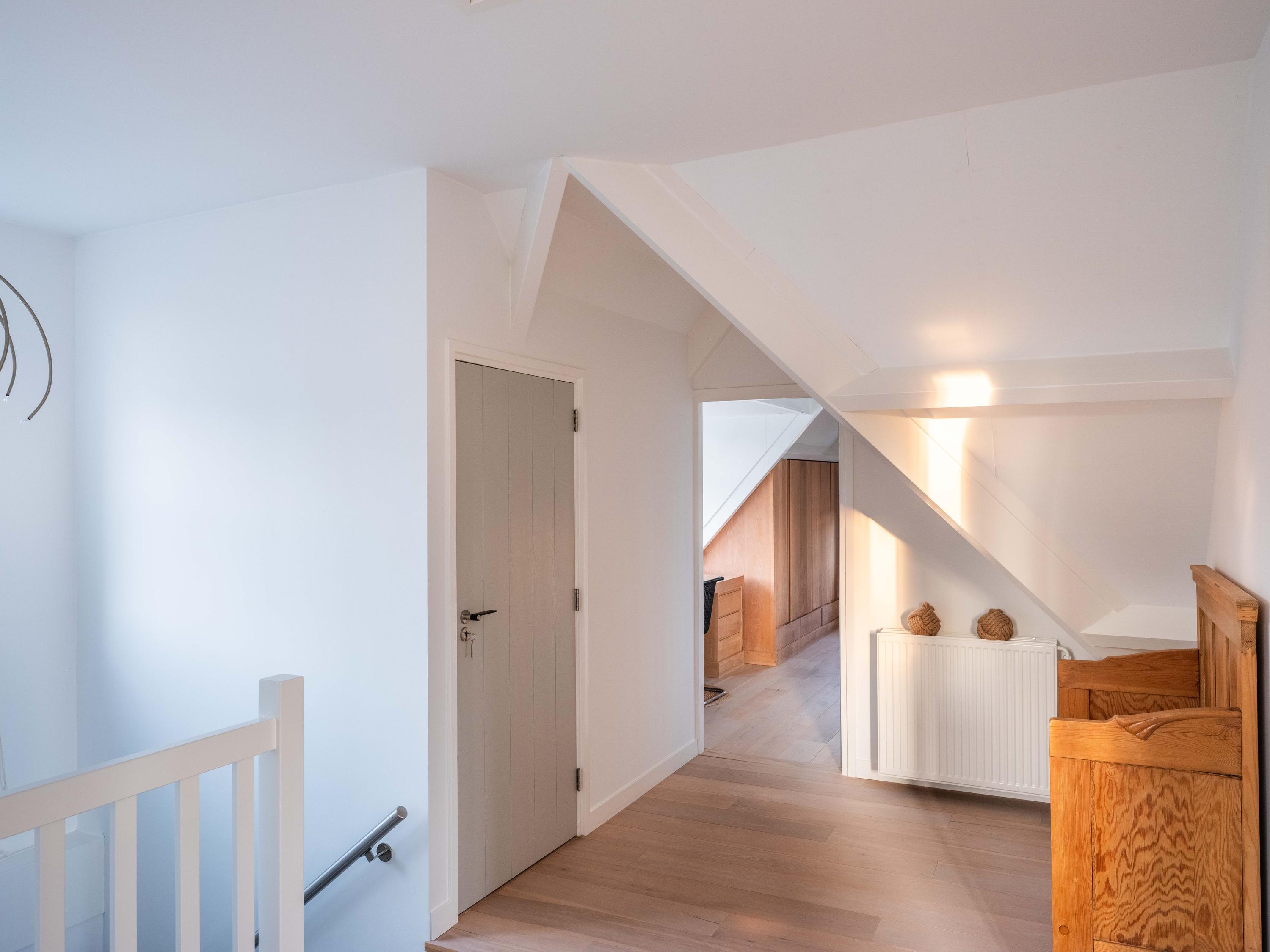 De eerste verdieping biedt door de dakkapellen drie goed bemeten slaapkamers, elk met een eigen sfeer en voorzien van maatwerkkasten. De luxe badkamer is stijlvol afgewerkt met natuurlijke materialen, en ook hier is gekozen voor kwaliteit en rust. In het hele huis is duidelijk zichtbaar dat er met zorg en smaak is gewerkt aan een harmonieus geheel.