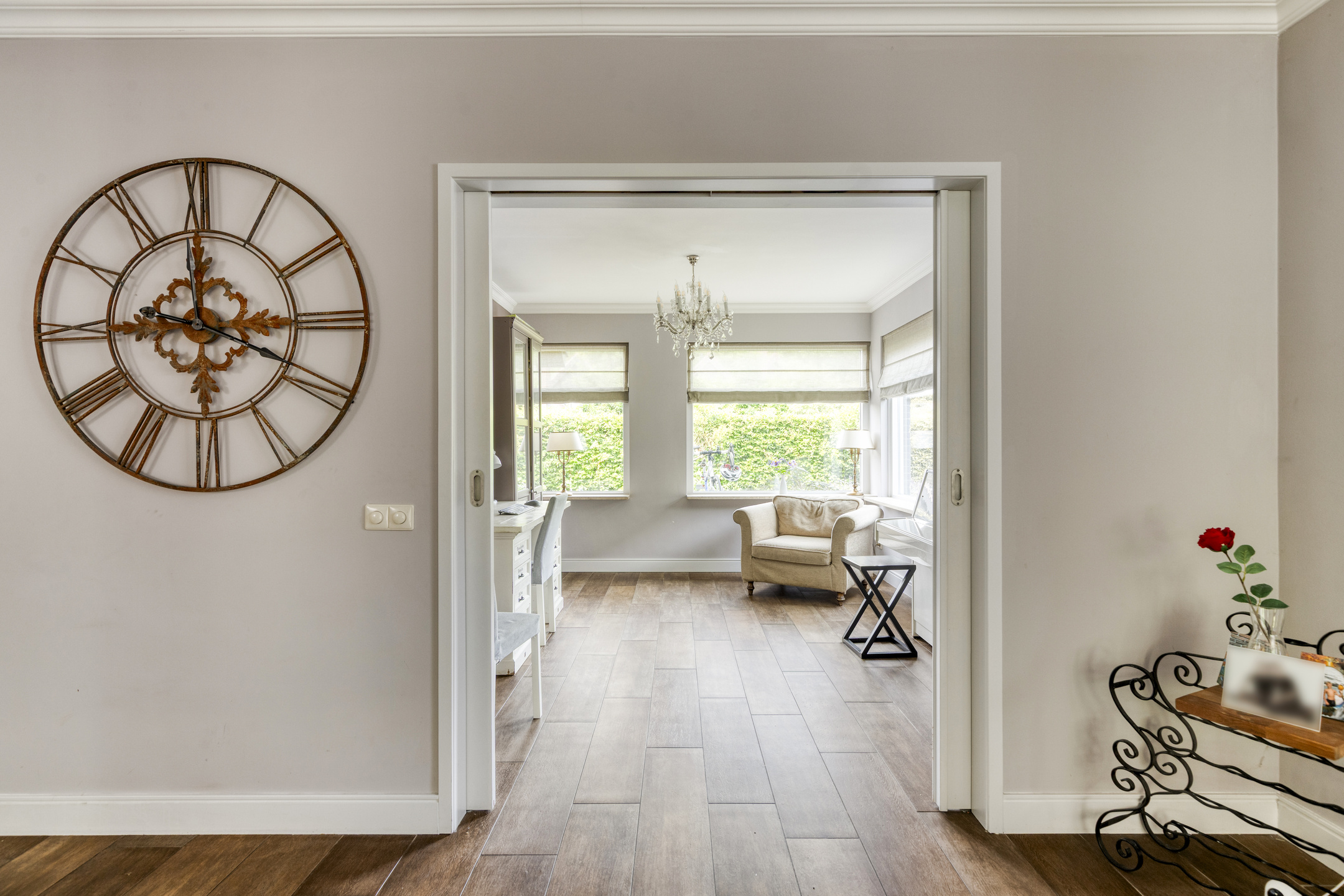 Aan de voorzijde, grenzend aan de woonkamer, zijn er prachtige en-suite deuren naar de werk-/ tv kamer.