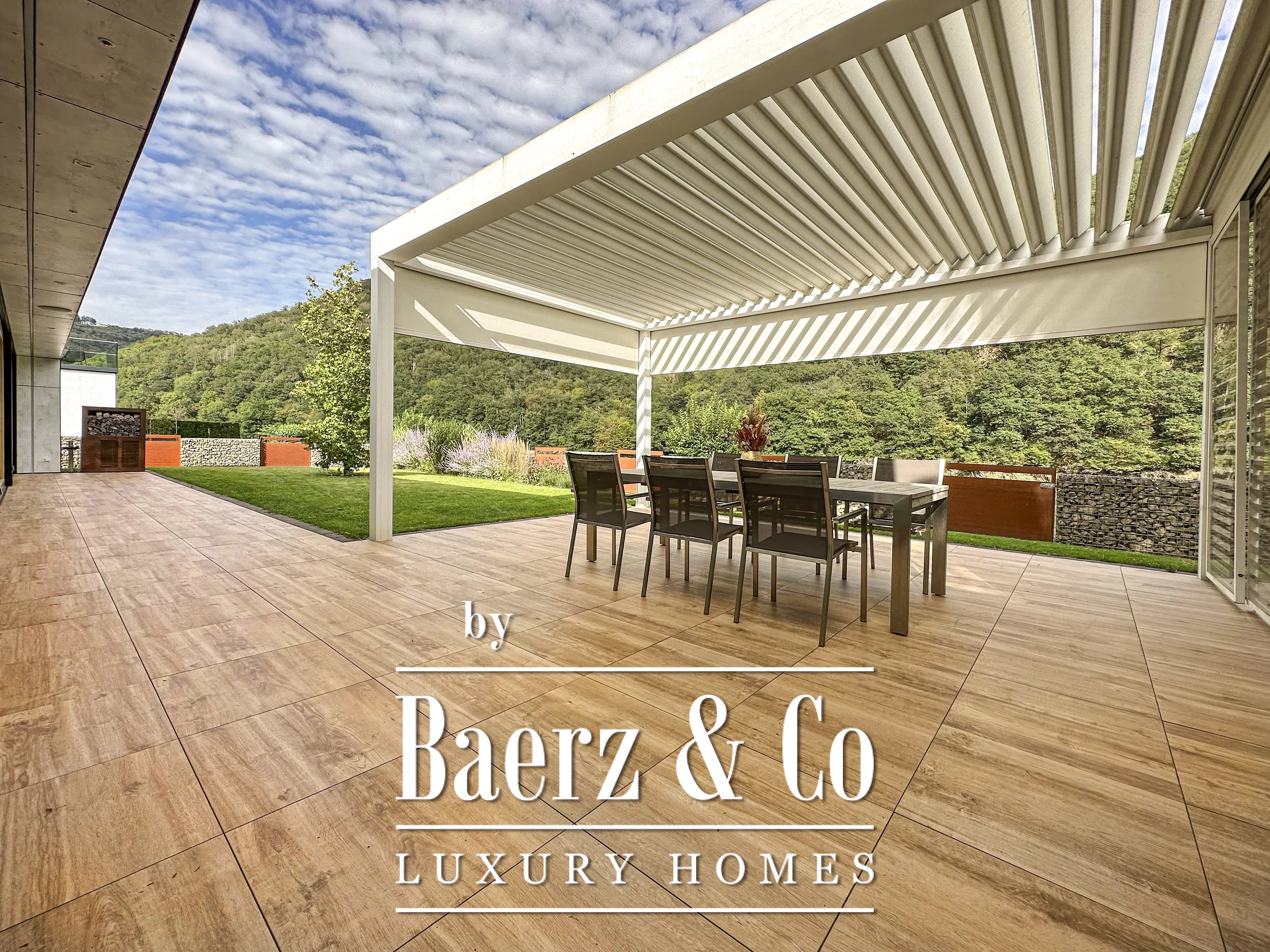 Buiten wacht je een ruime tuin met goed verlichte zones en toegang voor mindervaliden. Extra voorzieningen zijn onder andere een oplaadpunt voor elektrische auto's, dual-flow ventilatie en glasvezel voor snelle internettoegang. Ervaar luxe in deze rustige hoek van Luxemburg.