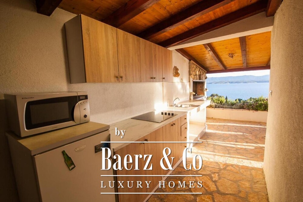 Een ruim terras verlengt de leefruimte naar buiten en is ideaal voor lange maaltijden in de open lucht, met een ingebouwde open haard en een tuin die uitnodigt tot ontspanning. Parkeren voor twee auto's garandeert gemak, terwijl het strand op slechts 400 meter afstand ligt en land en zee samenbrengt binnen handbereik. Dit rustieke huis Bol combineert doordacht design met het tempo van het eiland, volledig gemeubileerd om gezinnen welkom te heten of als een intieme uitvalsbasis voor verfijnde gastvrijheid te dienen. De setting biedt ruimte voor zowel afzondering van de wereld als verstilde betrokkenheid bij de oereigen schoonheid ervan.