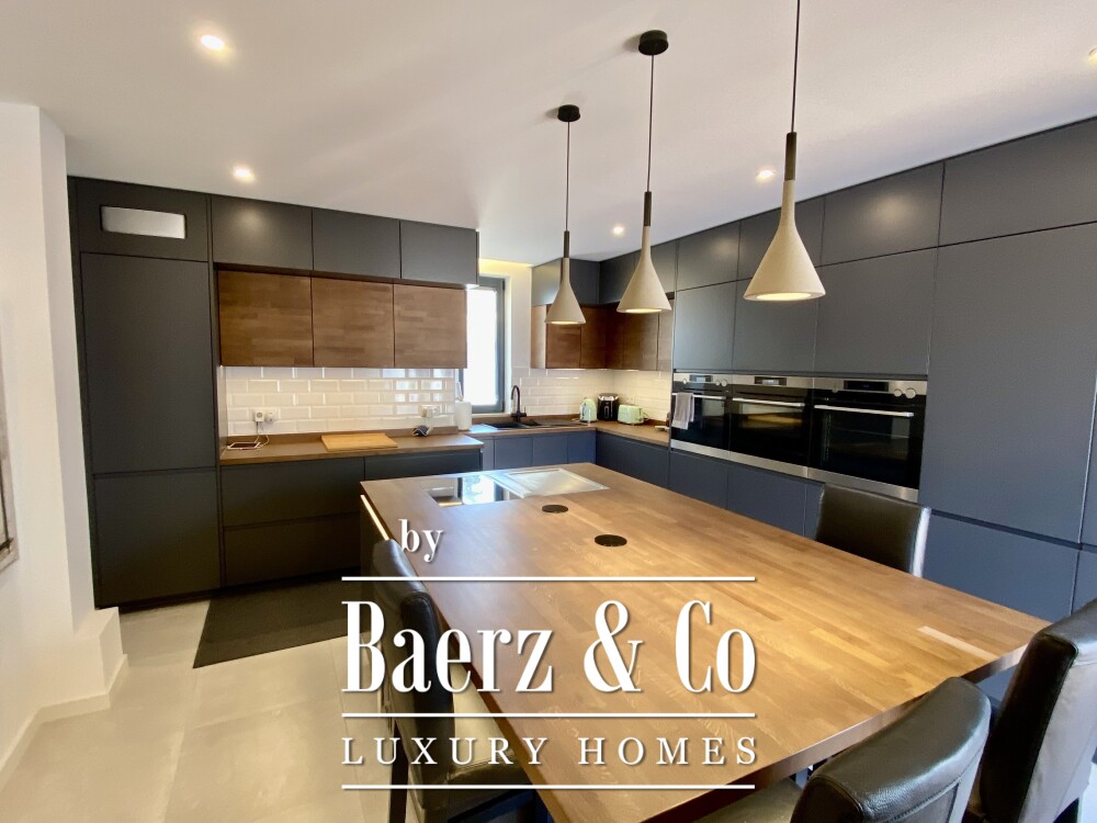 De open woonkamer en luxe keuken lopen moeiteloos over in de overdekte terrassen, met zicht op het royale zwembad en de riante tuin van 650 m². Buiten dineren wordt een dagelijks ritueel, gefaciliteerd door een aparte buitenkeuken die sociale momenten versterkt. Elk detail van de buitenruimte is geselecteerd met het oog op ontspanning en gezelligheid, en de tuin biedt mogelijkheden voor een extra bijgebouw.