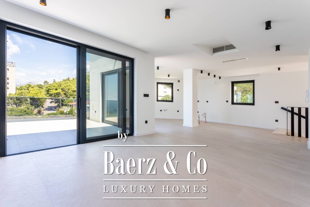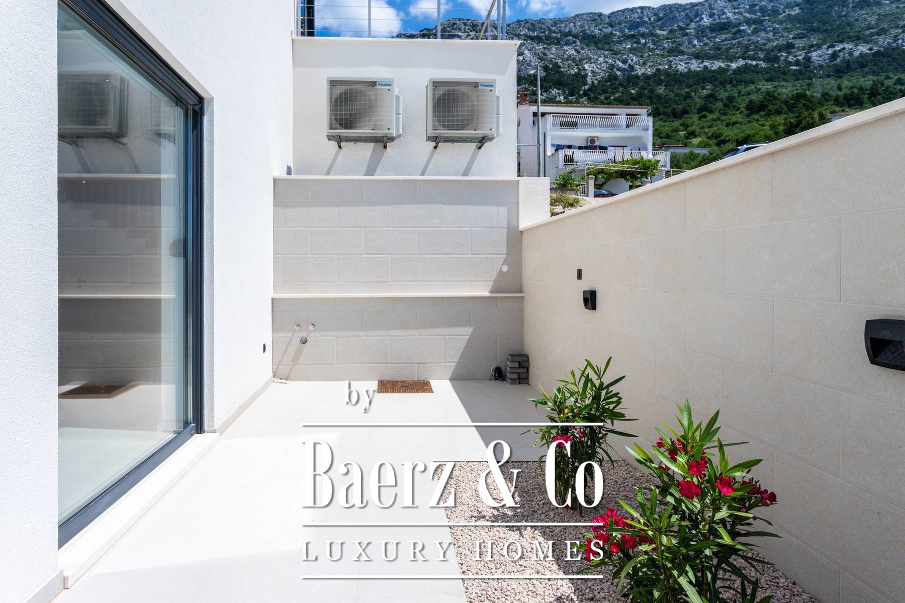 Villa Brela is gelegen op een uitzonderlijke locatie aan de Dalmatische kust en biedt een verhoogd uitzicht over de Adriatische Zee en de omliggende eilanden. Deze recent opgeleverde villa beschikt over 400 m² verfijnde leefruimte op een perceel van 515 m², ontworpen voor optimale privacy en wooncomfort. De drie verdiepingen omvatten twee zelfstandige wooneenheden, beide gericht op de zee om het uitzicht en het natuurlijke licht maximaal te benutten.