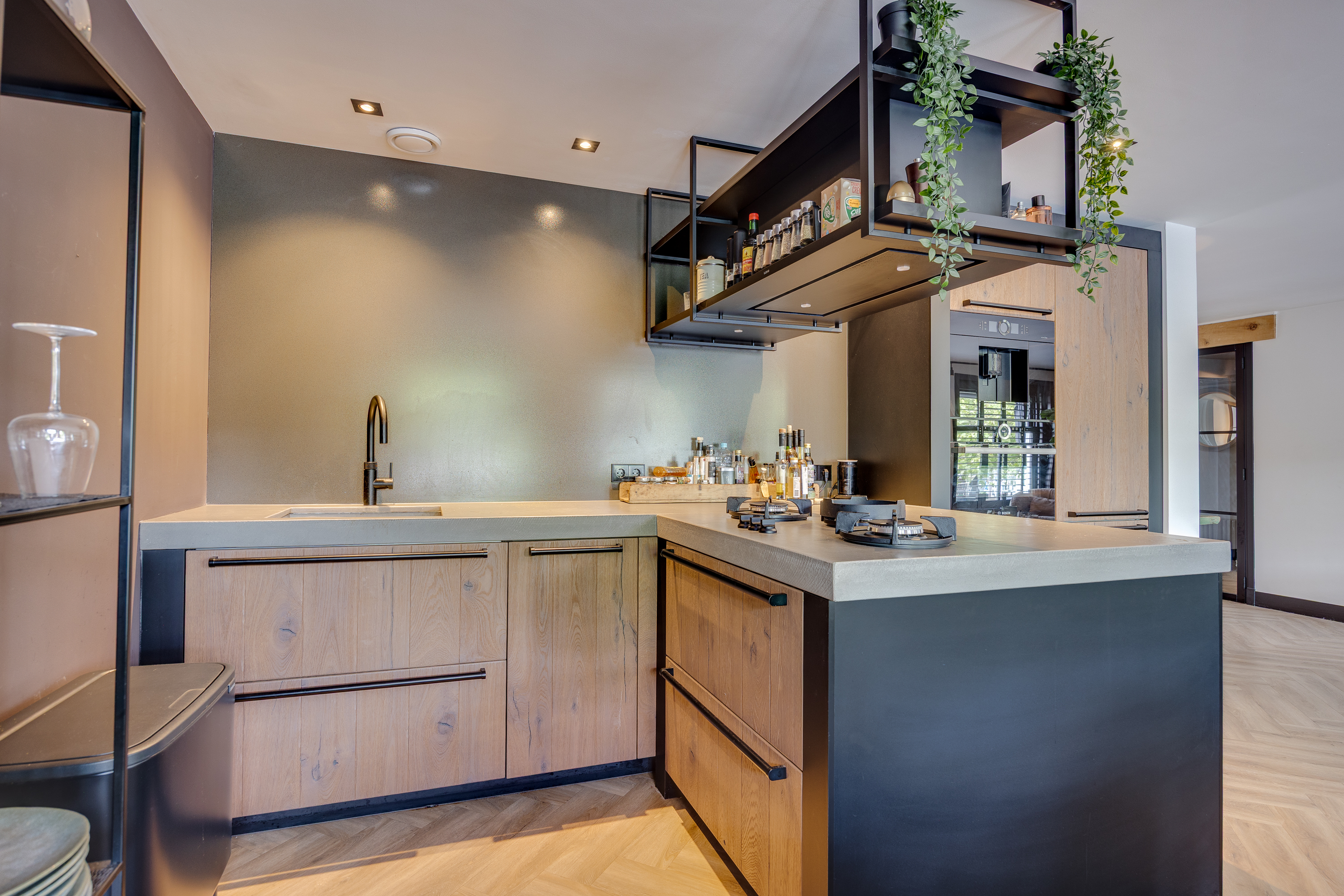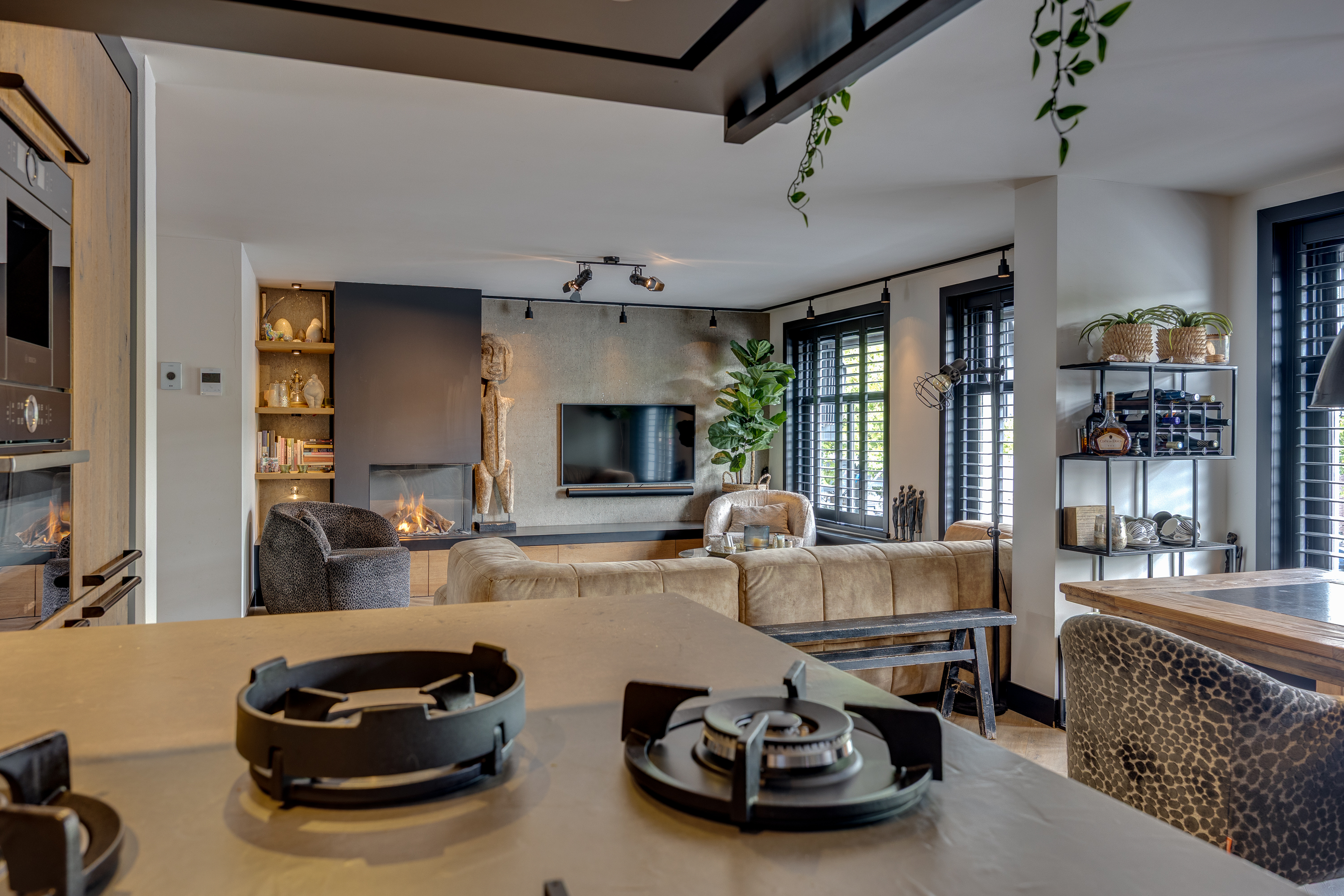 De open woonkeuken (KBK Kerker, 2020) is een droom voor iedere kookliefhebber: uitgevoerd met hoogwaardige inbouwapparatuur, waaronder Pitt Cooking, een combi-oven, combi-magnetron, ingebouwde koffiemachine, Quooker Combi Flex (7 liter), dubbele koelkast en een luxe zelfreinigende plasma-afzuigkap van Wave. Aan de ruime eettafel geniet je hier van lange diners in stijl.