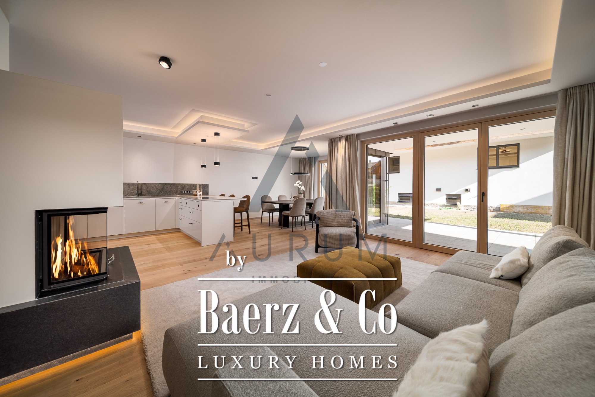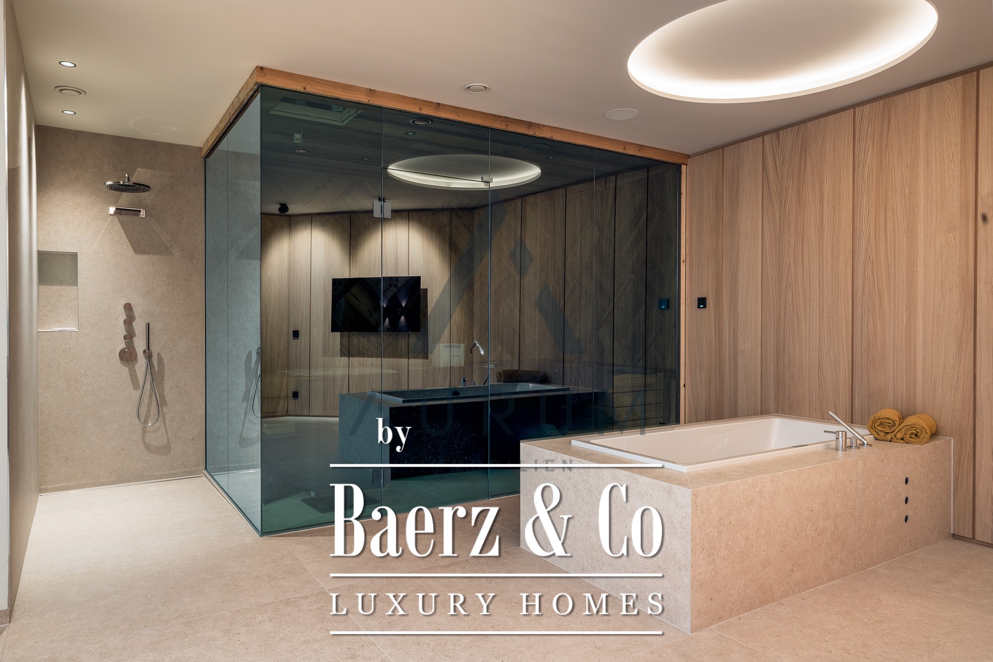Binnen de 123 m² woonoppervlak harmoniëren twee slaapkamers en twee badkamers met royale leefruimtes en een sauna, waardoor een ruimtelijk gevoel ontstaat versterkt door natuurlijke materialen en zorgvuldige indeling. Vloerverwarming biedt het hele jaar door comfort; het Loxone BUS-systeem en elektrische zonwering zorgen voor hedendaagse efficiëntie. Een gastentoilet, stijlvolle lifttoegang en kelderberging dragen bij aan een vloeiende dagelijkse woonervaring.