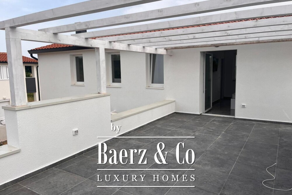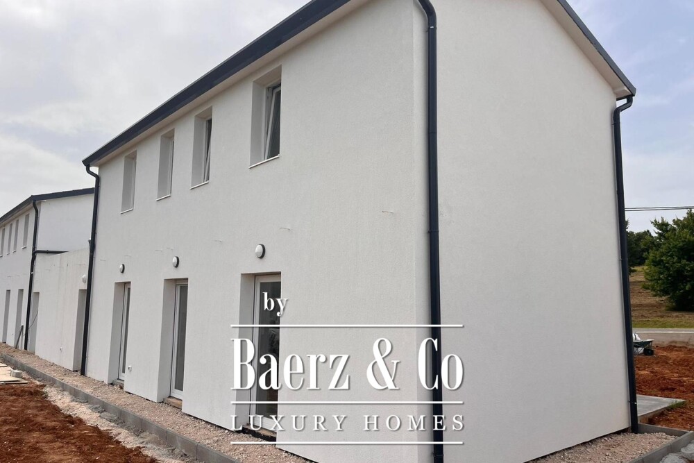 De tuin van 950 m² biedt twee garages en extra parkeergelegenheid, wat gemak en veiligheid waarborgt. Omgeven door groen en dicht bij de grens, biedt deze twee-onder-een-kapwoning te koop in Buje een rustige leefstijl die moderne lijnen moeiteloos combineert met de stille charme van de natuurlijke omgeving.