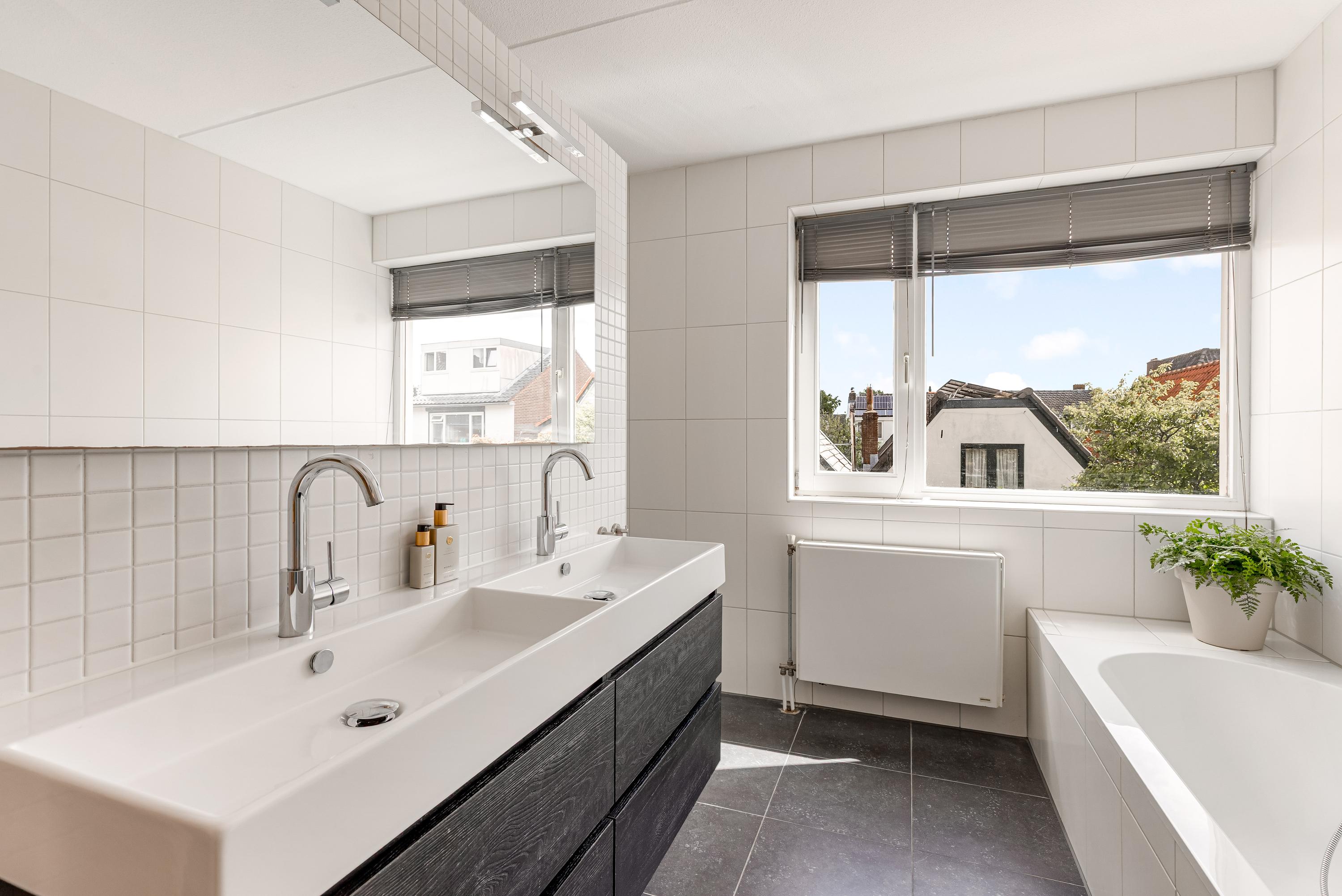 De ruime overloop biedt toegang tot vier goed bemeten slaapkamers en een luxe badkamer. Twee slaapkamers bevinden zich aan de voorzijde, terwijl de derde slaapkamer en de badkamer aan de achterzijde liggen. De stijlvolle badkamer is voorzien van een dubbele wastafel met meubel, ligbad, inloopdouche en een tweede toilet. De vierde slaapkamer is thans in gebruik als inloopkast maar kan indien gewenst worden ingericht als extra slaapkamer of werkruimte.