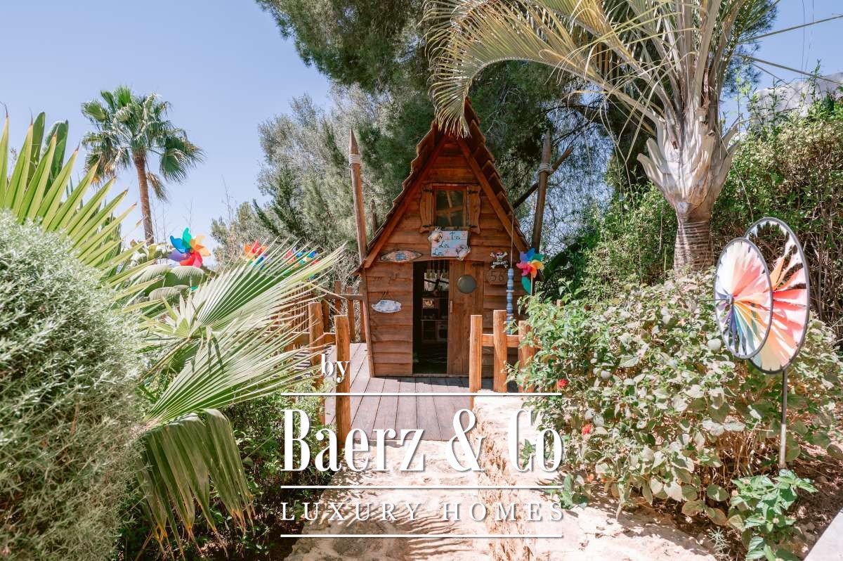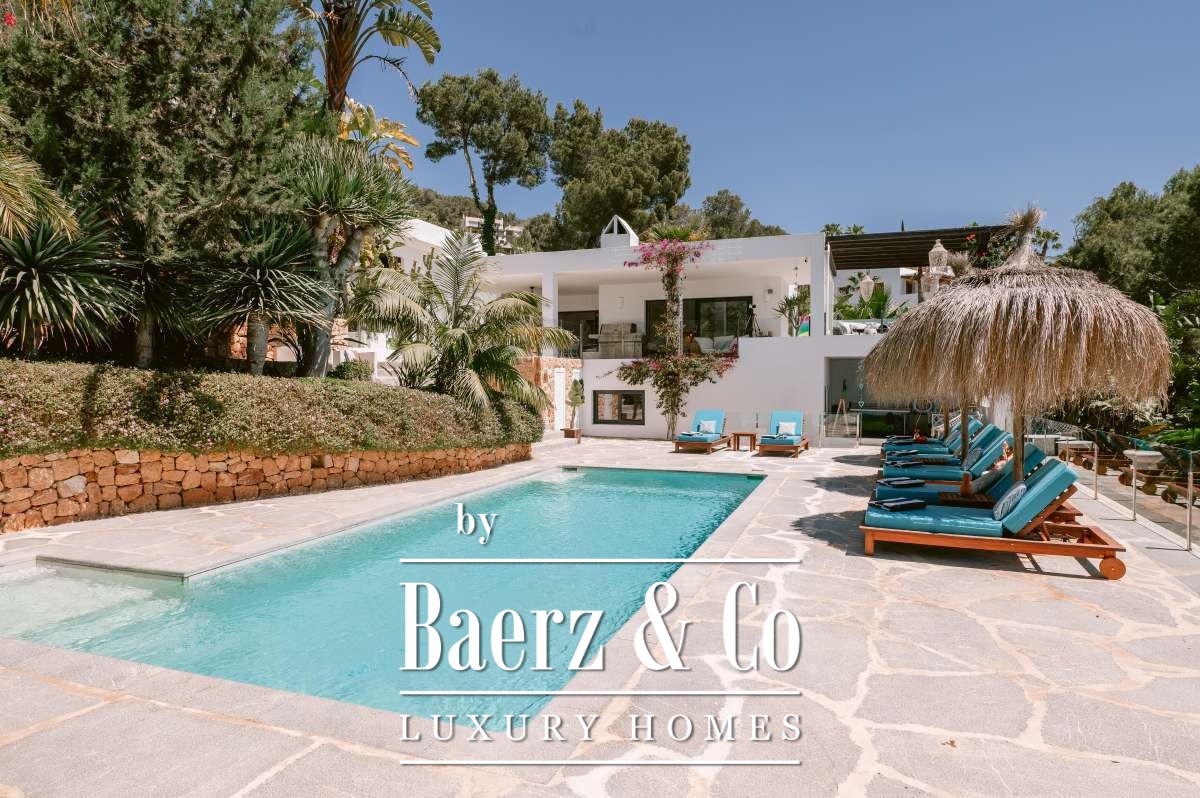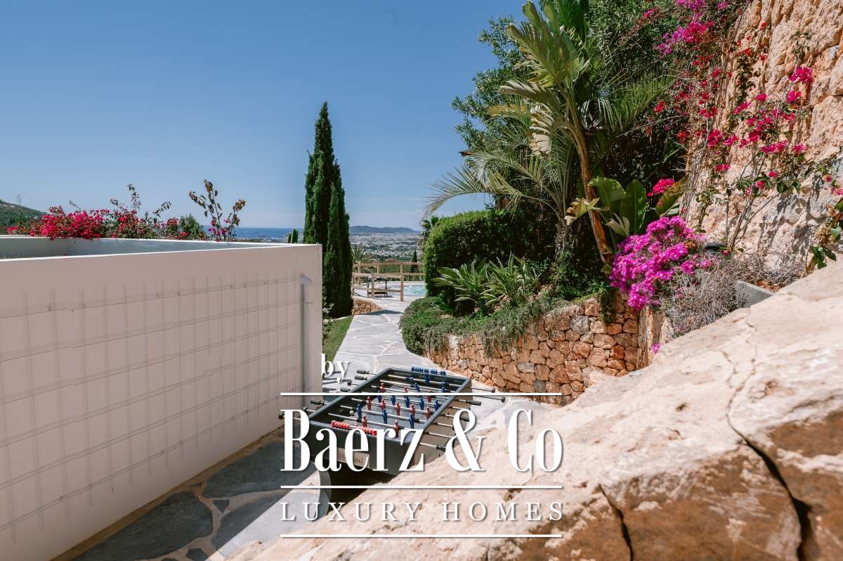 wasruimte.Met zijn uitzonderlijke afwerking en moderne architectuur is deze villa niet alleen een perfecte vakantiewoning, maar ook een fantastische investeringsmogelijkheid op Ibiza.Leven in de buitenlucht: Zwembad, jacuzzi en ongekend uitzichtDe buitenkant van deze villa is minstens net zo spectaculair als het interieur. Wat dit perceel echt uniek maakt, is de royale grootte en de doordachte inrichting van de tuin, die zorgt voor maximale privacy. De grote infinity pool biedt een panoramisch uitzicht over de groene heuvels en de zee, terwijl de ruime lounge terrassen uitnodigen tot ontspanning in de zon. Begin uw dag met een koffie op uw terras, breng de middag door bij het zwembad en sluit de avond af met een diner in de buitenkeuken met barbecue, onder de sterrenhemel.De jacuzzi voegt een extra laag ontspanning toe, terwijl de Bali-stijl pergola met massagebedden een unieke wellness-ervaring biedt met uitzicht over het eiland. Dit is écht een ideale woning voor zowel families als investeerders die op zoek zijn naar een luxe woning op Ibiza.Bent u op zoek naar een droomvilla met privacy, luxe en een toplocatie? Dan is dit uw kans. Deze exclusieve villa in Can Furnet biedt alles wat u zoekt in een high-end woning op Ibiza. Neem vandaag nog contact met ons op voor een bezichtiging en ervaar deze unieke kans zelf!Extra mogelijkhedenOmdat het een groot bebouwbaar stuk grond binnen een urbanisatie betreft is er zelfs de optie om de bestaande villa volledig af te breken en op deze locatie iets geheel nieuws en eigentijds te ontwikkelen. Of je nu droomt van het bouwen van je eigen huis, een volledige renovatie overweegt of met gerichte aanpassingen de indeling wilt veranderen, de mogelijkheden zijn er. Bij Ibiza Estates denken we uiteraard graag met je mee!