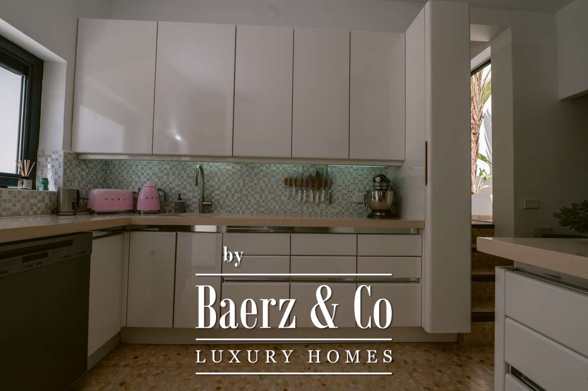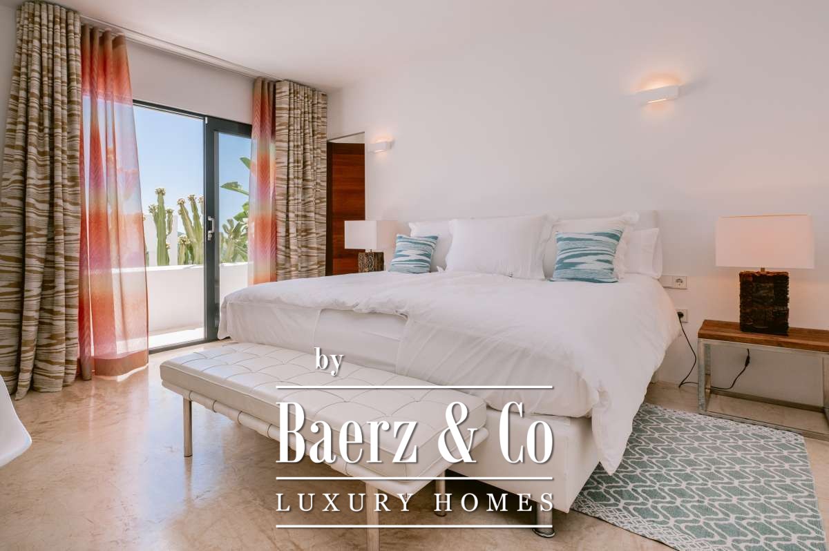 Een droomlocatie: rust en privacy dichtbij Ibiza-StadDeze prachtige moderne villa in Can Furnet biedt de perfecte balans tussen rust, privacy en de nabijheid van Ibiza-Stad. Gelegen in een van de meest exclusieve en beveiligde woonwijken van het eiland, geniet u hier van een oase van luxe en ontspanning, terwijl de bruisende hotspots van Ibiza slechts 10 minuten rijden zijn. De villa ligt op een verhoogde positie en biedt adembenemende uitzichten op de Middellandse Zee, de groene heuvels en de iconische skyline van Dalt Vila.Can Furnet is een veilige en afgesloten gemeenschap, ideaal voor wie op zoek is naar een exclusieve en serene leefomgeving. De ligging is perfect voor liefhebbers van golf, met de enige golfbaan van Ibiza op slechts 5 minuten afstand. Daarnaast bevinden enkele van de mooiste stranden van Ibiza, zoals Talamanca, Cala Olivera en Cala d’Espart, zich binnen 10 minuten rijden. En met de luchthaven op slechts 15 minuten afstand, bent u verzekerd van een zorgeloze aankomst en vertrek.Een villa die stijl, ruimte en comfort uitstraaltMet 6 luxe slaapkamers en 6 en-suite badkamers biedt deze villa maximale privacy en comfort. De open en lichte leefruimtes zijn ontworpen met oog voor stijl en functionaliteit, waarbij grote raampartijen zorgen voor een naadloze verbinding tussen binnen en buiten. De luxe open keuken is volledig uitgerust met moderne apparatuur en biedt volop ruimte voor gezellige diners of grote bijeenkomsten.De master bedroom is een waar hoogtepunt, met een privéterras, een inloopkast en een luxe badkamer met inloopdouche en vrijstaand bad. Elke slaapkamer is ruim en elegant ingericht, waarbij sommige kamers directe toegang hebben tot een terras of balkon. Verder beschikt de villa over een privé gym, een speelruimte en een aparte