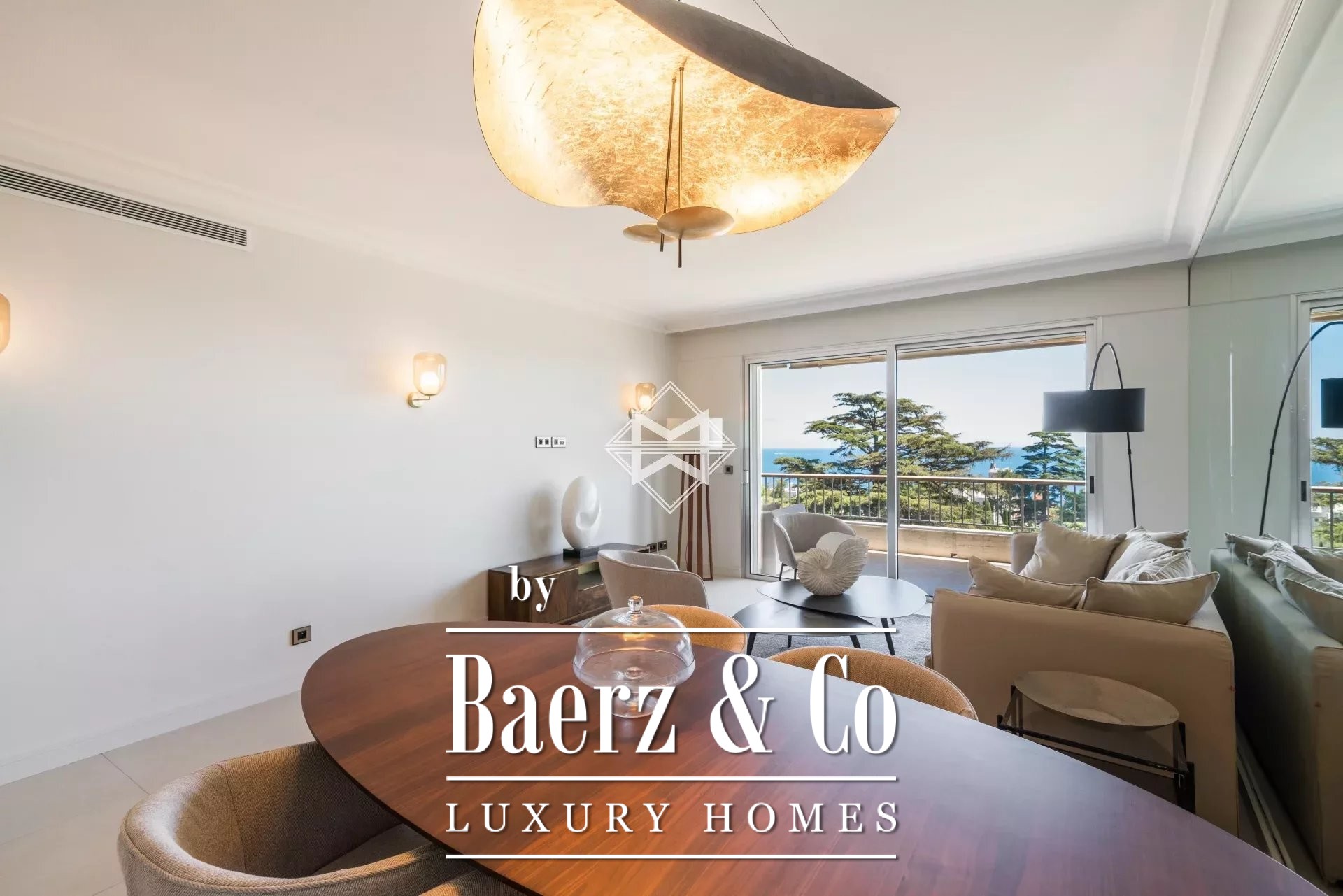 Appartement in Cannes met panoramisch zeezicht in de gewilde wijk La Californie biedt een sereen adres voor wie hecht aan privacy en design. Dit appartement van 104 m², recent gerenoveerd met hoogwaardige materialen, beschikt over een elegante indeling die uitkomt op een terras van 20 m², waar het ruime uitzicht over de Middellandse Zee deel wordt van het dagelijks leven. De centrale leefruimte omvat een open, volledig uitgeruste keuken en een lichte woonkamer die naadloos aansluit op het terras, met het veranderende zeezicht als decor. De mastersuite biedt een rustige plek met uitzicht op zee, royale inbouwkasten en een aangrenzende doucheruimte. Twee extra slaapkamers op het noorden en een aparte doucheruimte zorgen voor balans en comfort voor familie of gasten.