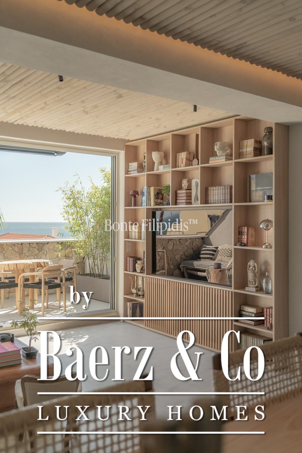Met een woonoppervlakte van 88 m² sluiten de open woonkamer, eetruimte en keuken naadloos op elkaar aan, voorzien van hoogwaardige afwerking en volledig geïntegreerde apparatuur. De woonkamer leidt naar een terras van 19 m² met bar en een buitendouche om verkoeling te zoeken onder de lucht, met een sereen uitzicht op de baai. In het privégedeelte waarborgt de en-suite slaapkamer privacy, terwijl de tweede slaapkamer met zeezicht een eigen balkon en een aparte, complete badkamer biedt.